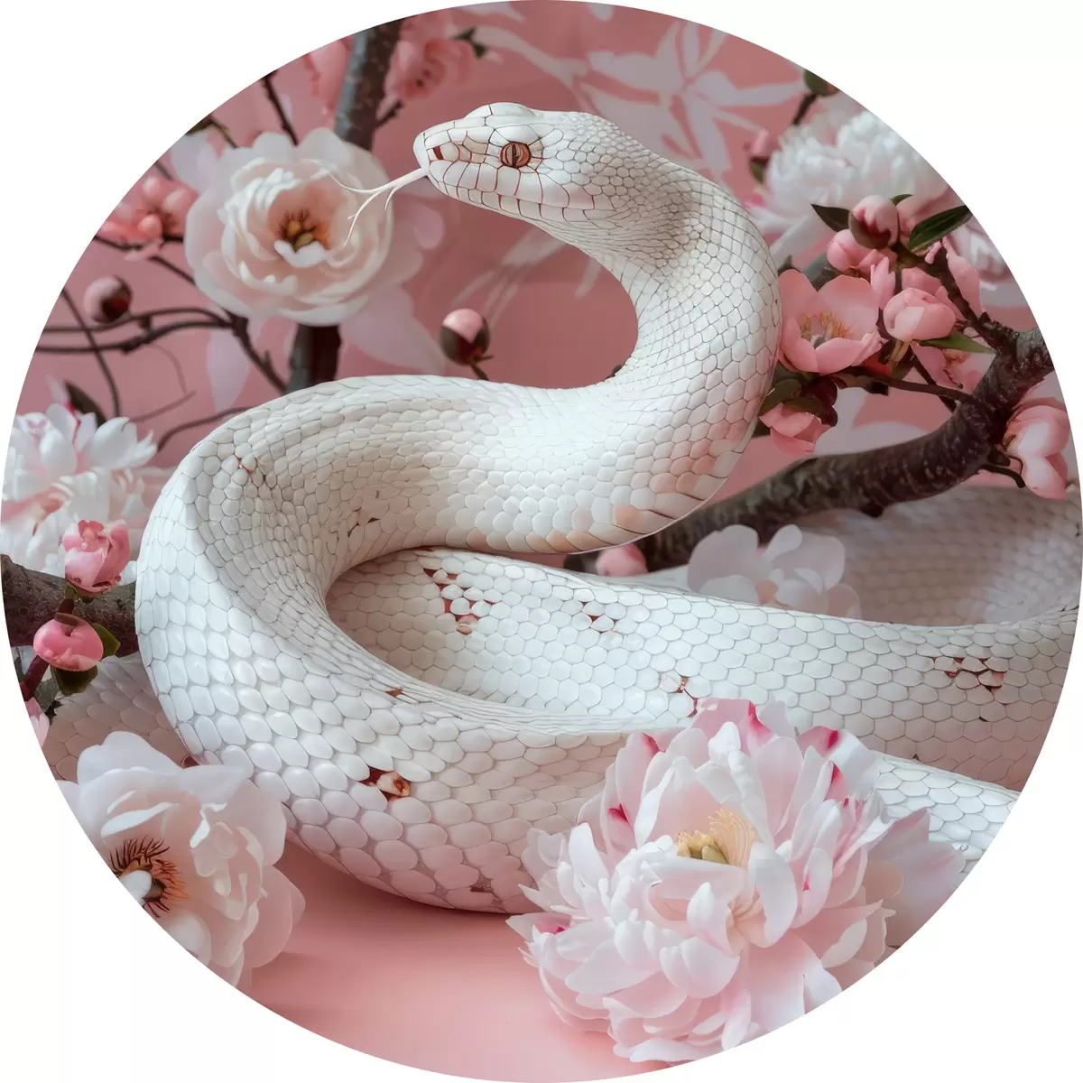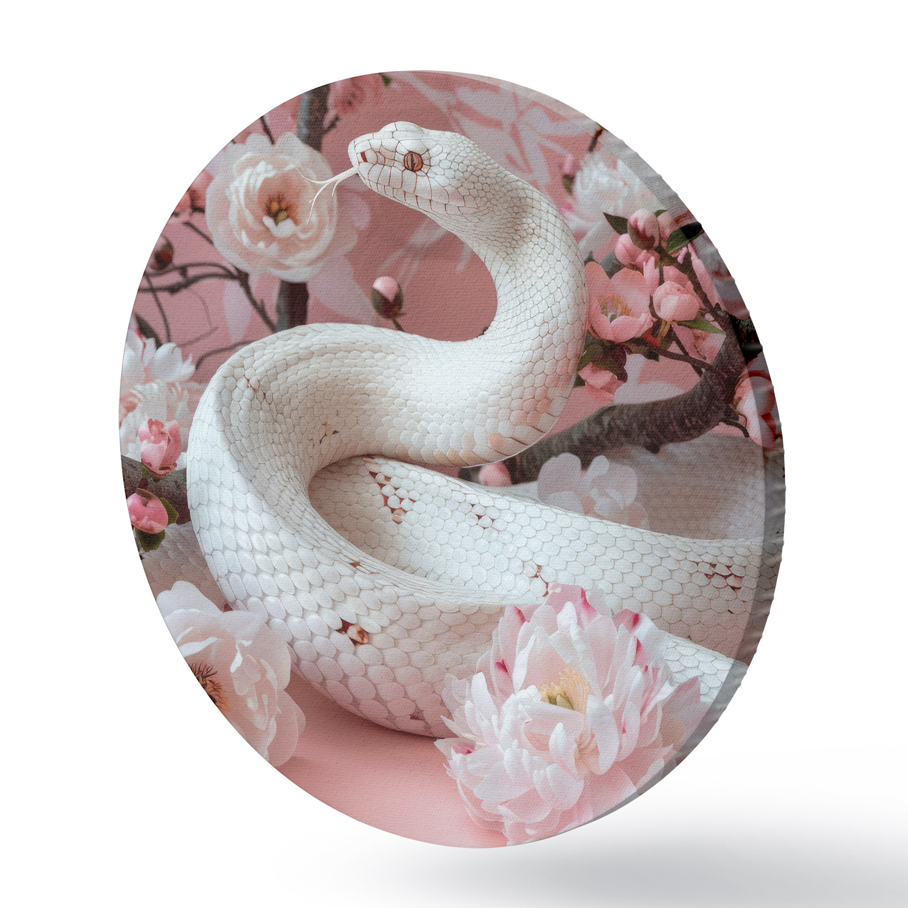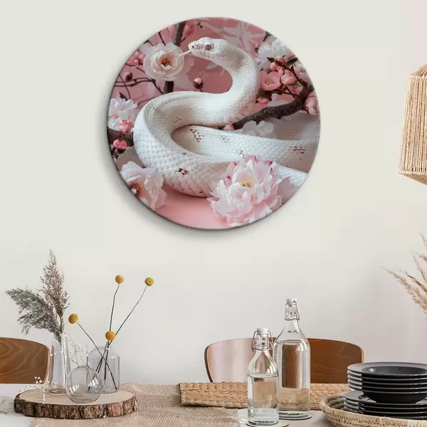 Apaļas gleznas Balta čūska un rozā ziedi r39941