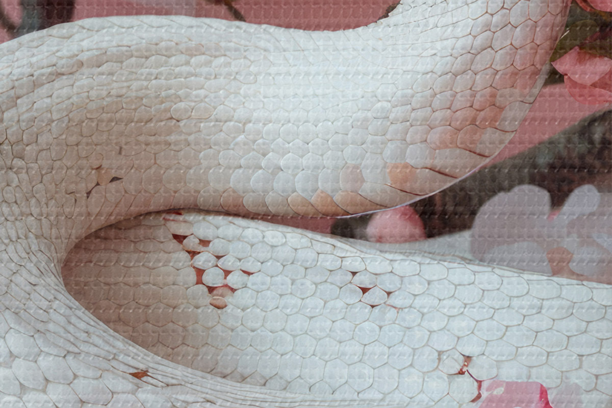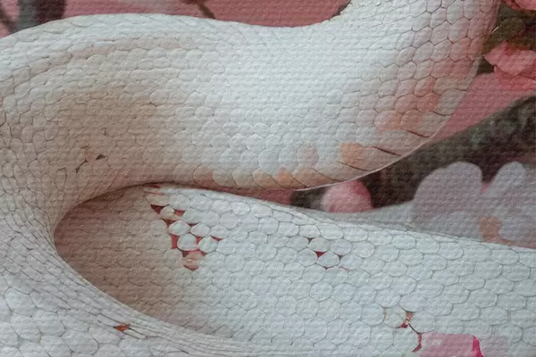 Attēls Balta čūska un rozā ziedi Nr r39941