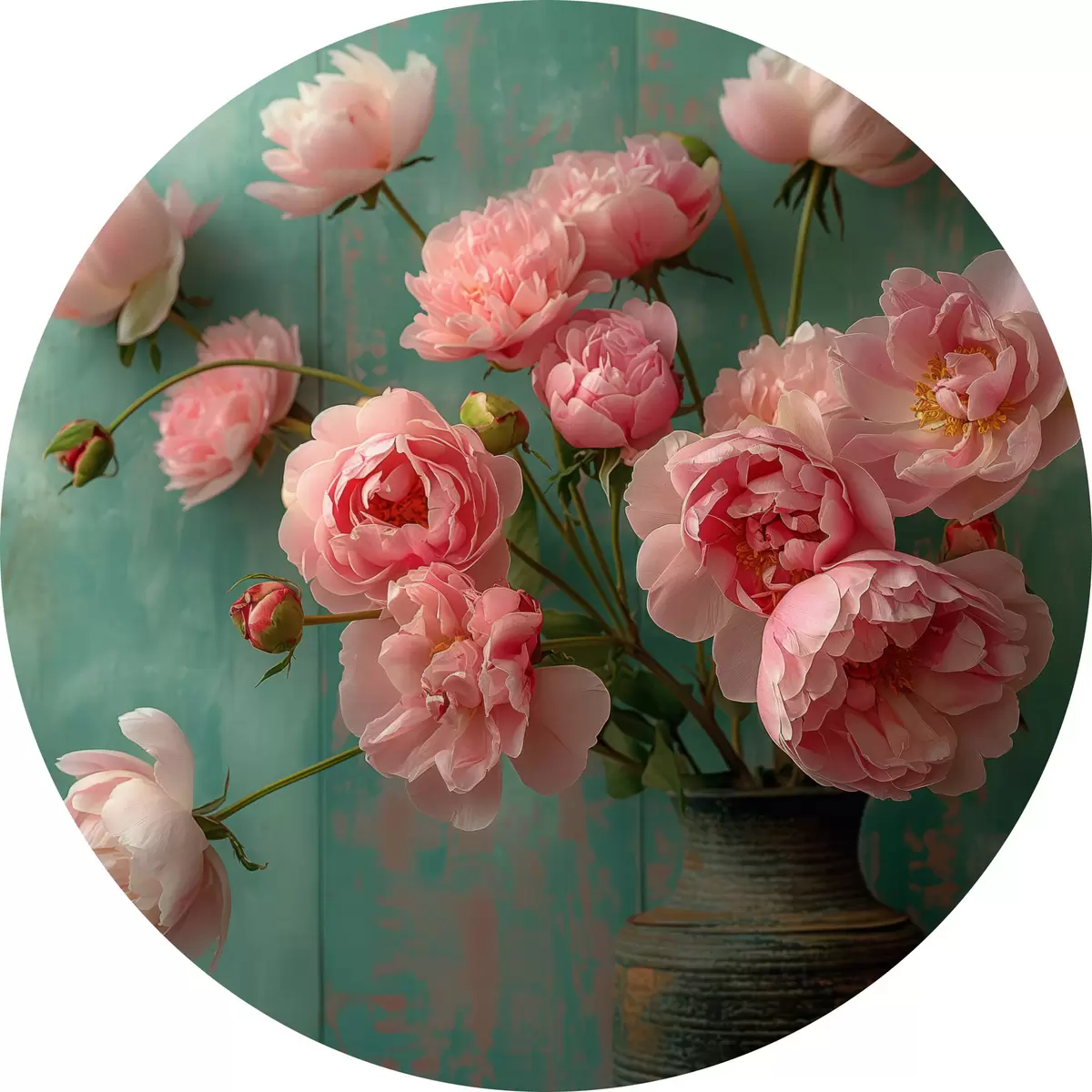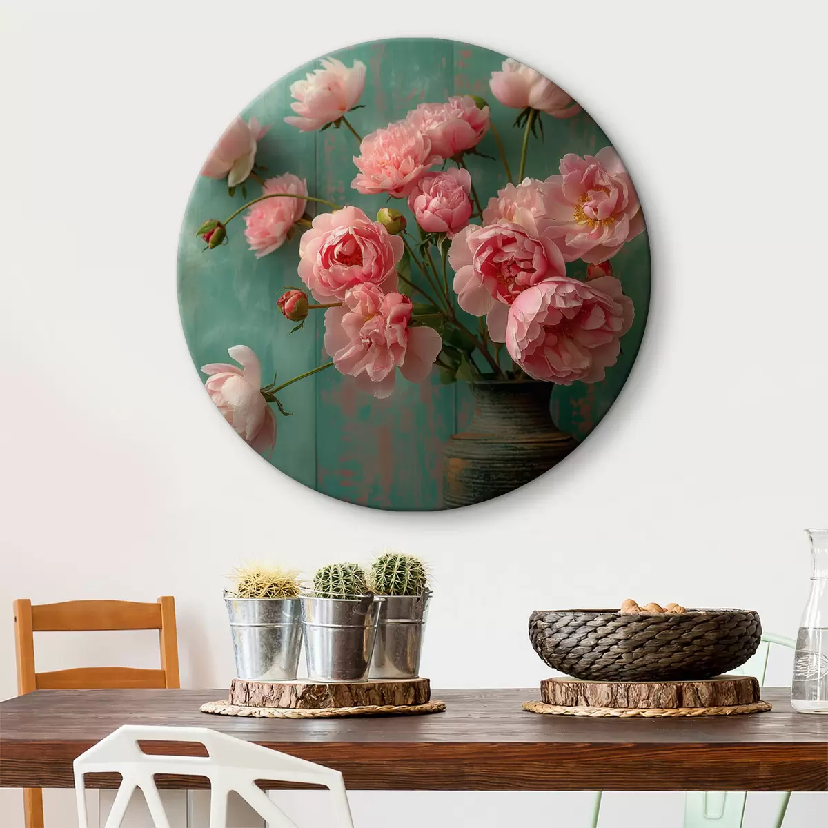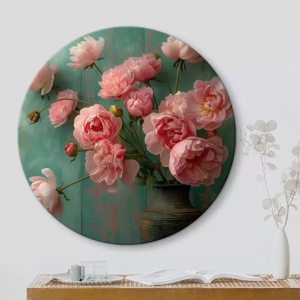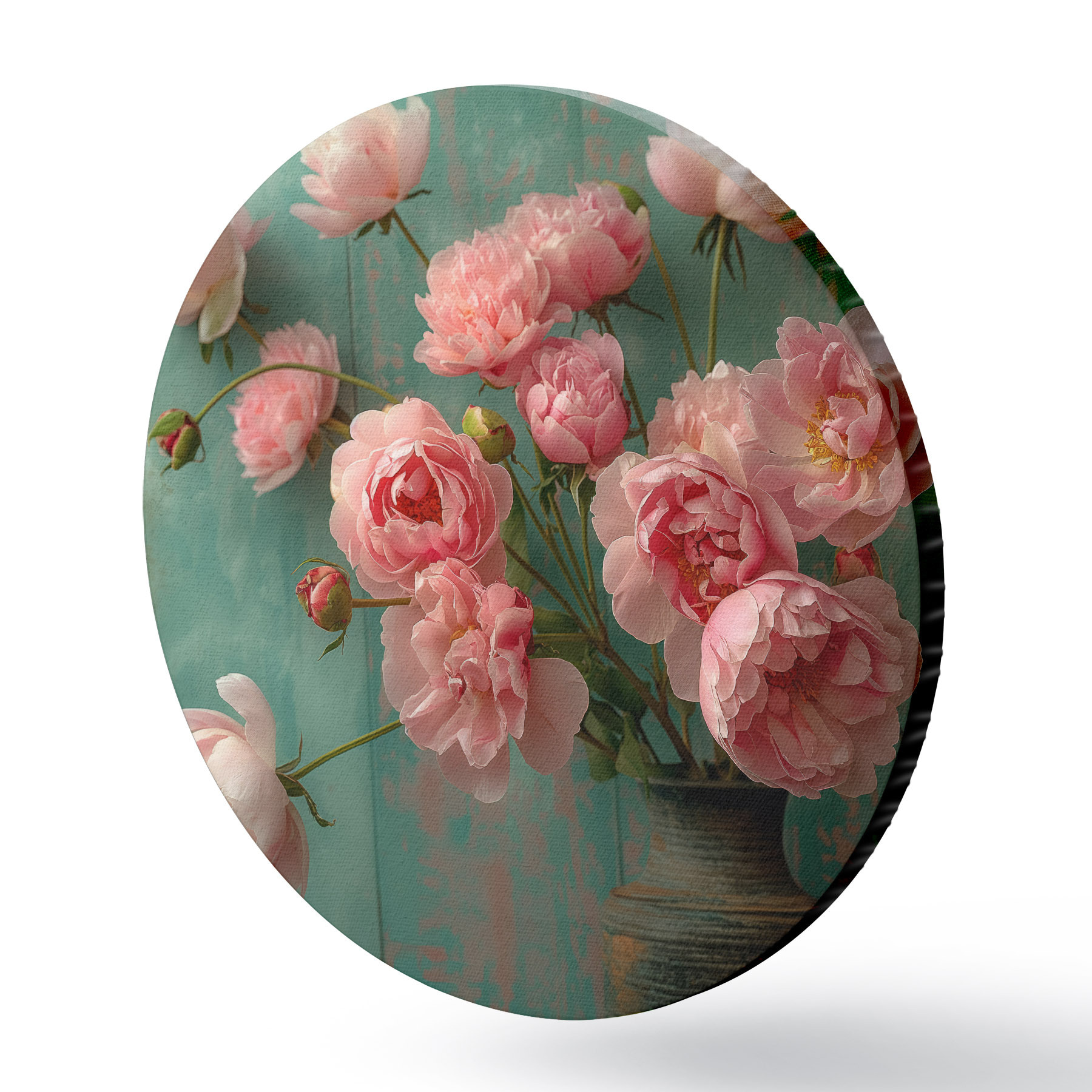 Apaļas gleznas Rozā ziedi, koks, antīks r39957