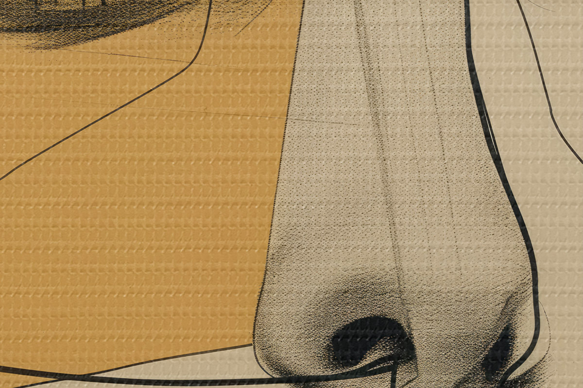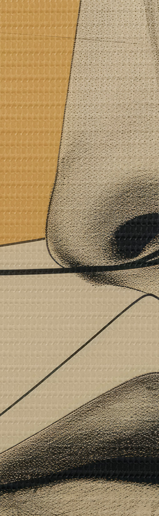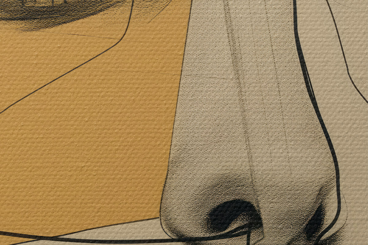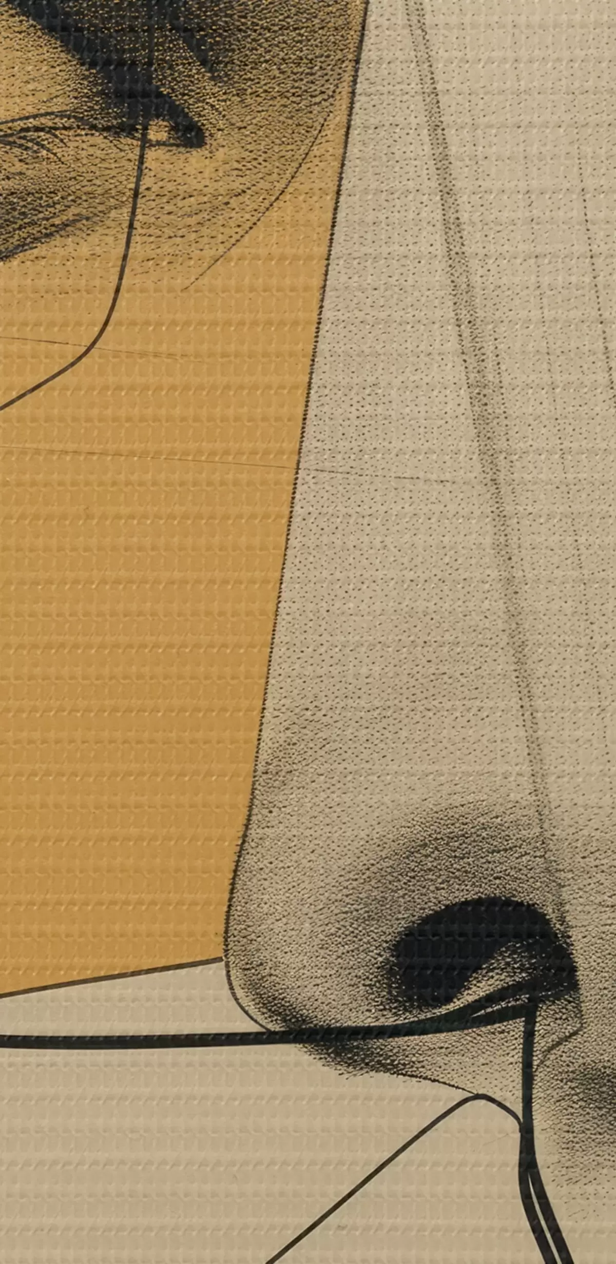 Smalkais diegu pinums uz šī audekla atgādina profesionālu mākslinieku audeklu virsmu.