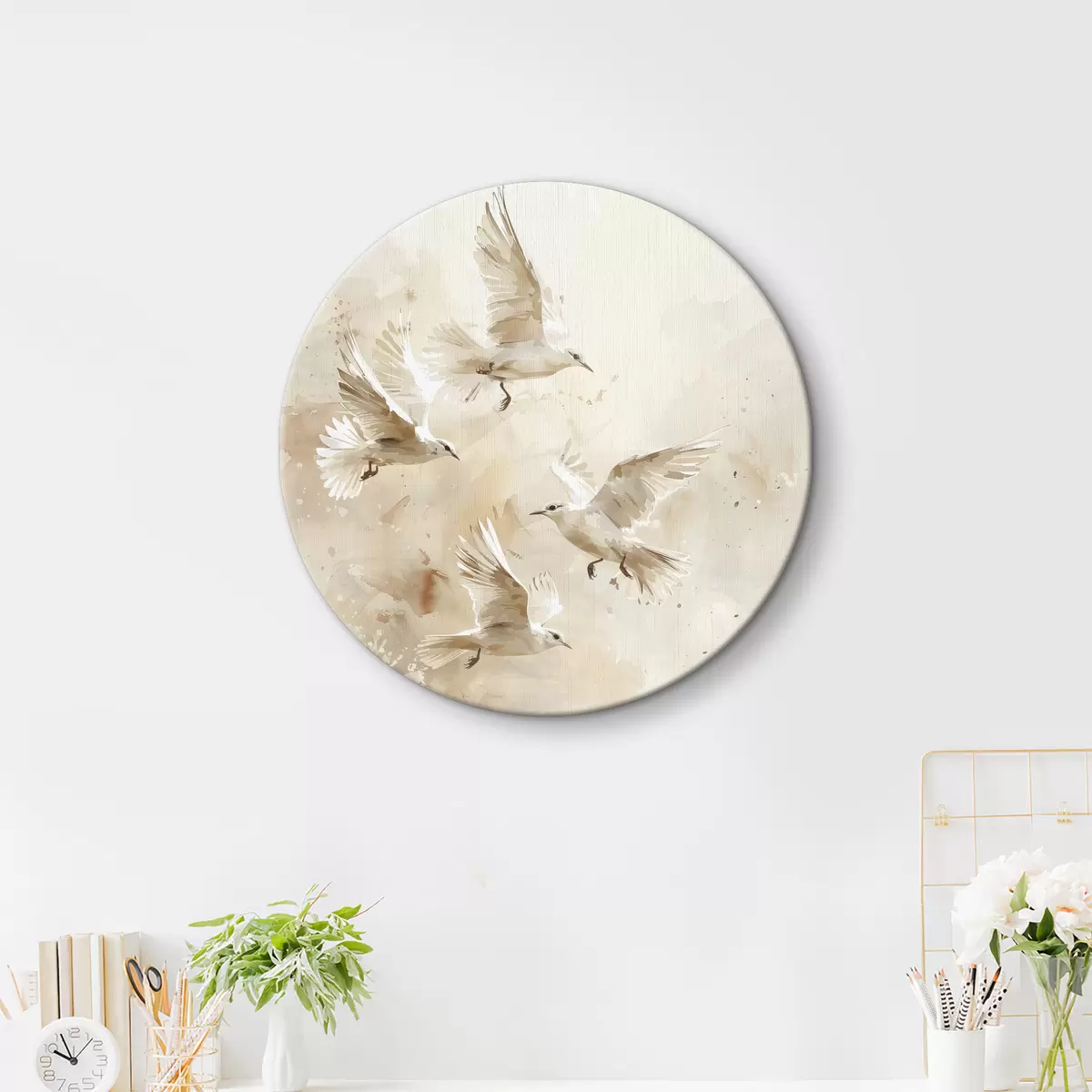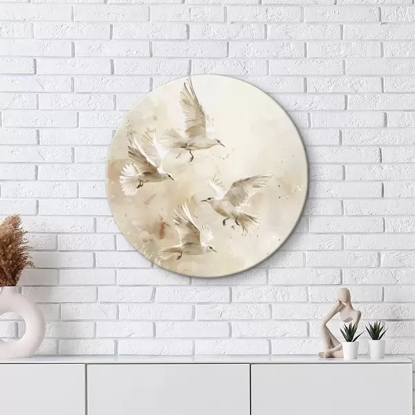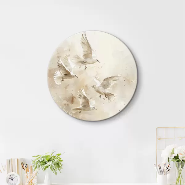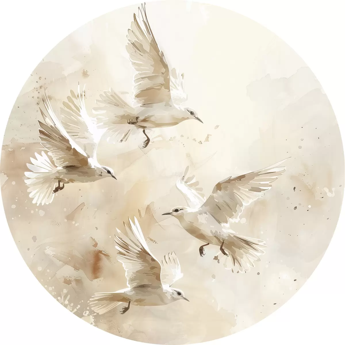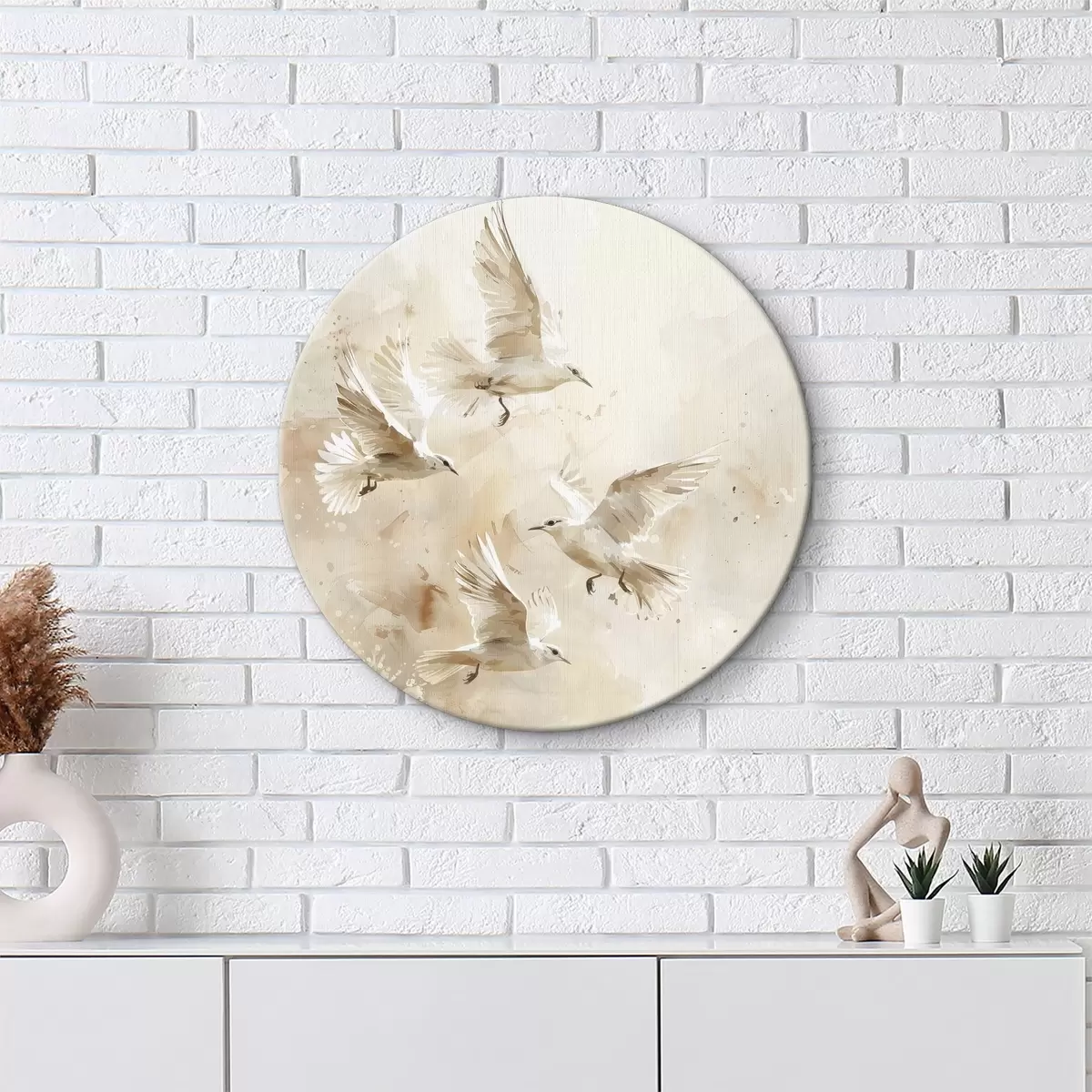 Apaļas gleznas Akvareļu lidojošie putni, maigas pasteļkrāsas, abstrakcija r39973