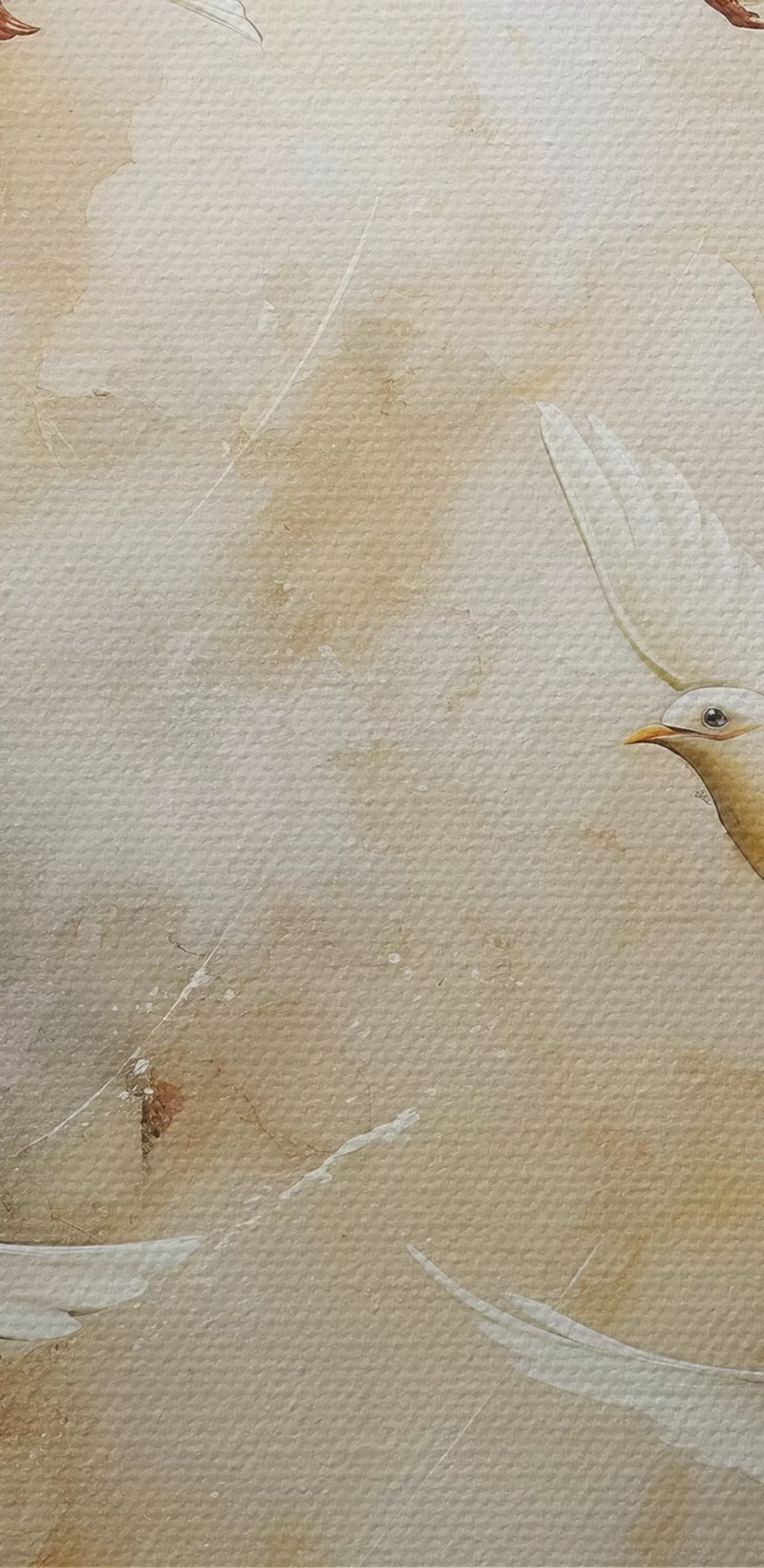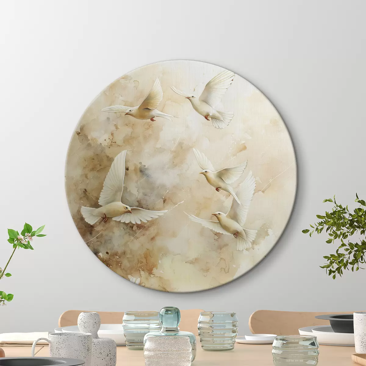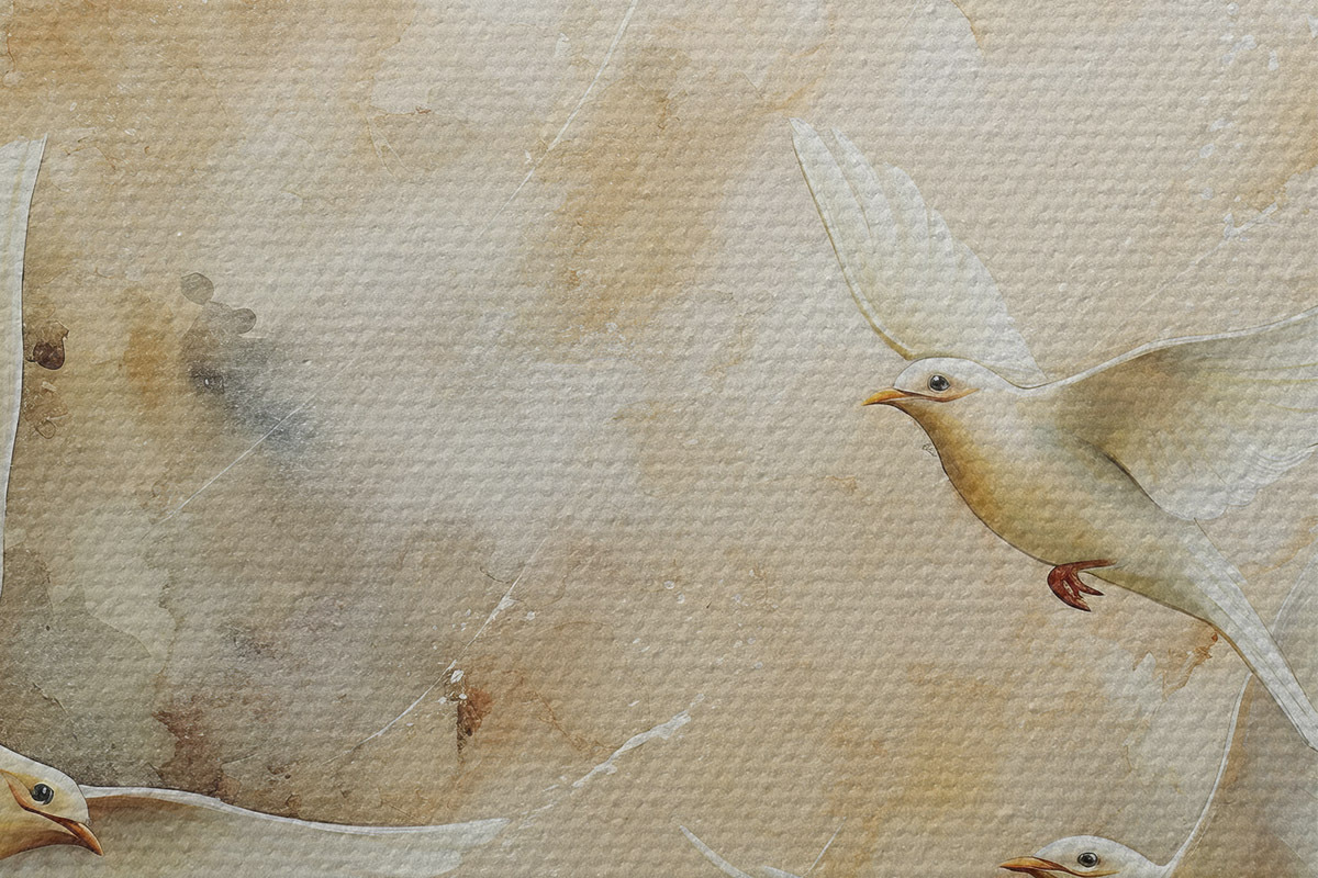 Attēls Akvareļkrāsas lidojošie baloži, maigi bēša un balta krāsa Nr r39977