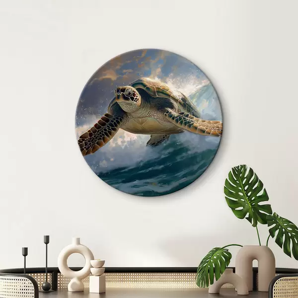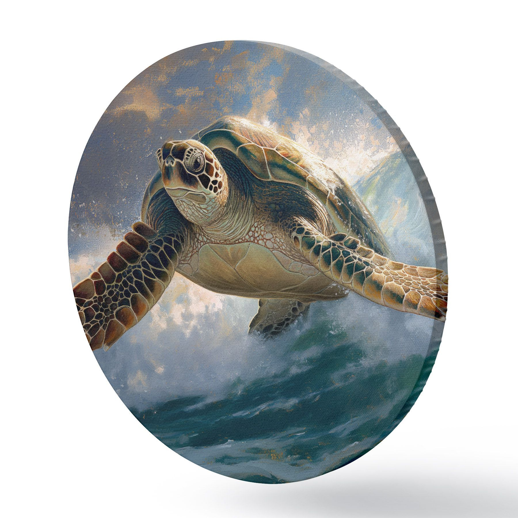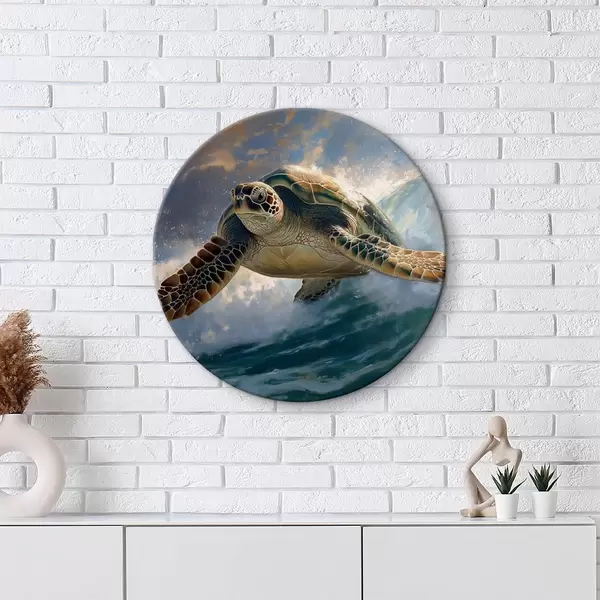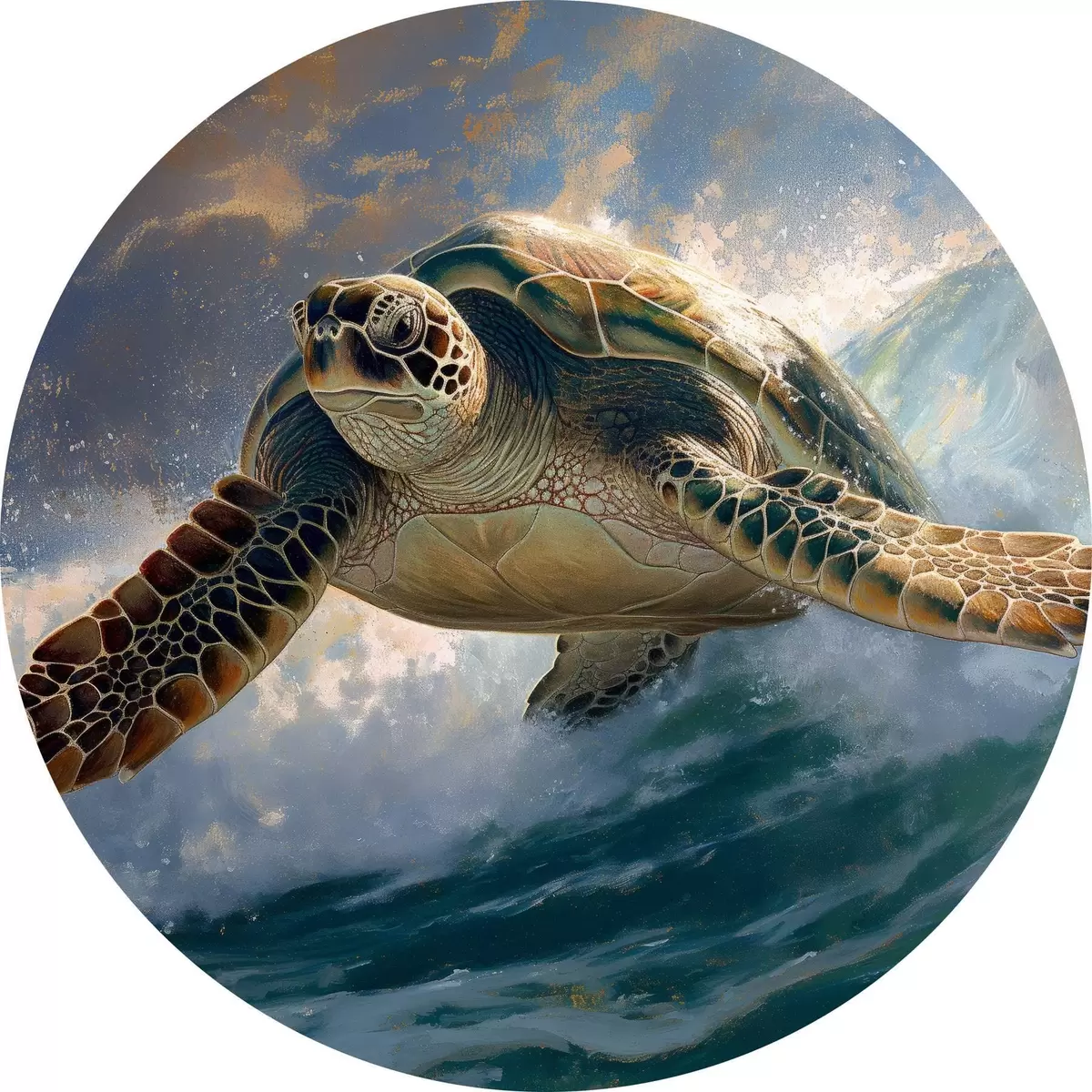 Apaļas gleznas Bruņurupucis, ūdens, zaļš, zils r40001