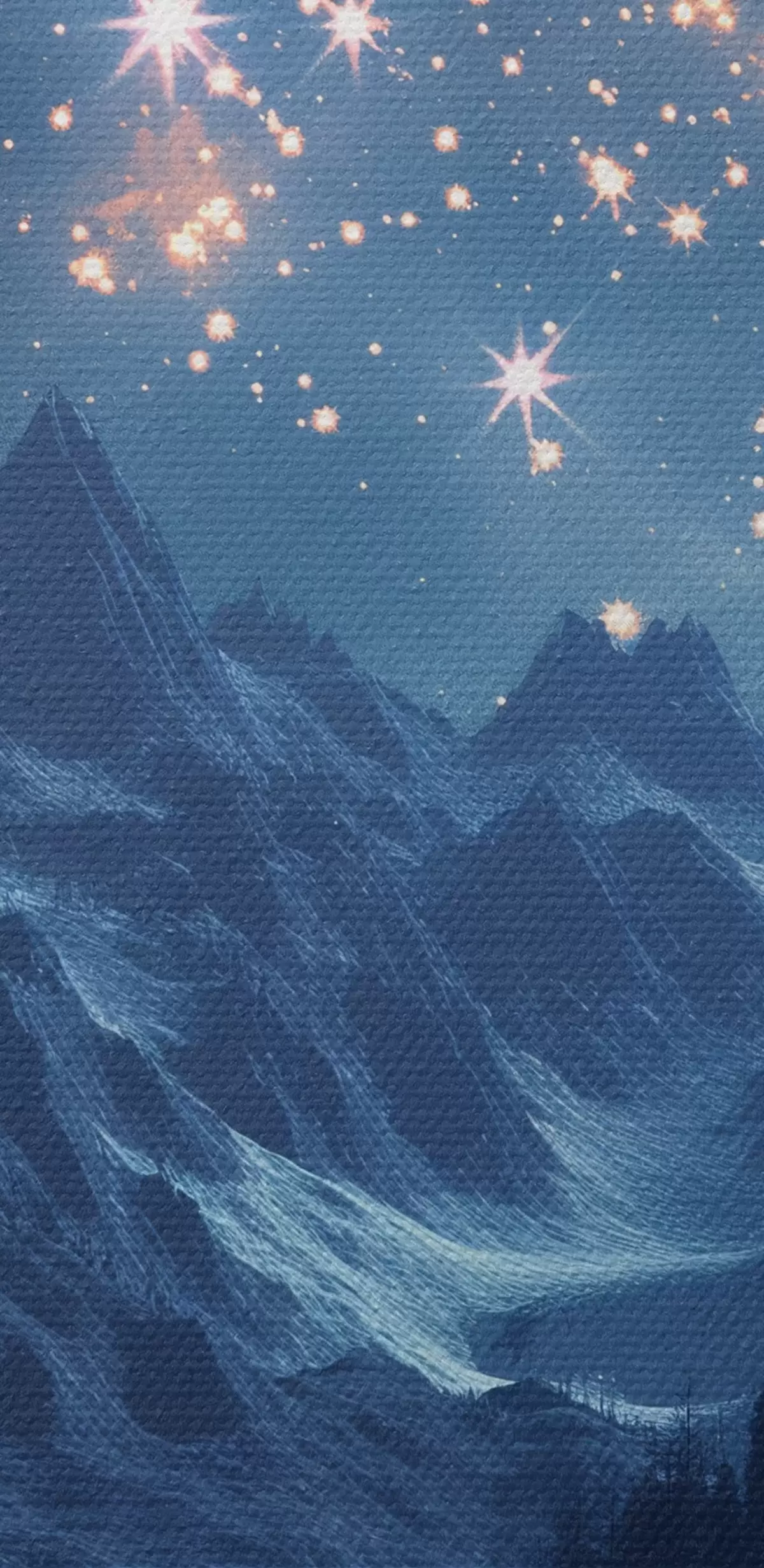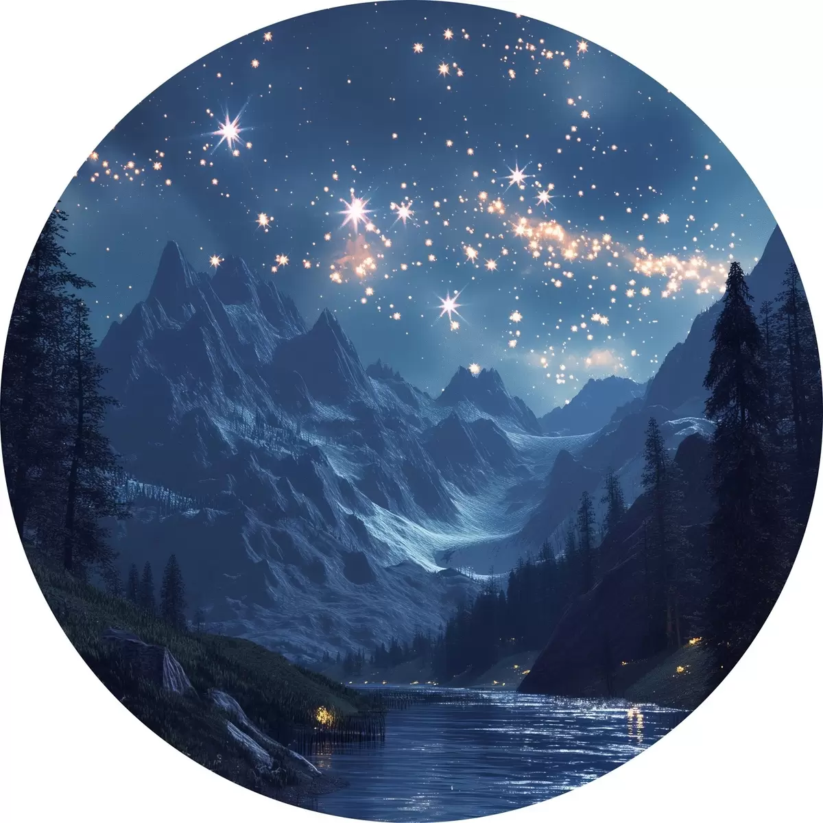 Apaļas gleznas Velaris, kalni, zvaigznes r40010