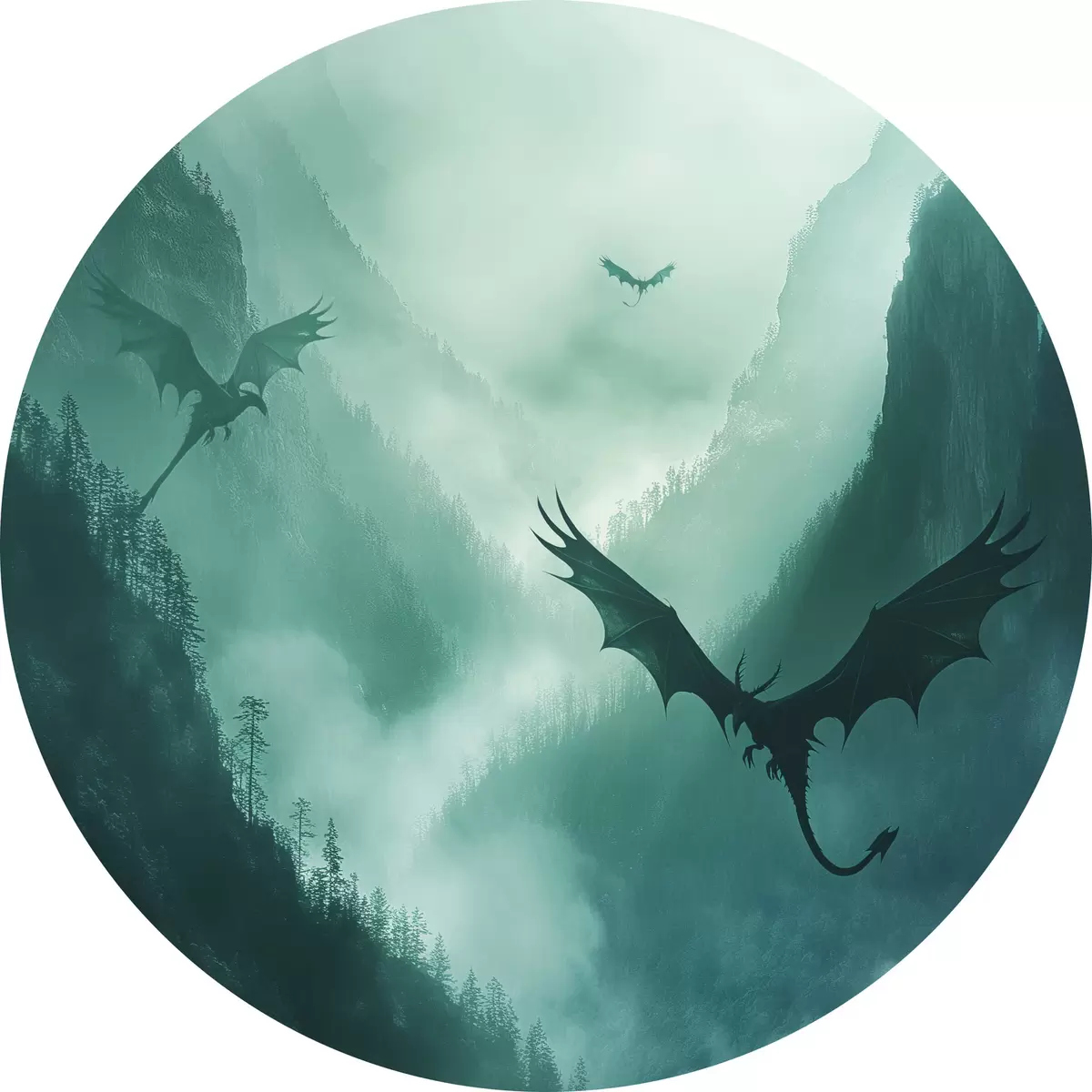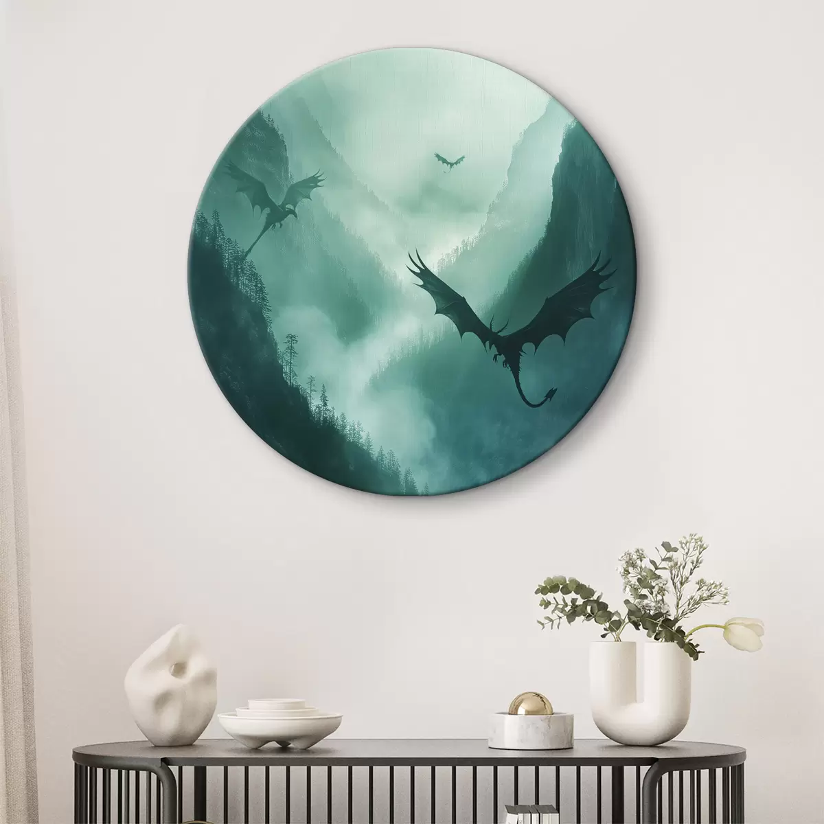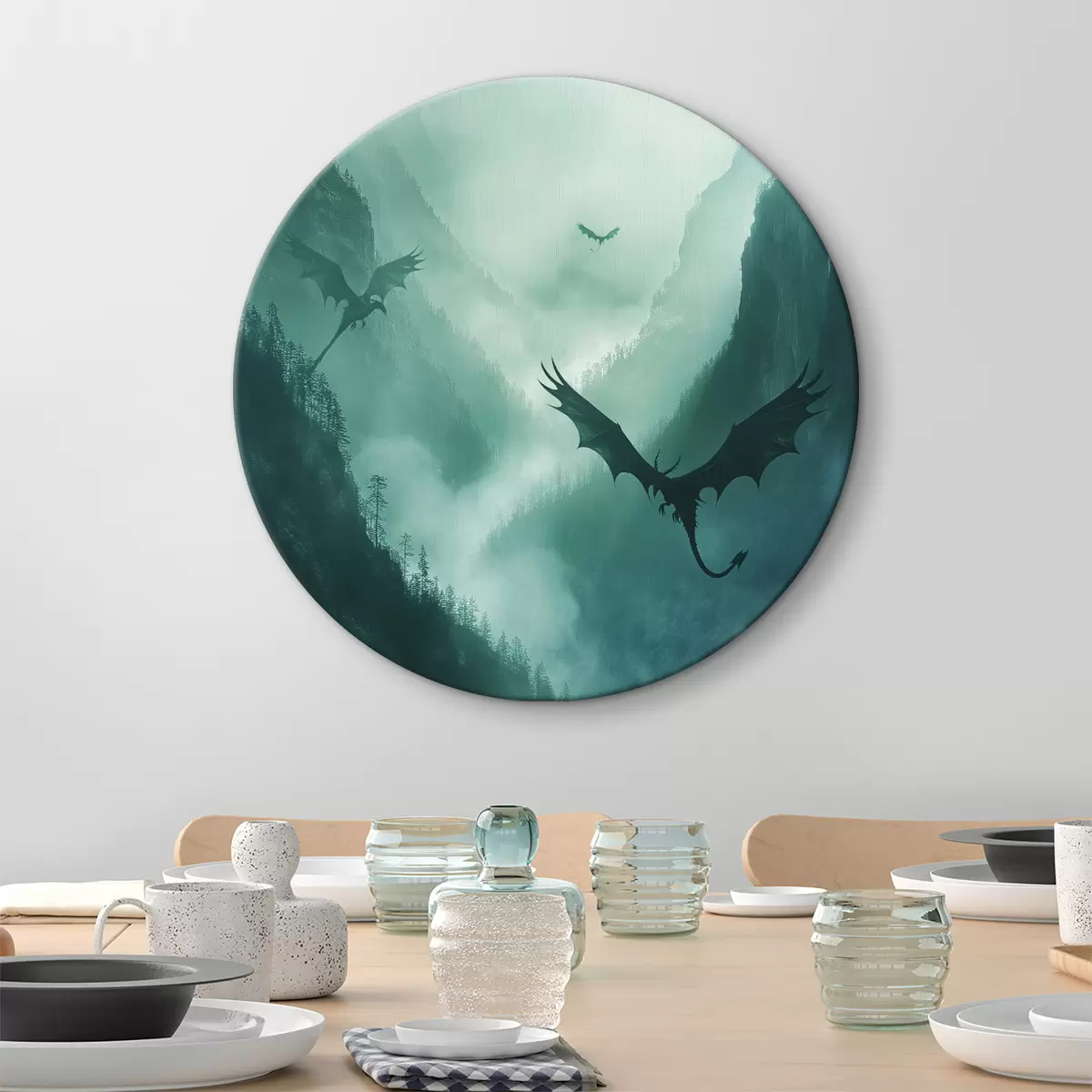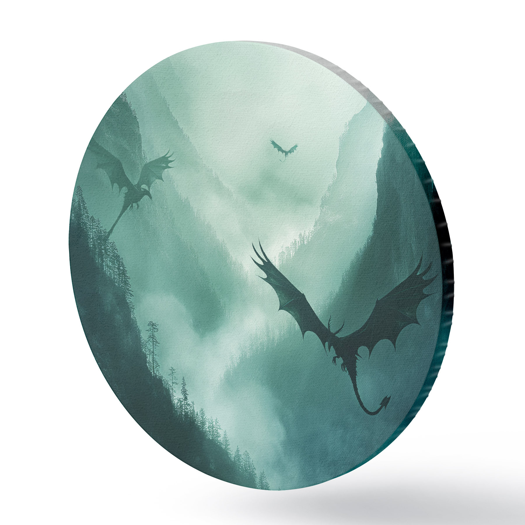 Apaļas gleznas Divi pūķi, zaļi r40011