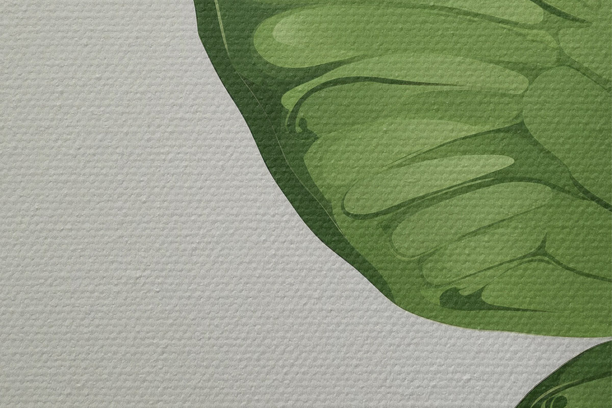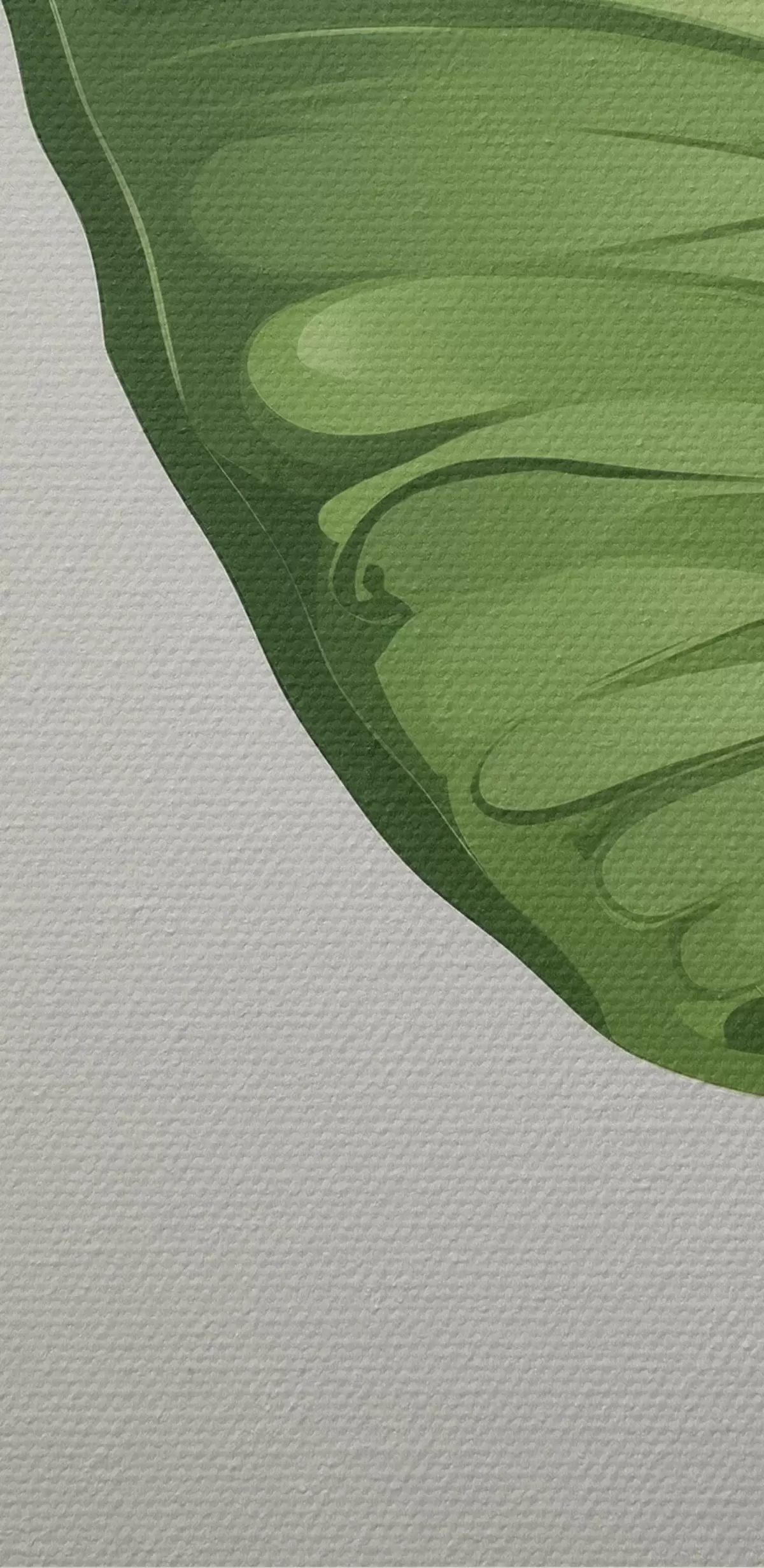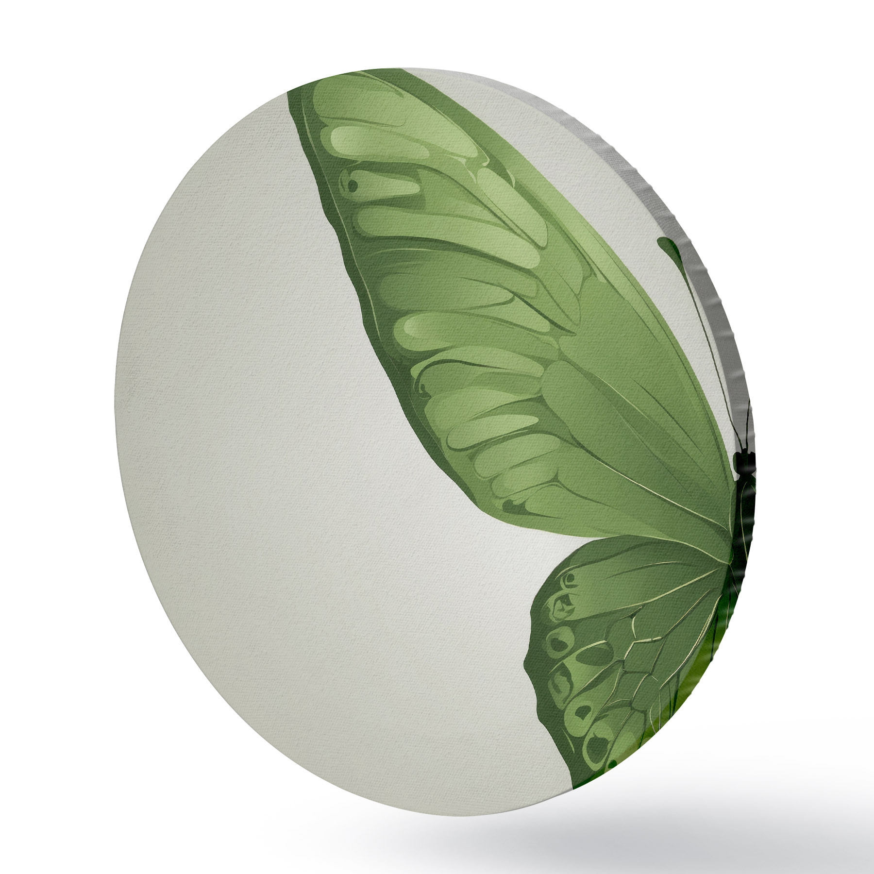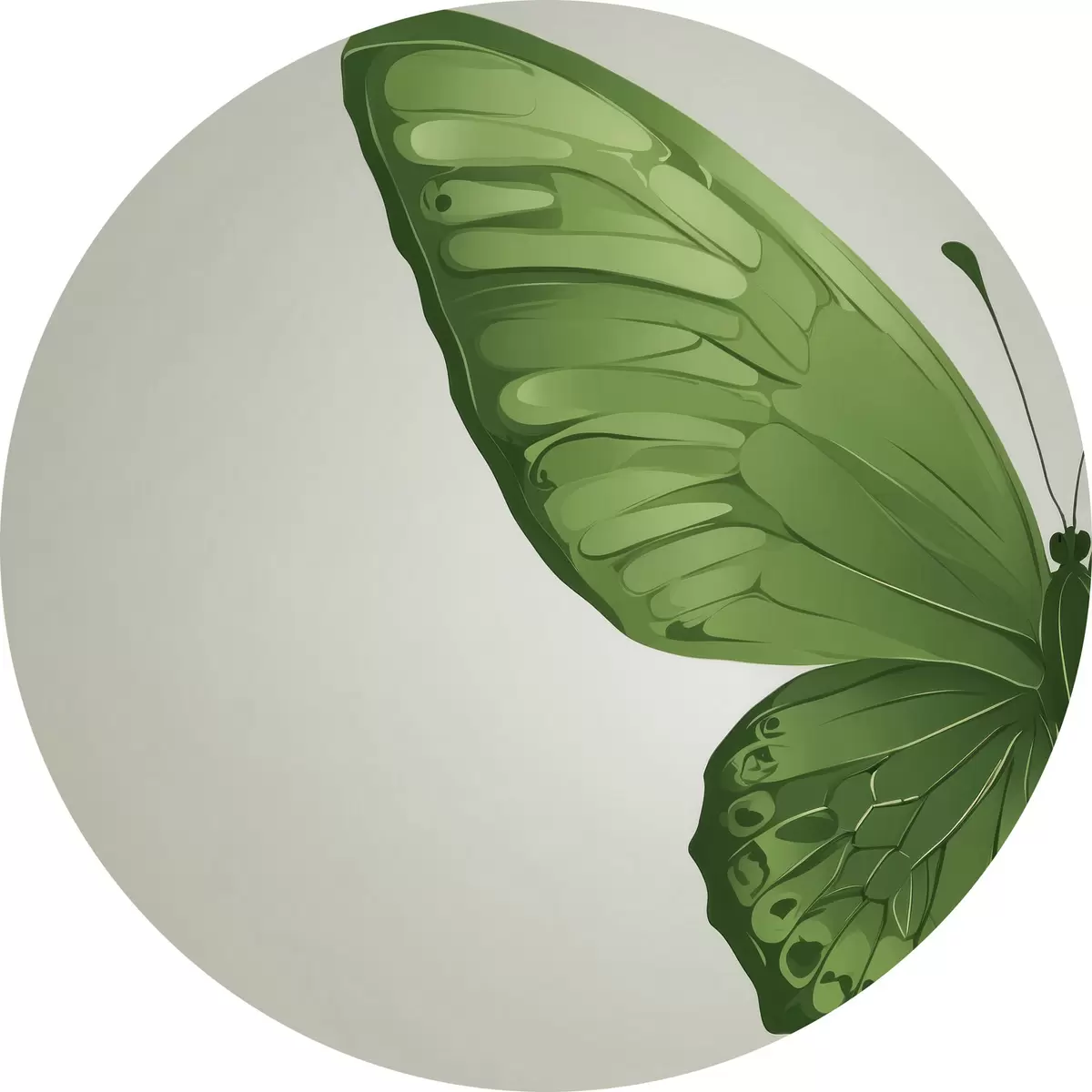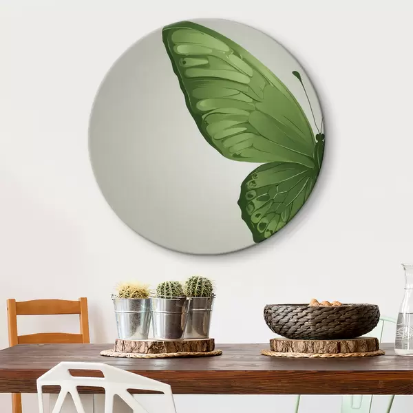 Apaļas gleznas Zaļa tauriņa kreisais spārns uz balta fona r40062