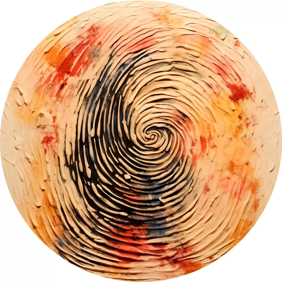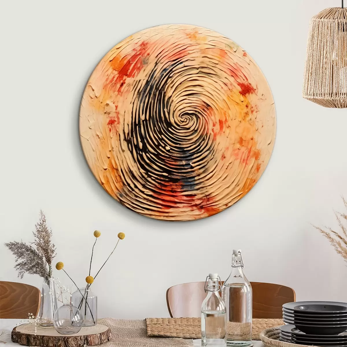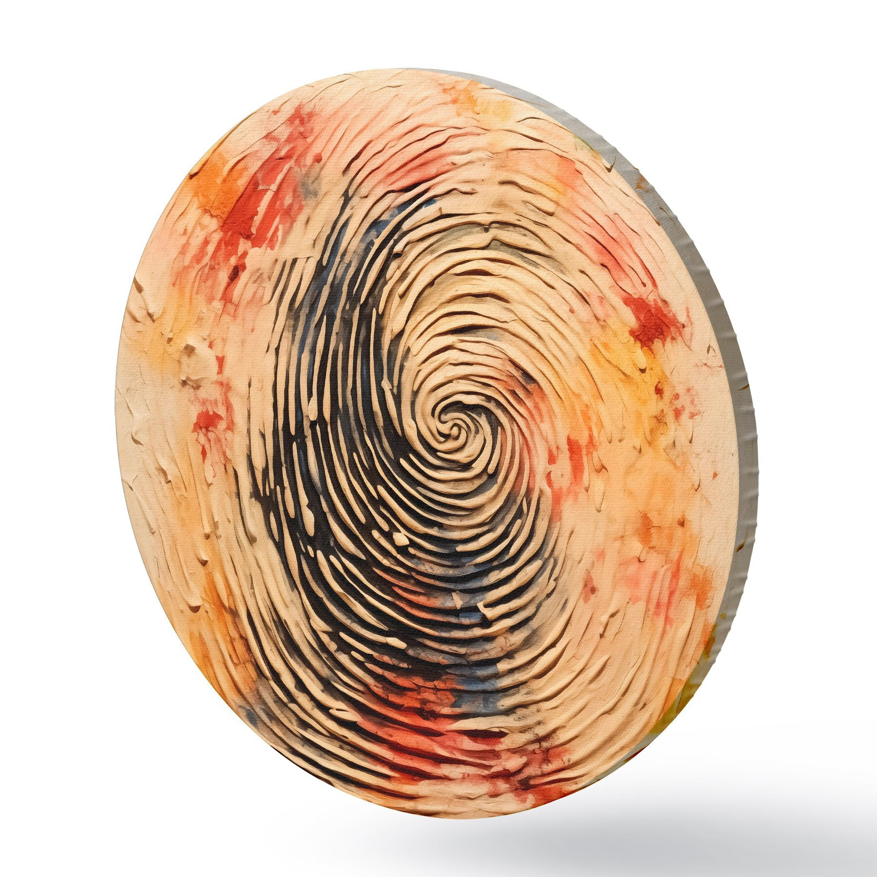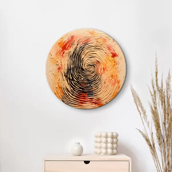 Apaļas gleznas Pirkstu nospiedums krāsā, bēšā, sarkanā, oranžā, dzeltenā, melnā krāsā r40105