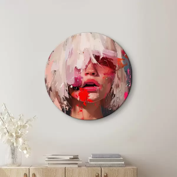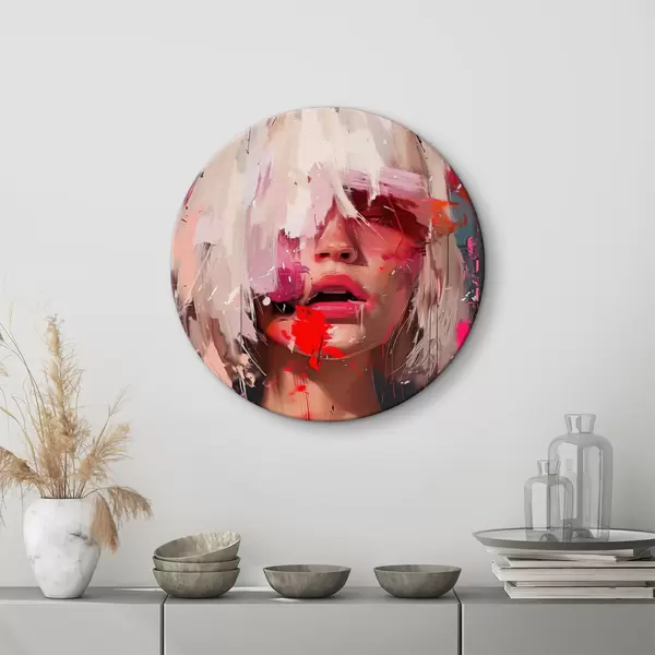 Apaļas gleznas Blondīne ar kvadrātveida bobu un krāsainu krāsu r40110