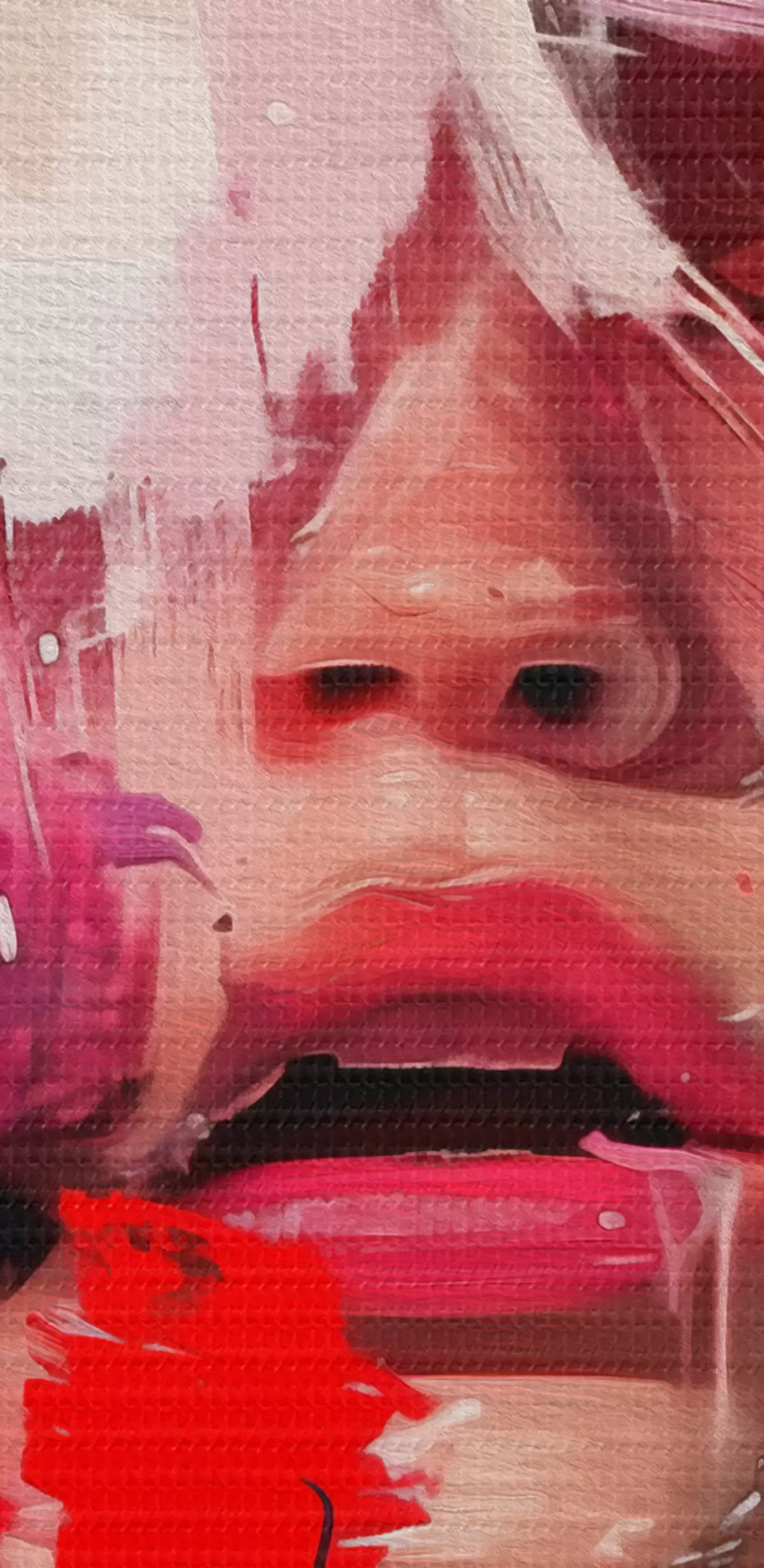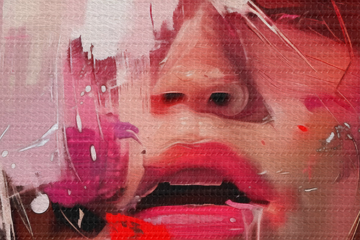 Smalkais diegu pinums uz šī audekla atgādina profesionālu mākslinieku audeklu virsmu.