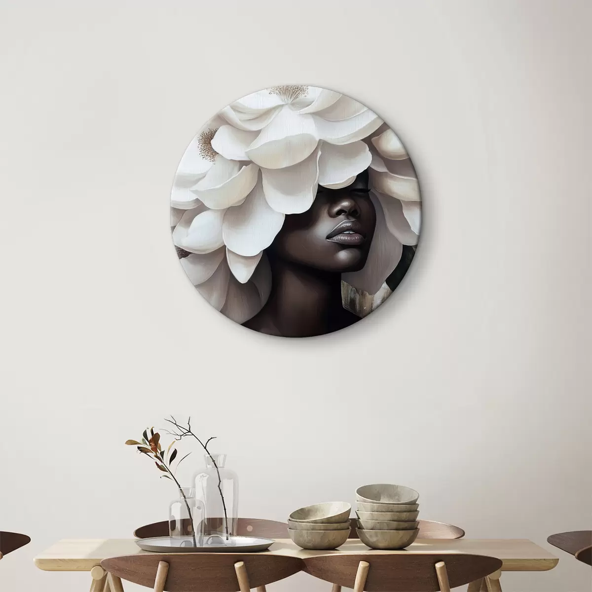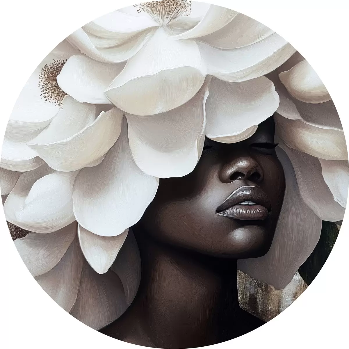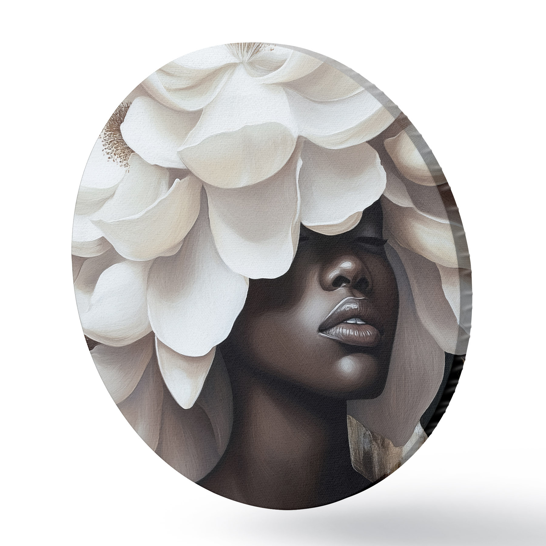 Apaļas gleznas Sieviete ar ziediem galvā r40123