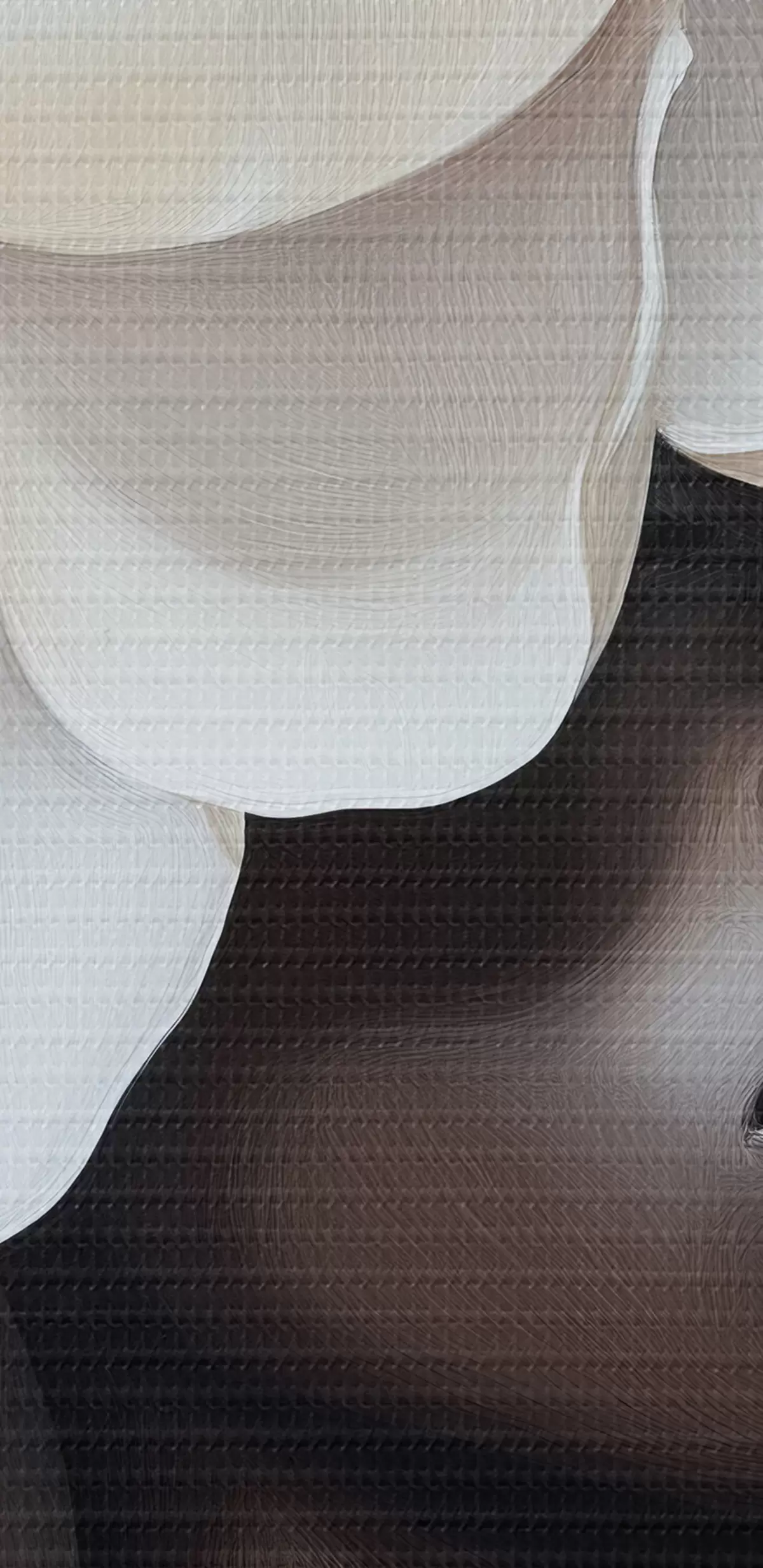 Smalkais diegu pinums uz šī audekla atgādina profesionālu mākslinieku audeklu virsmu.