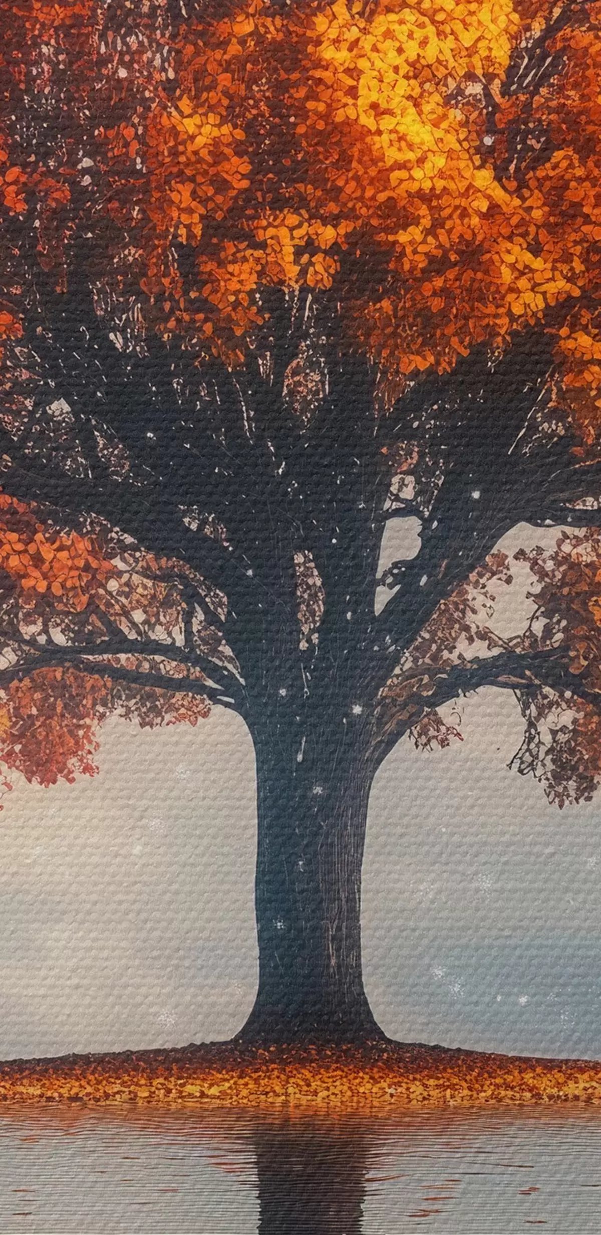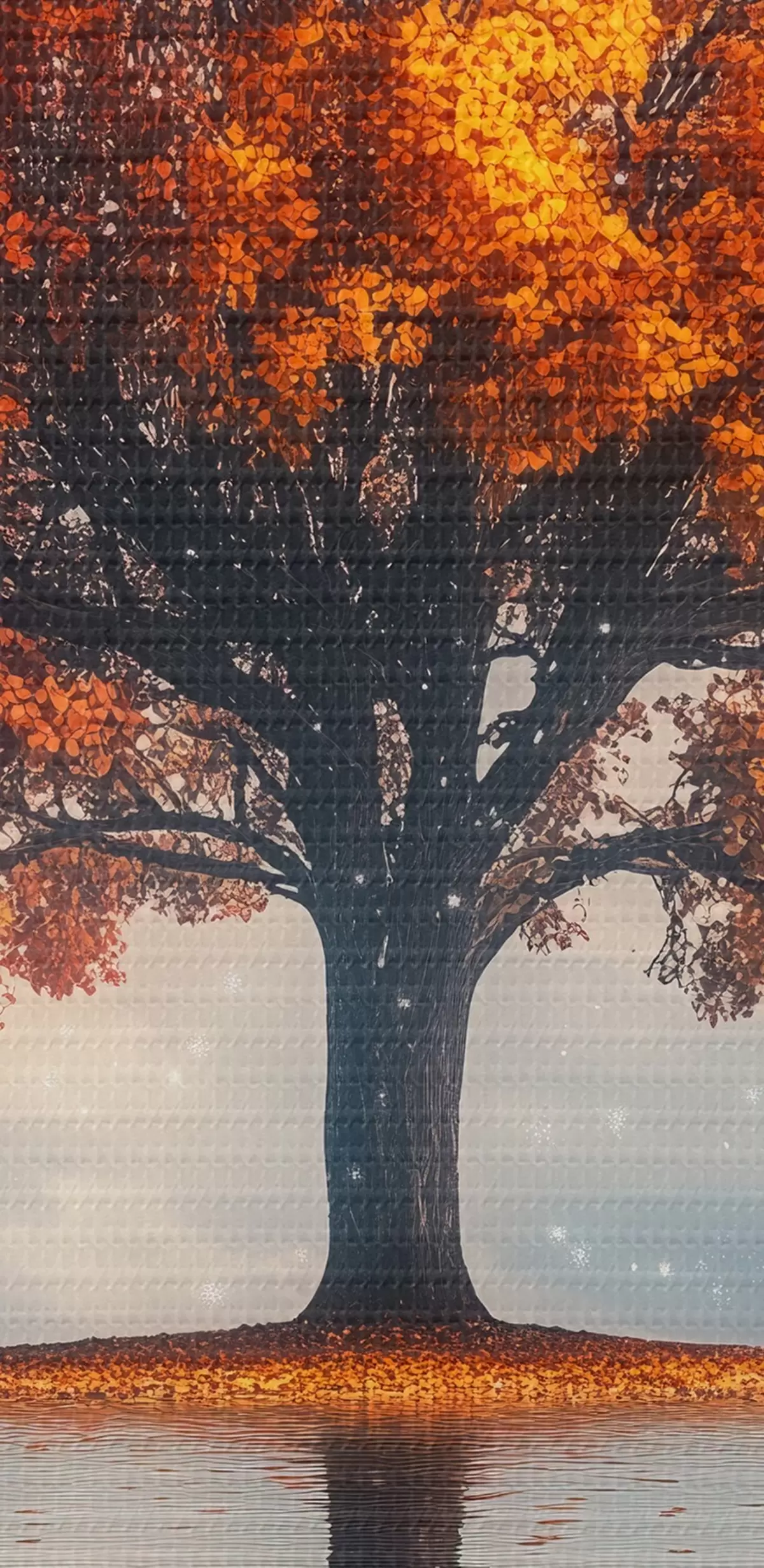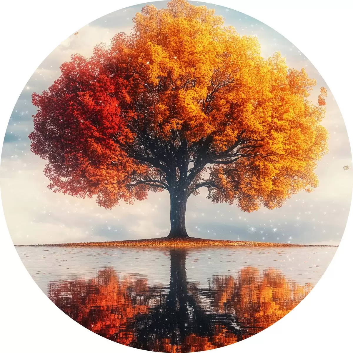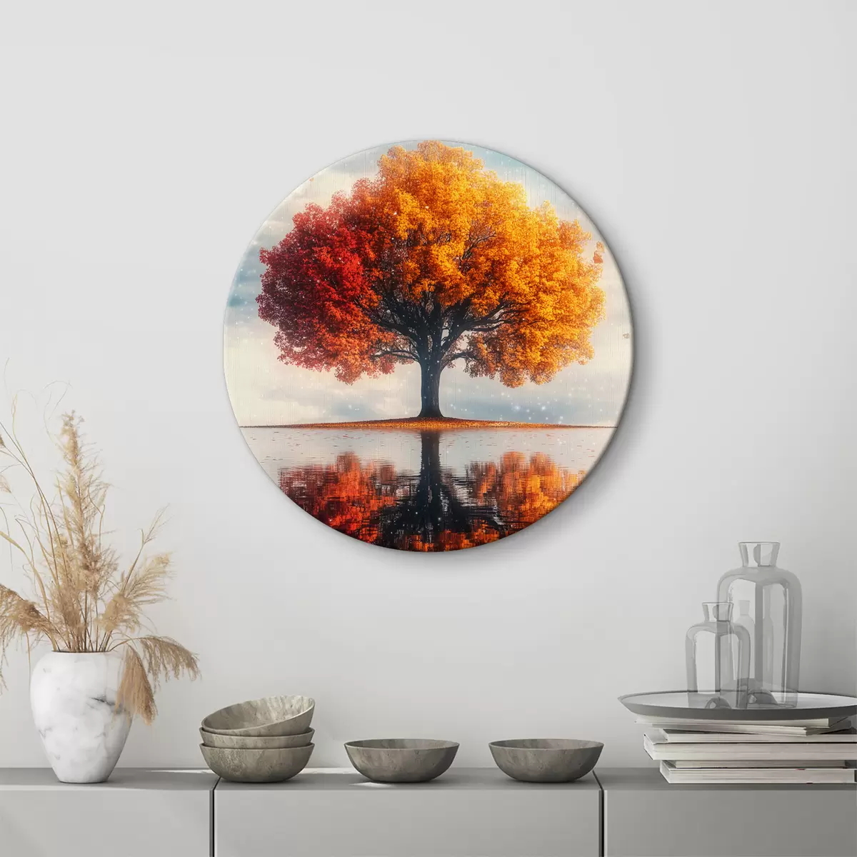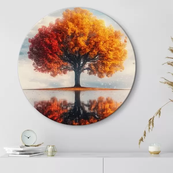 Apaļas gleznas Koks ar atspulgu ūdenī r40126