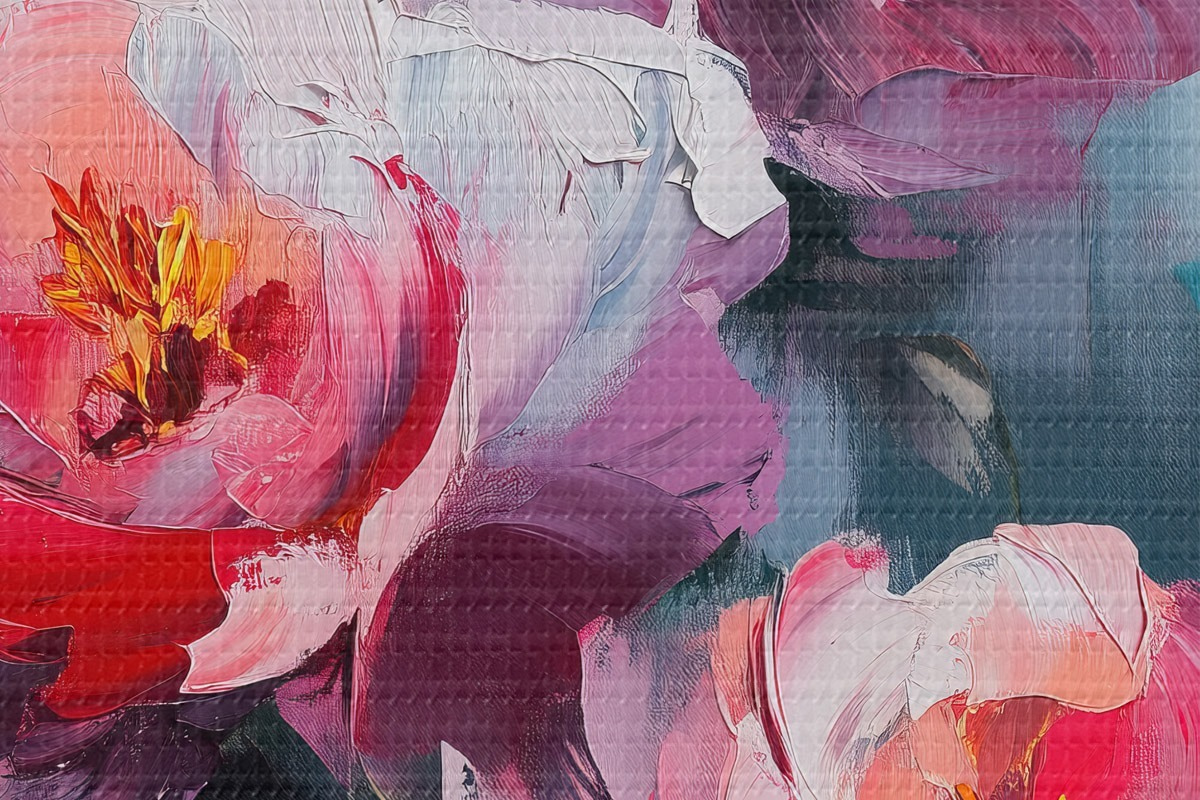 Smalkais diegu pinums uz šī audekla atgādina profesionālu mākslinieku audeklu virsmu.