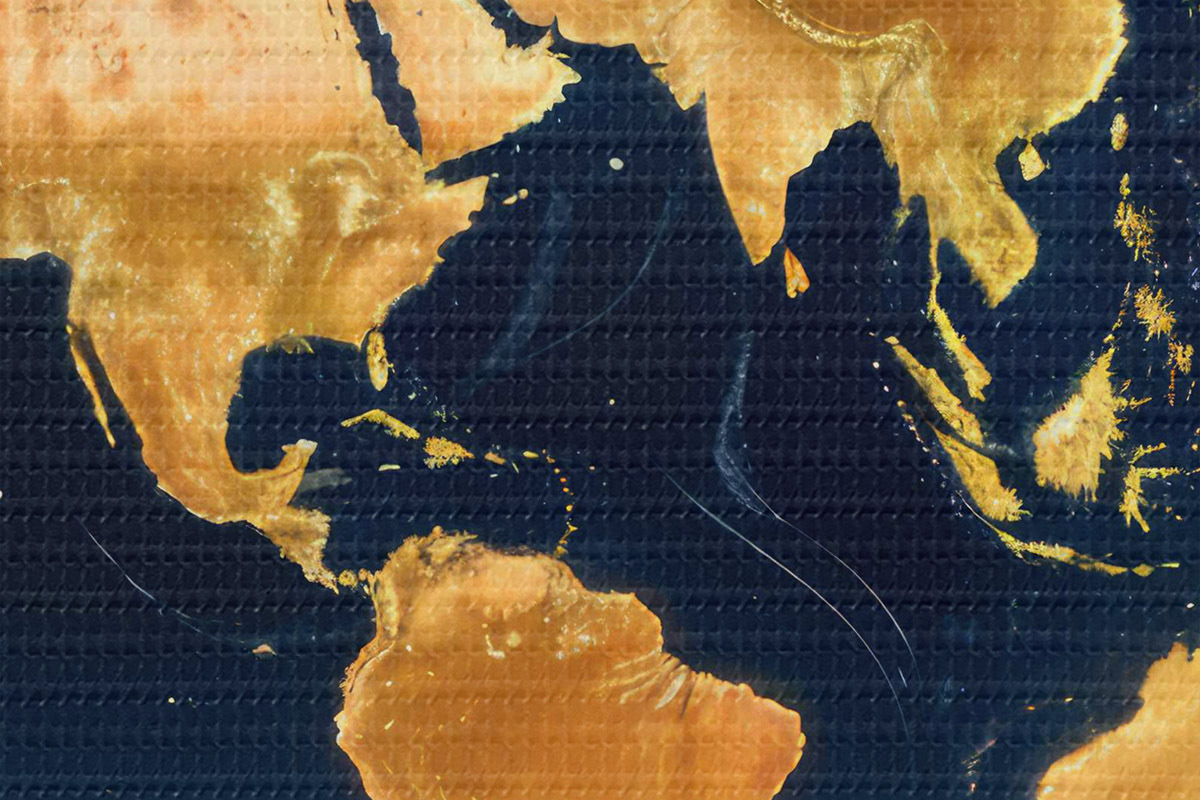Smalkais diegu pinums uz šī audekla atgādina profesionālu mākslinieku audeklu virsmu.