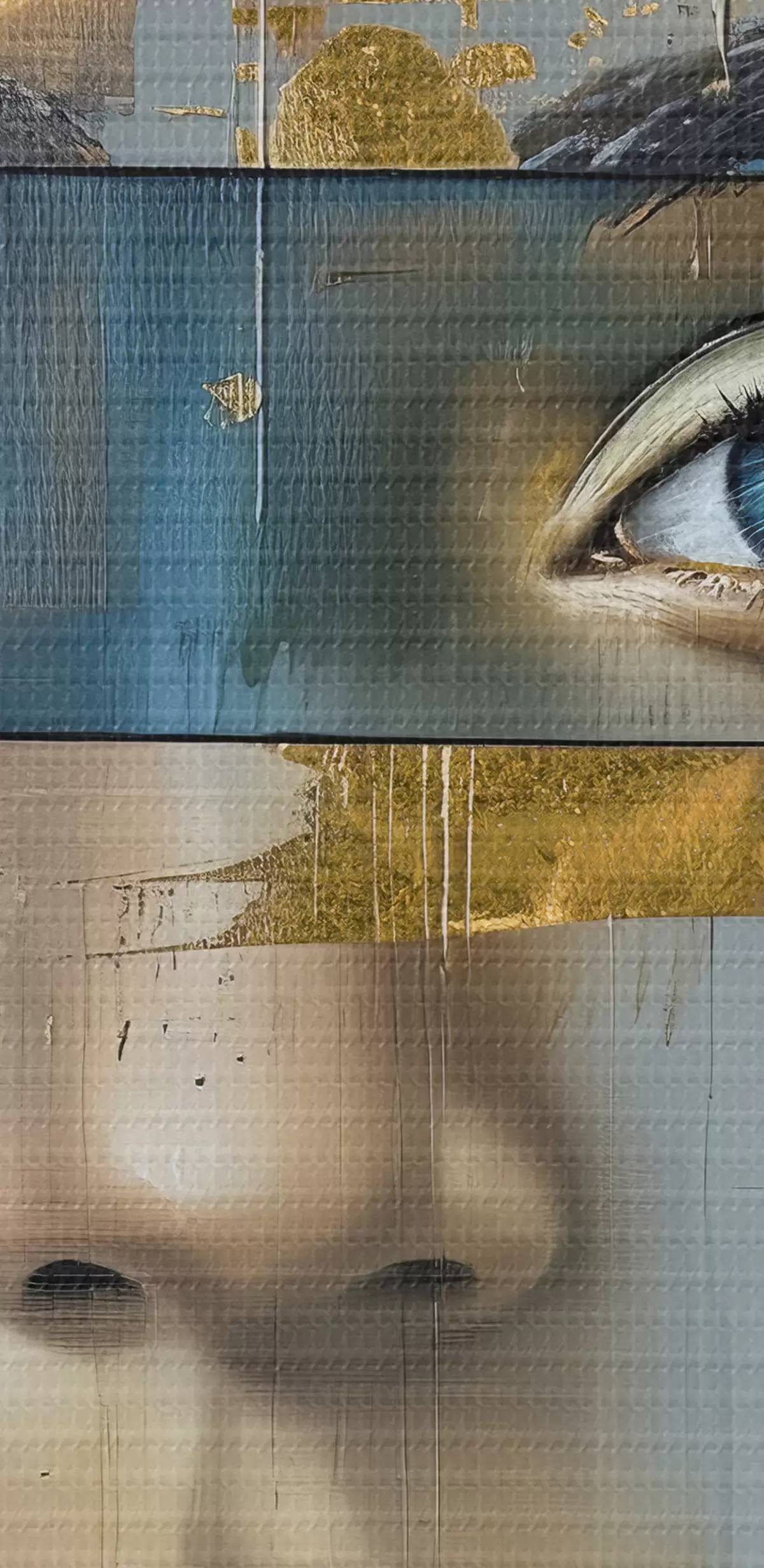 Smalkais diegu pinums uz šī audekla atgādina profesionālu mākslinieku audeklu virsmu.