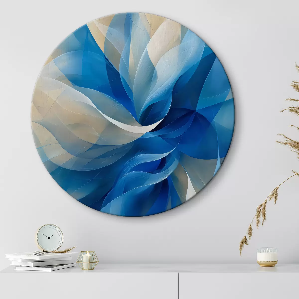 Apaļas gleznas zils abstrakts zieds r40243