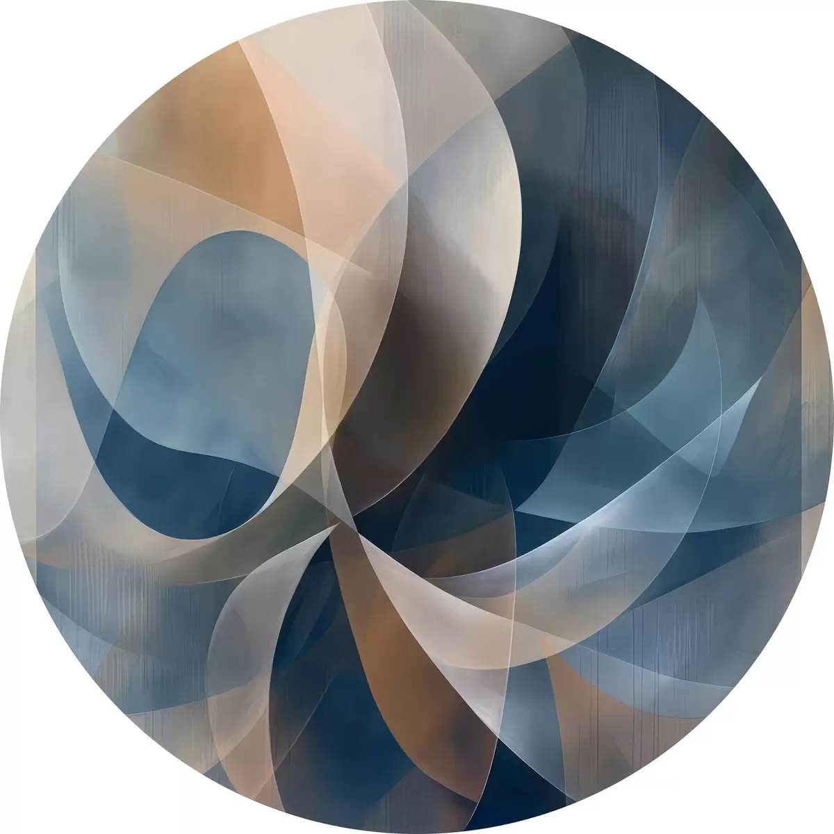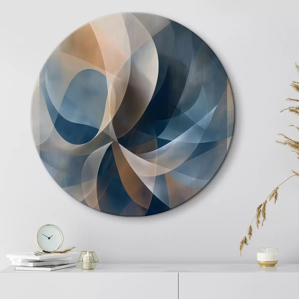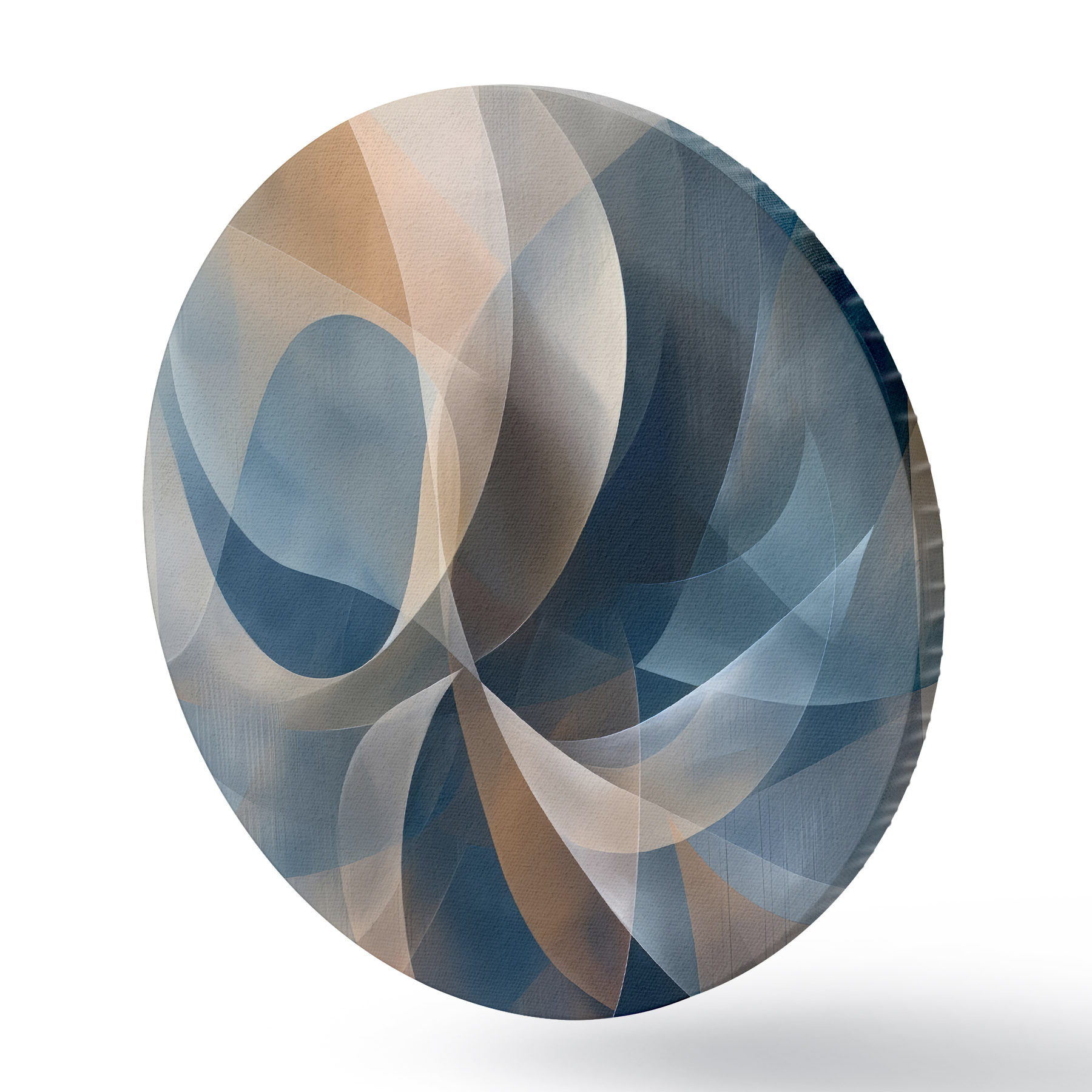Apaļas gleznas zils bēšs abstrakts zieds r40245