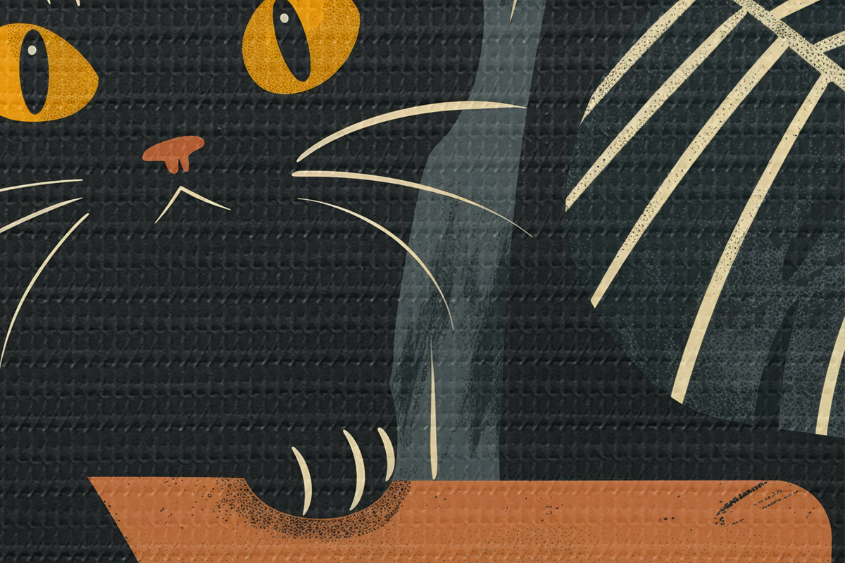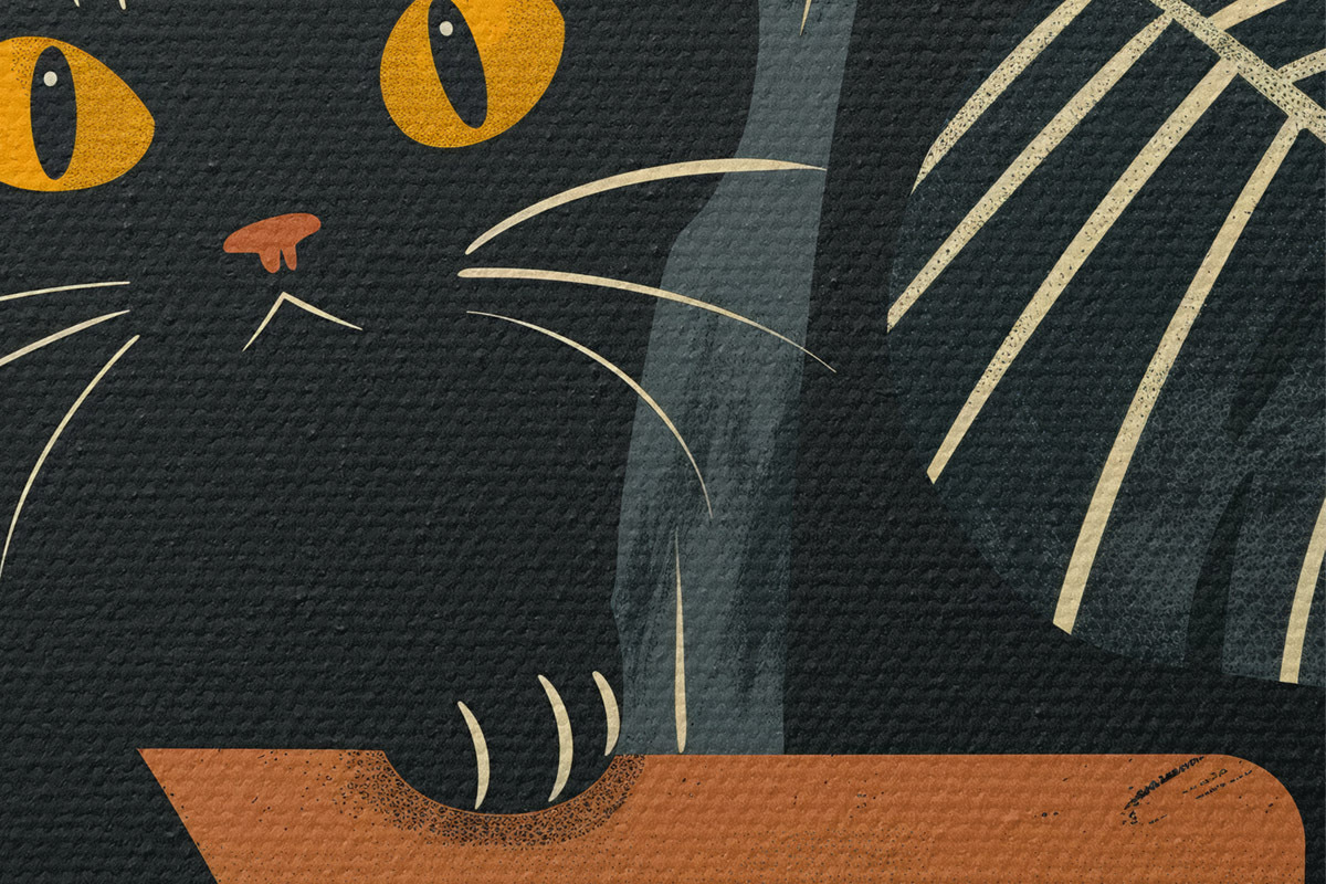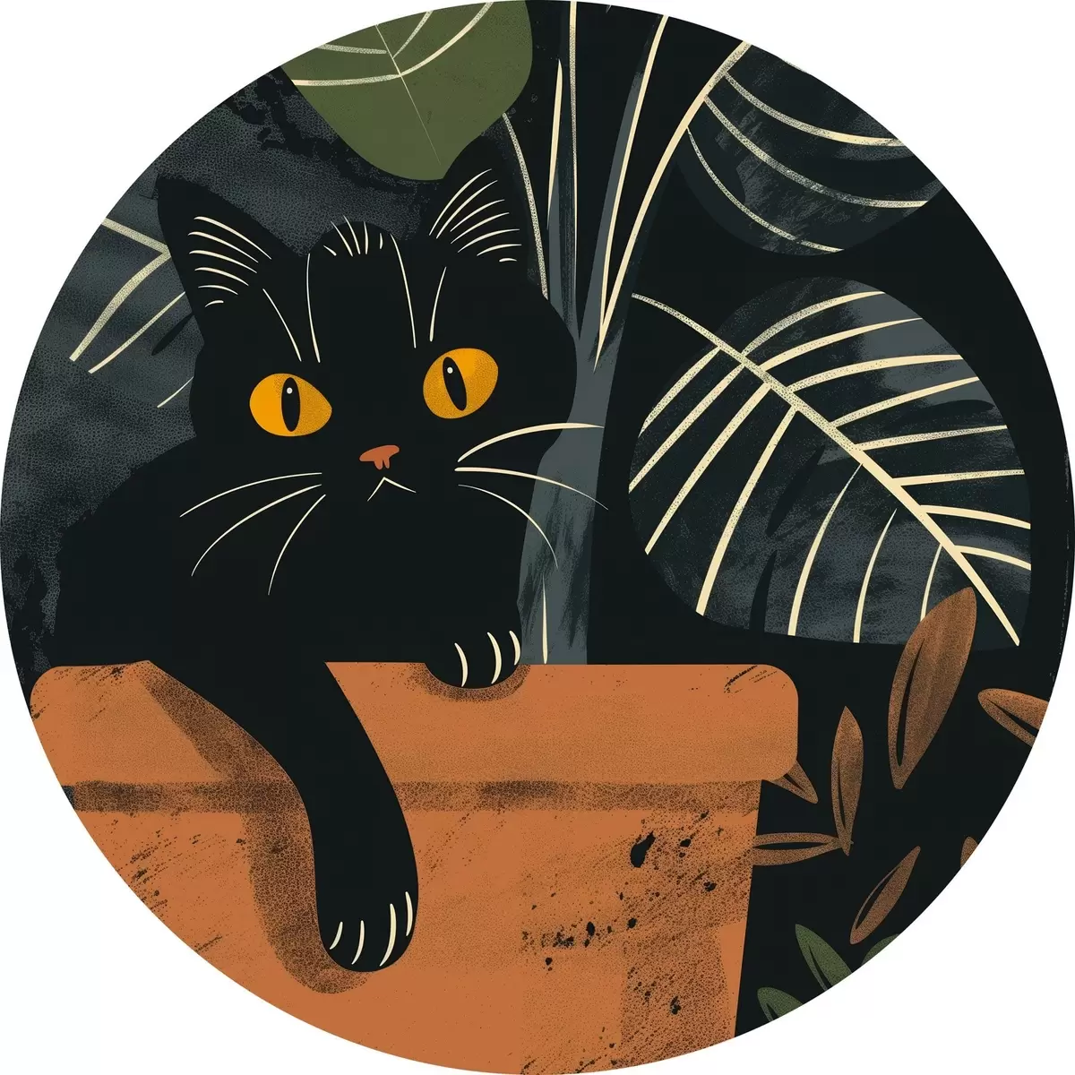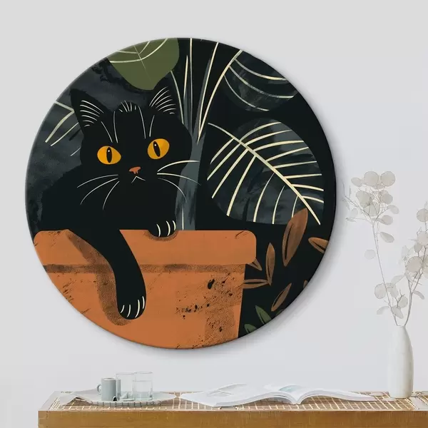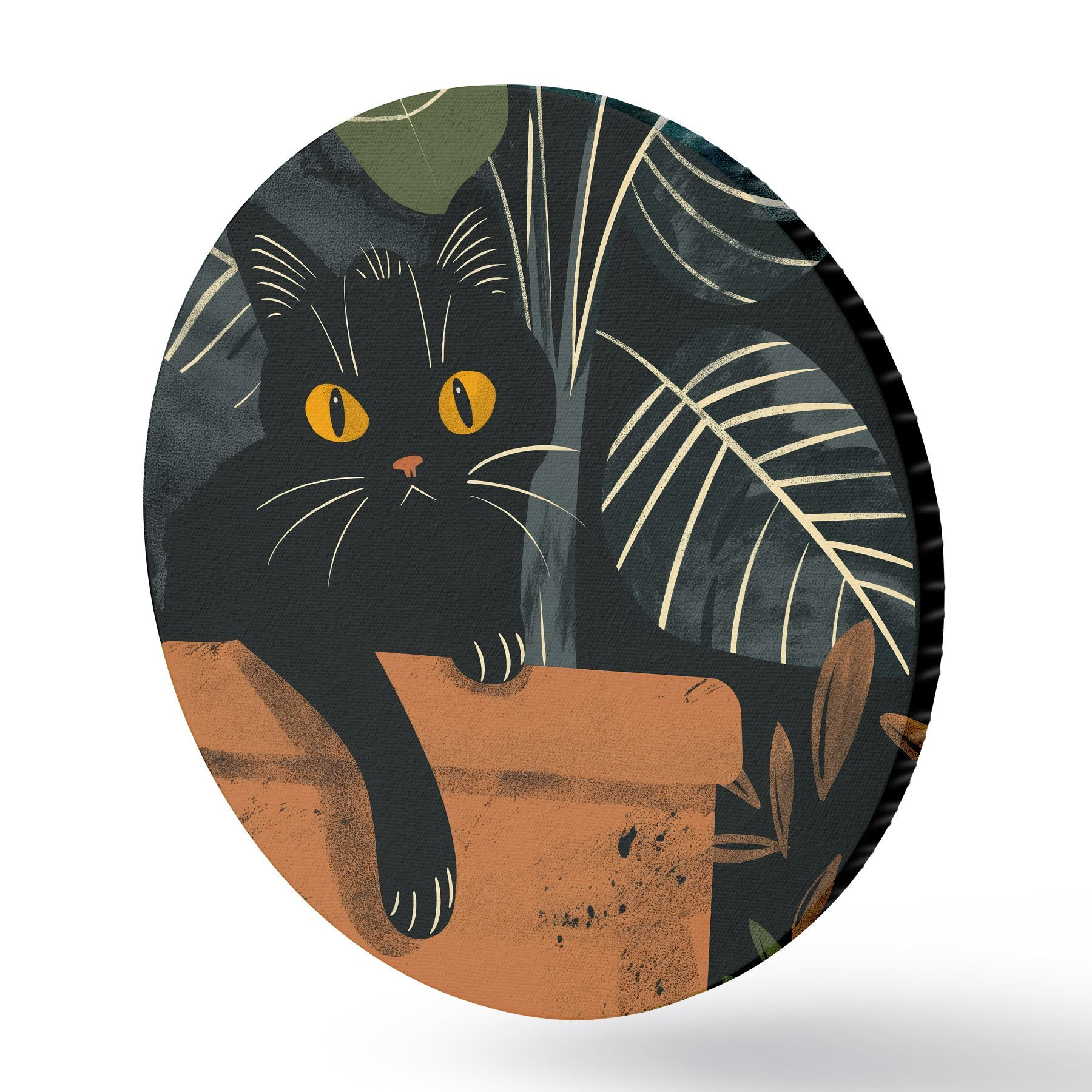 Apaļas gleznas Kaķis podā ar ziedu r40268