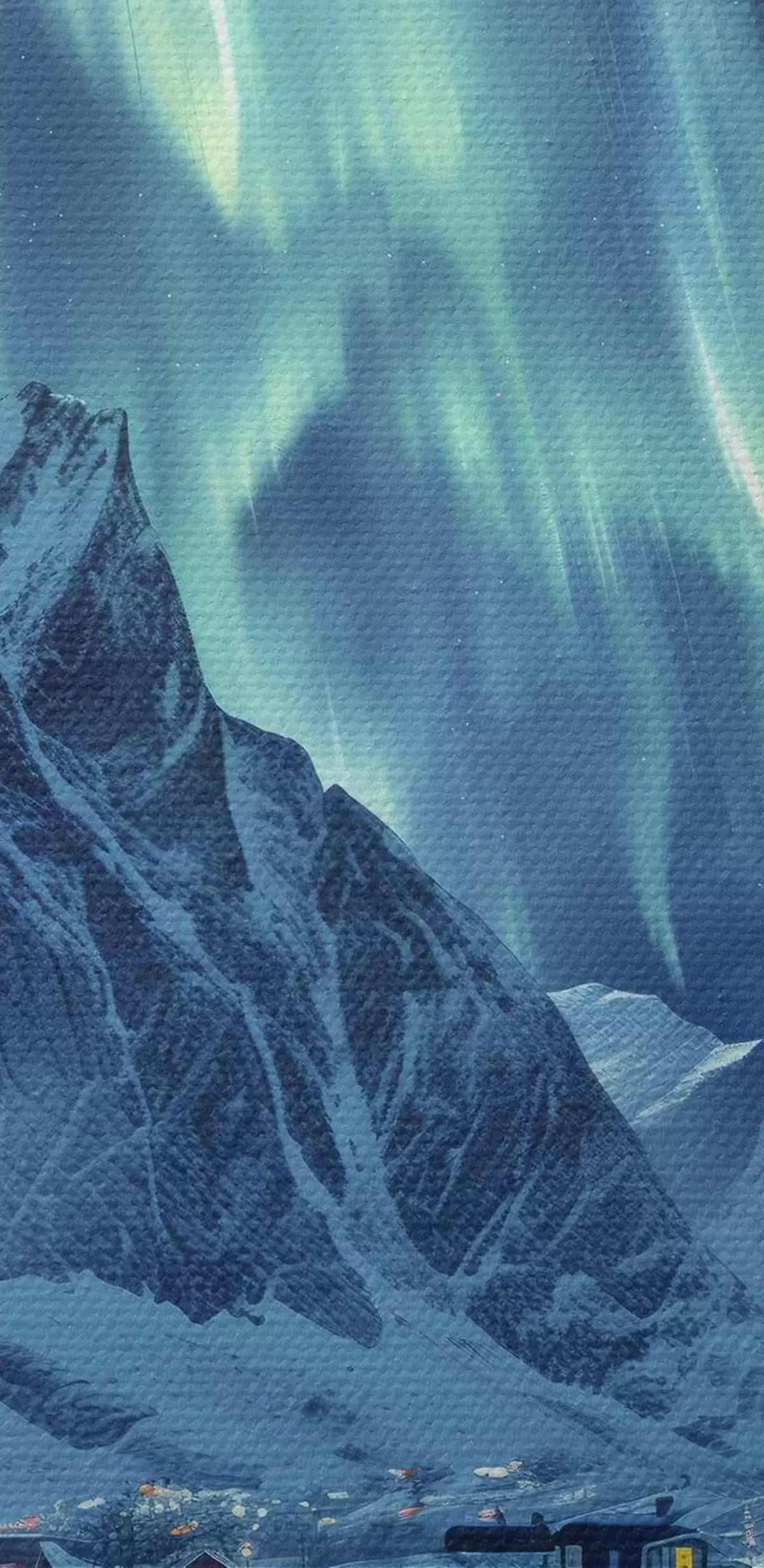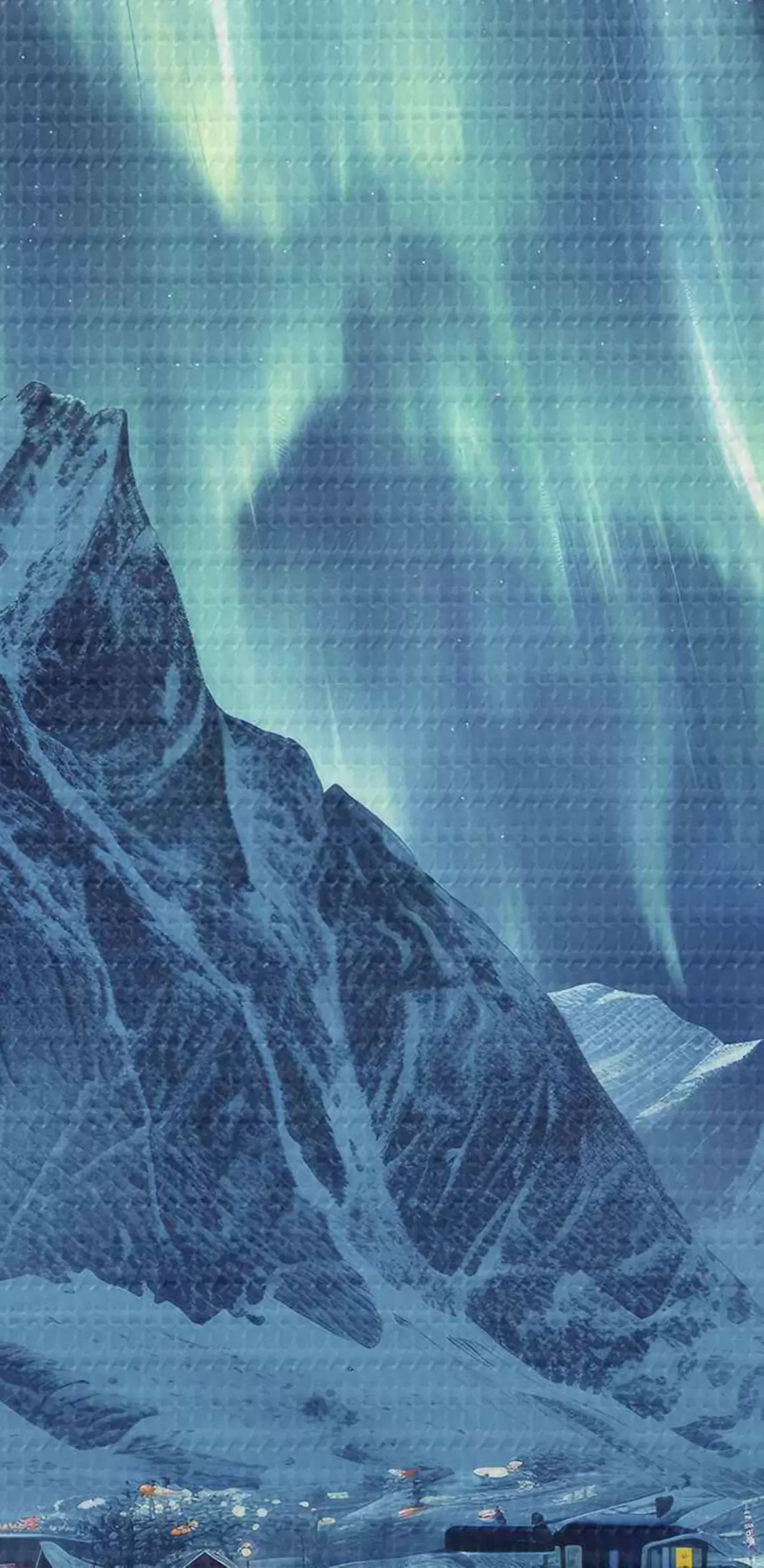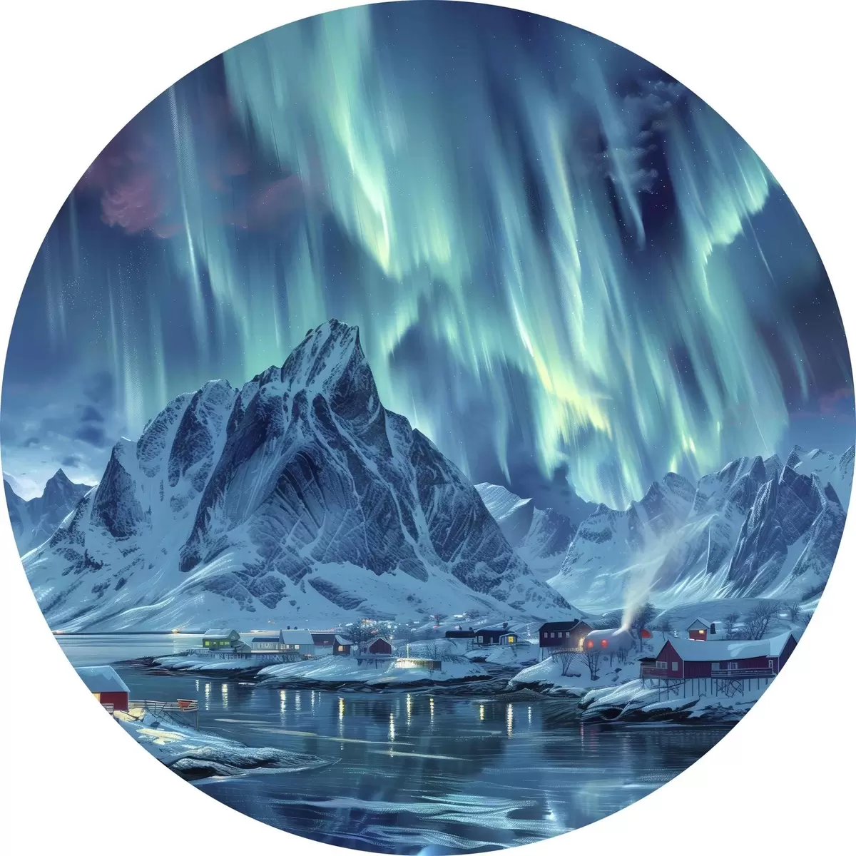 Attēls Maģiskā ziemeļblāzma, ziemas ciemats Norvēģijā Nr r40301