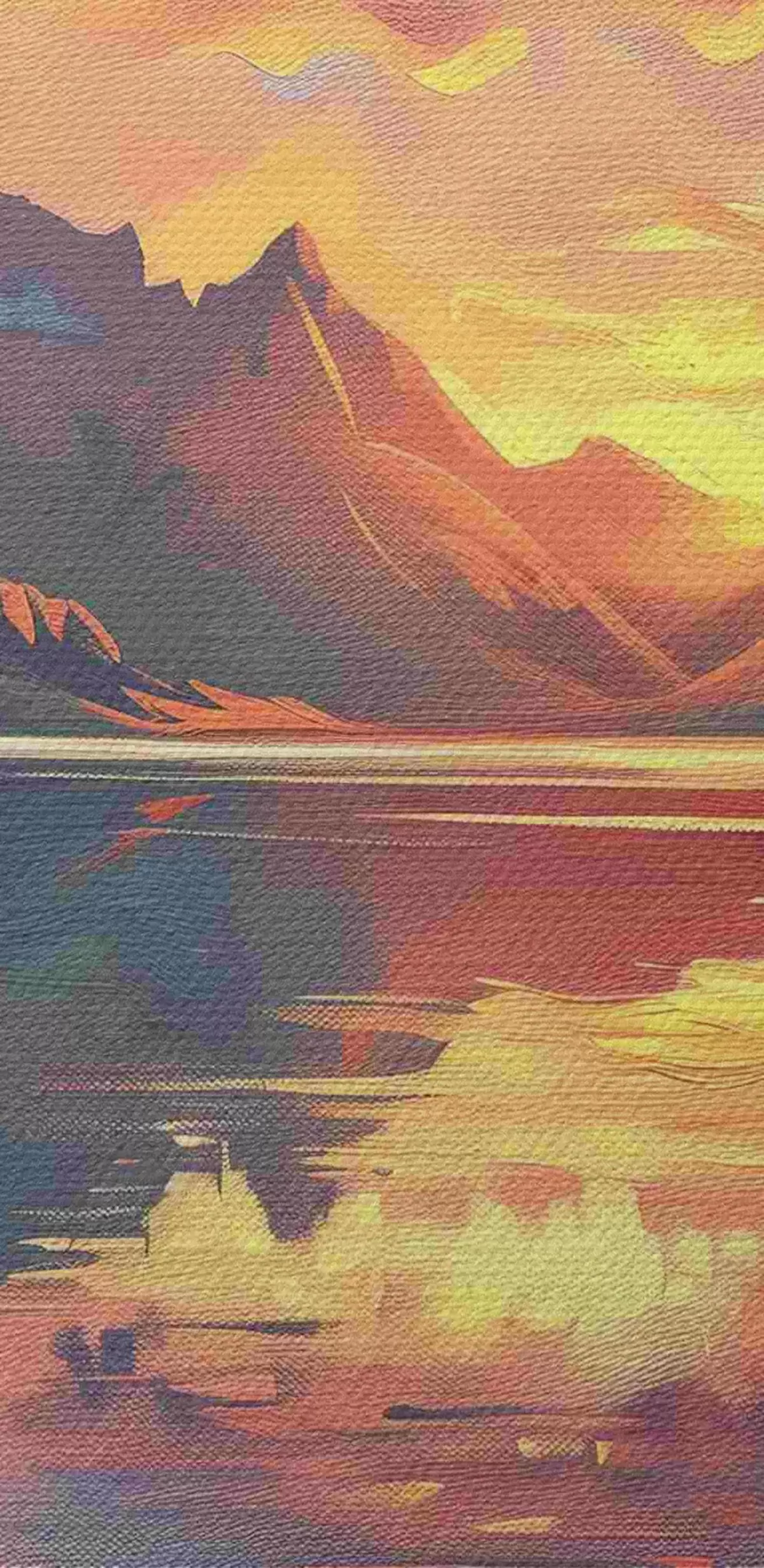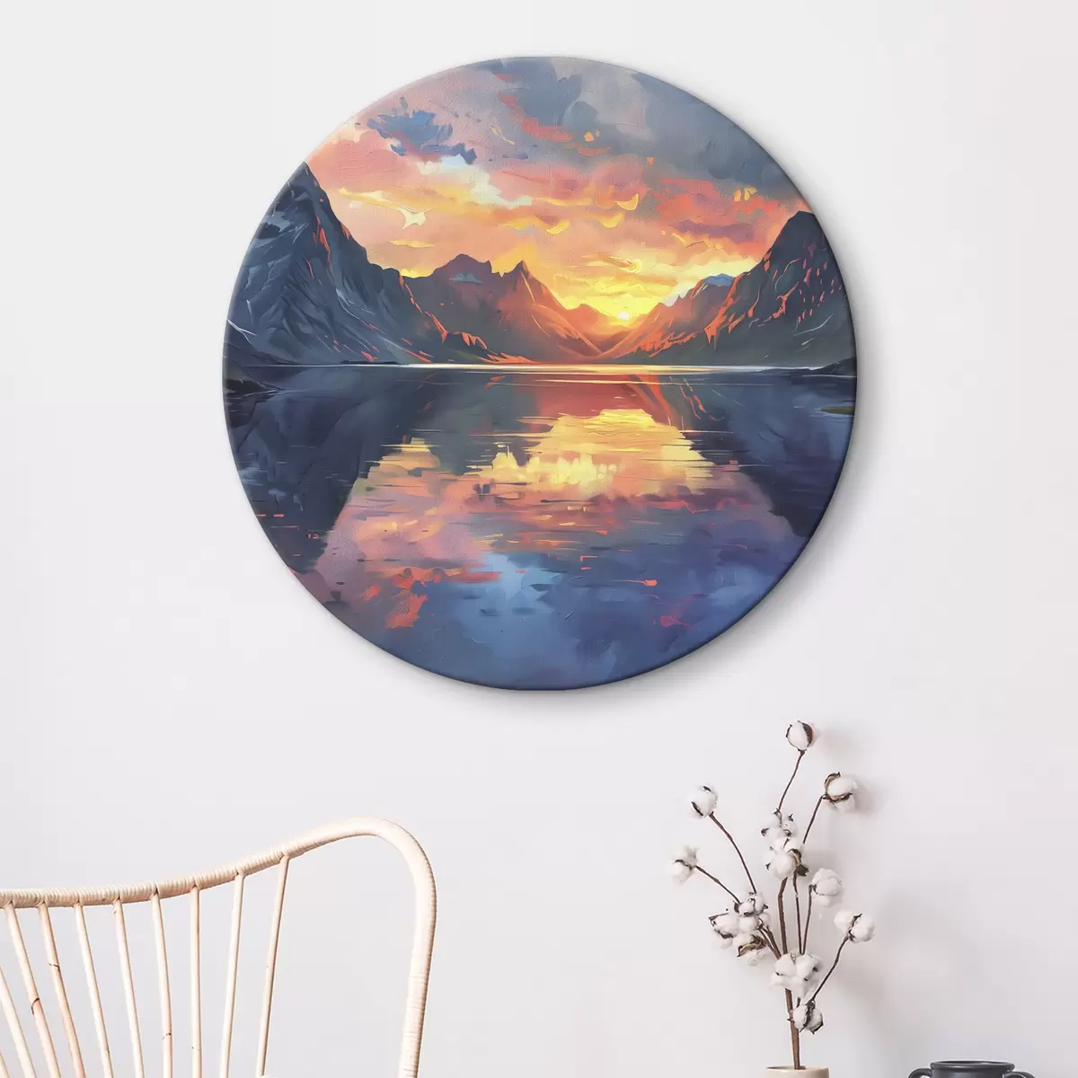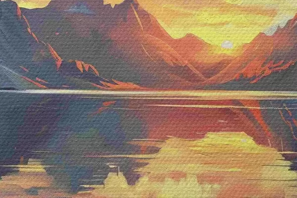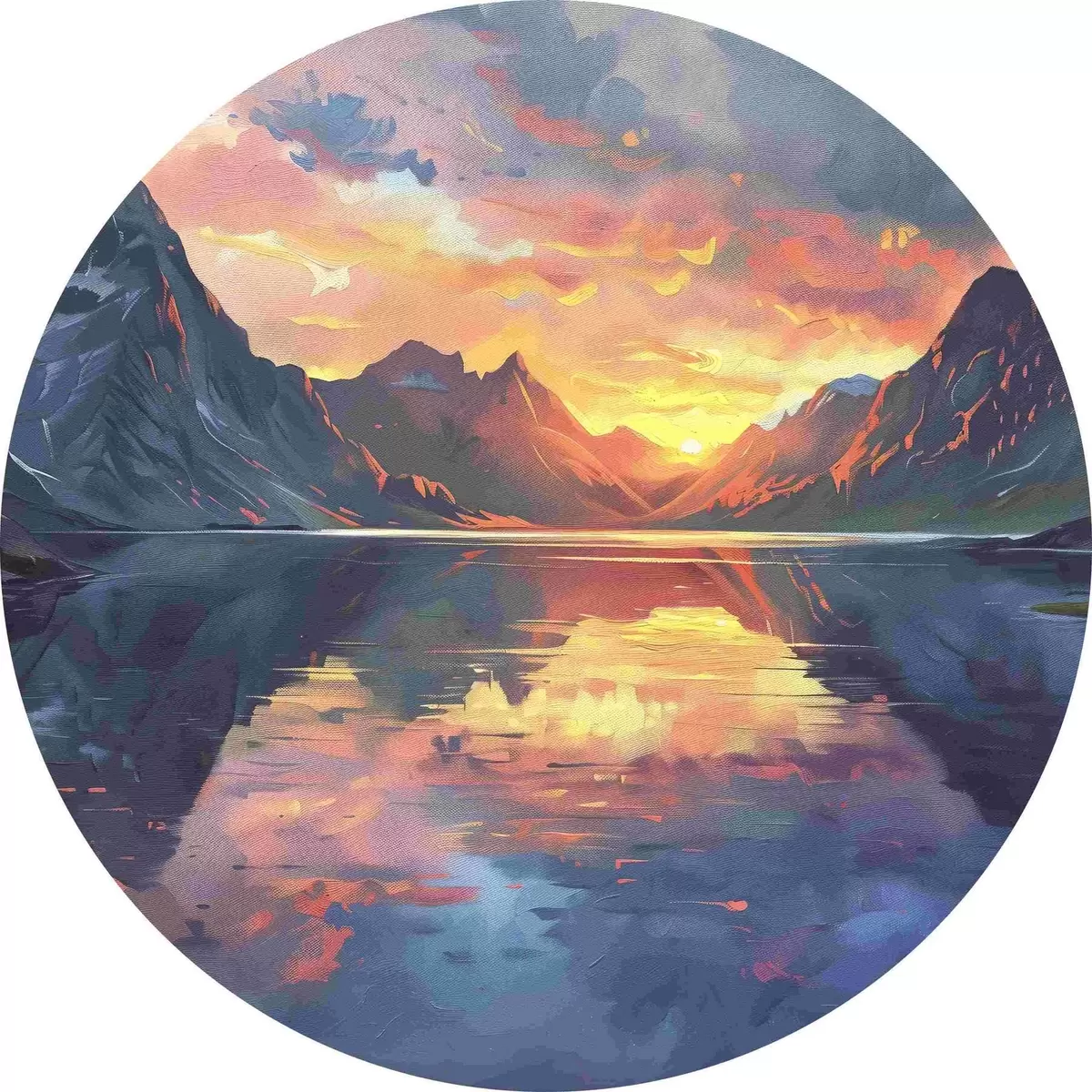 Attēls Saulriets kalnos, upe, dabas ainavas, akrila krāsas Nr r40306