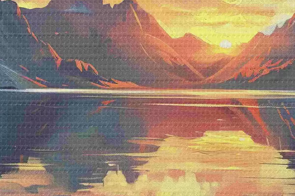 Attēls Saulriets kalnos, upe, dabas ainavas, akrila krāsas Nr r40306