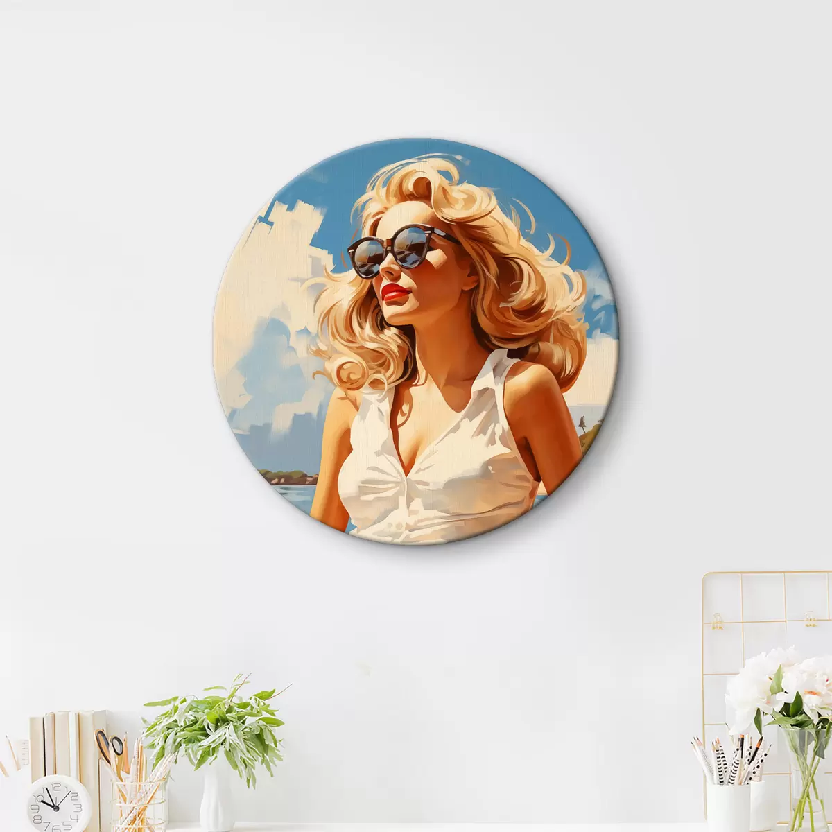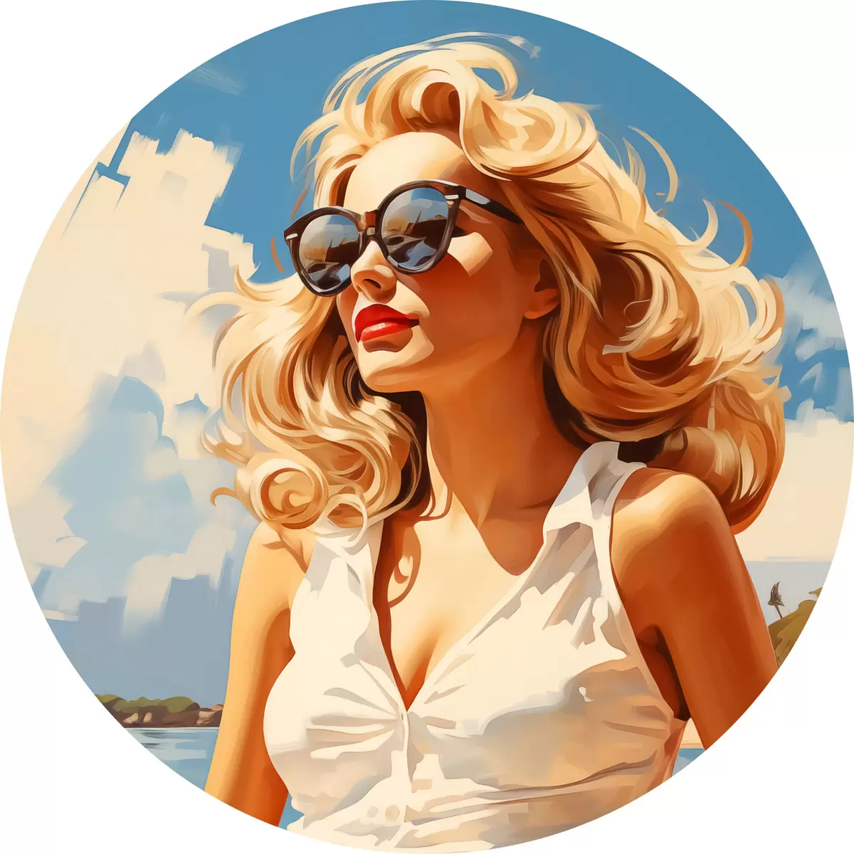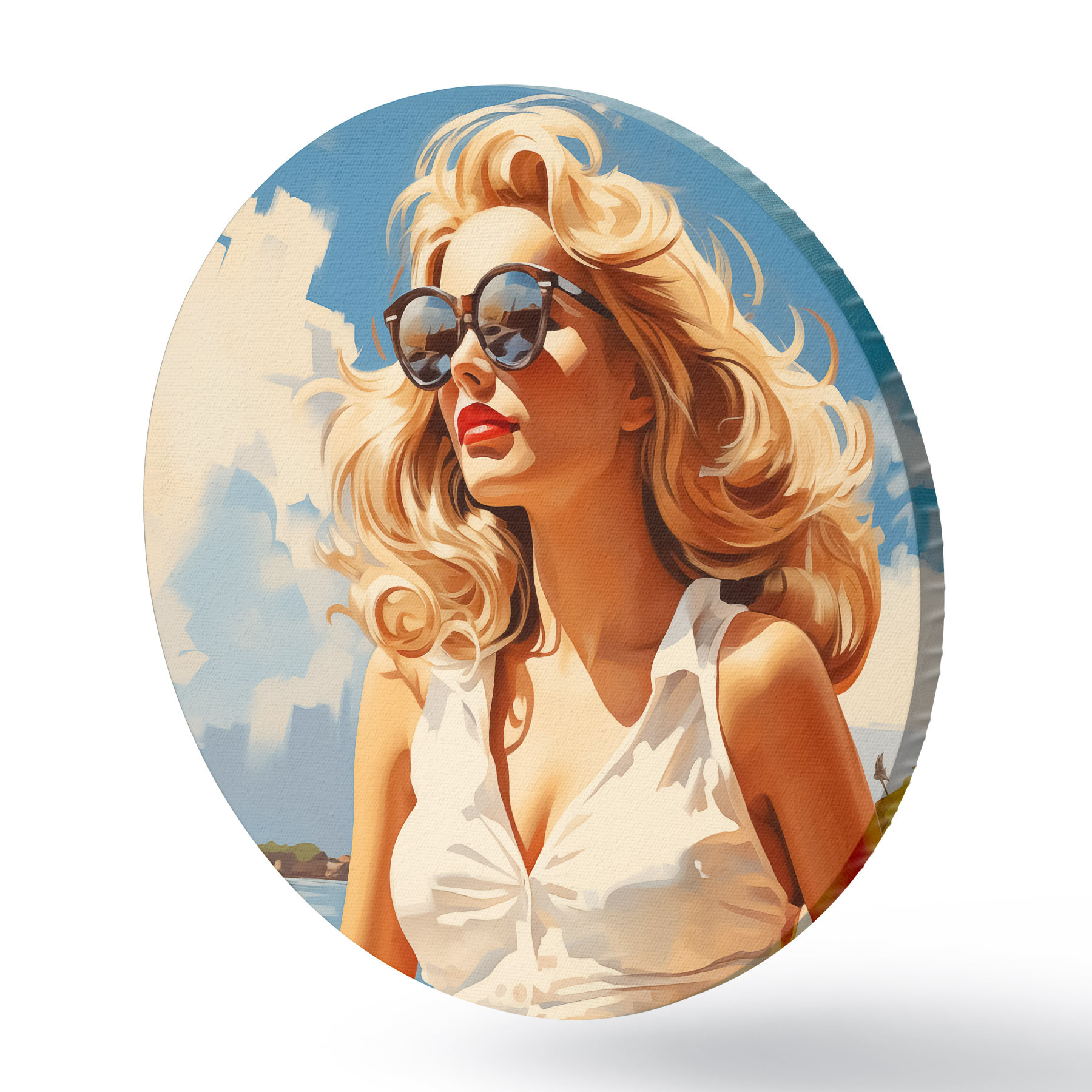 Apaļas gleznas Blondīne uz jūras fona ilustrācija r40321