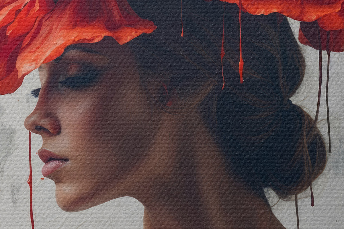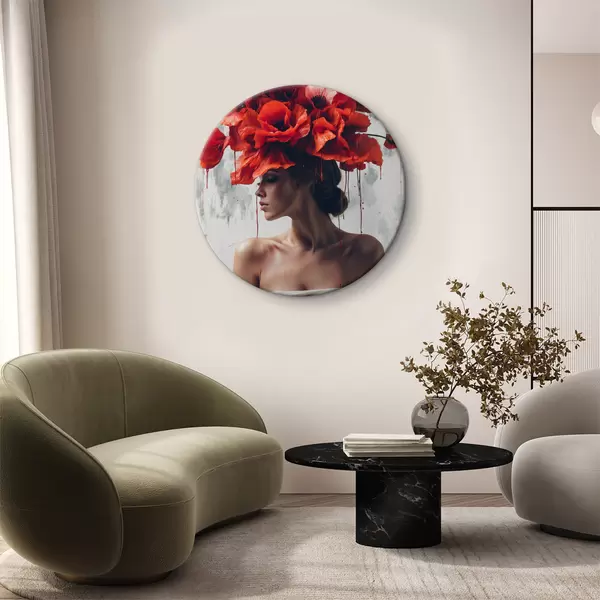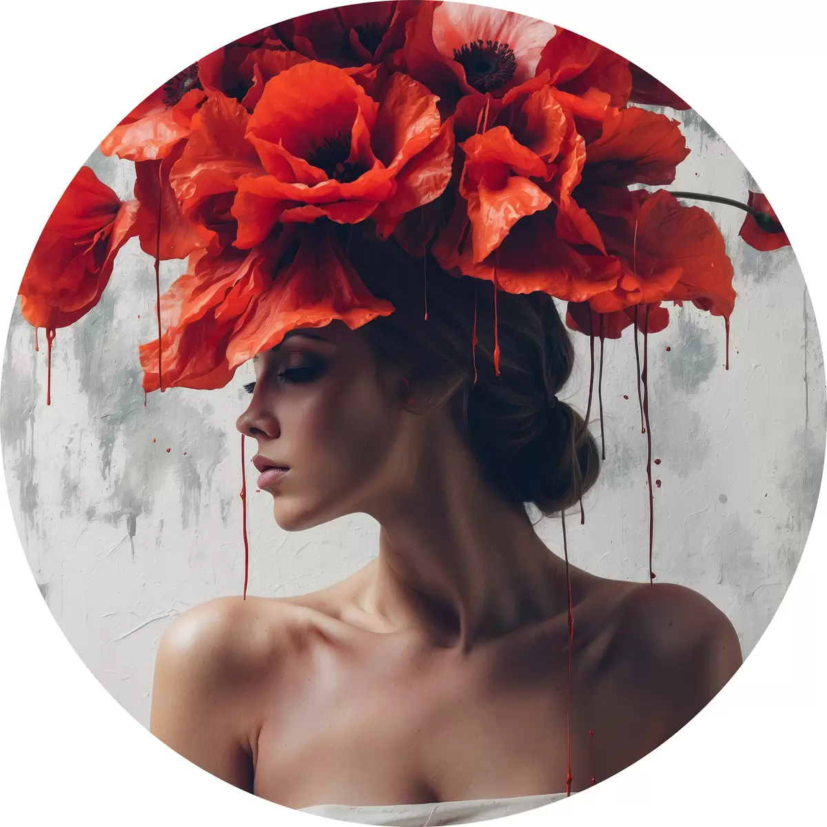 Apaļas gleznas Meitene ar magonēm galvā r40338