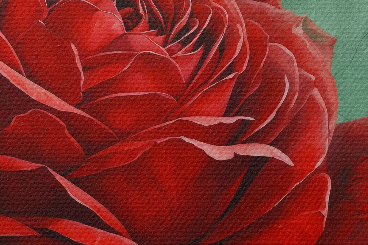 Smalkais diegu pinums uz šī audekla atgādina profesionālu mākslinieku audeklu virsmu.
