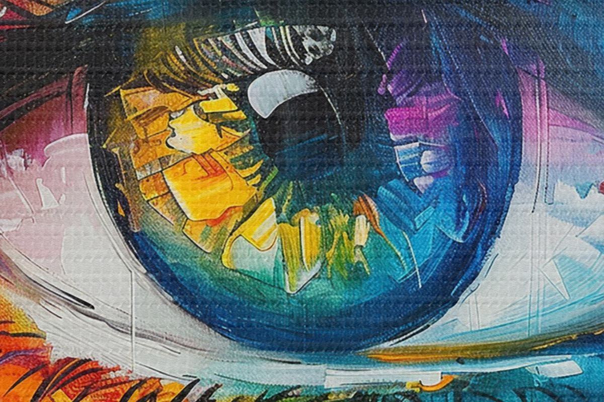 Smalkais diegu pinums uz šī audekla atgādina profesionālu mākslinieku audeklu virsmu.