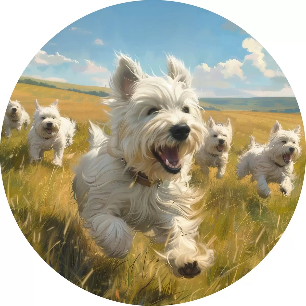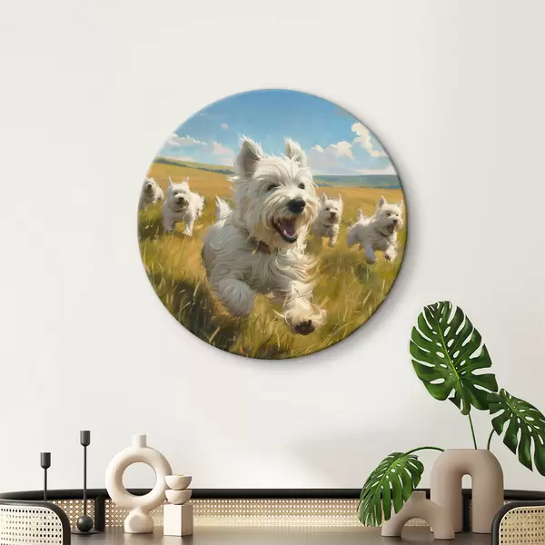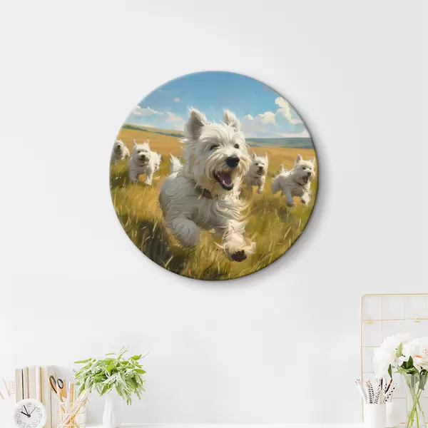 Apaļas gleznas Mazie kucēni laukā r40358