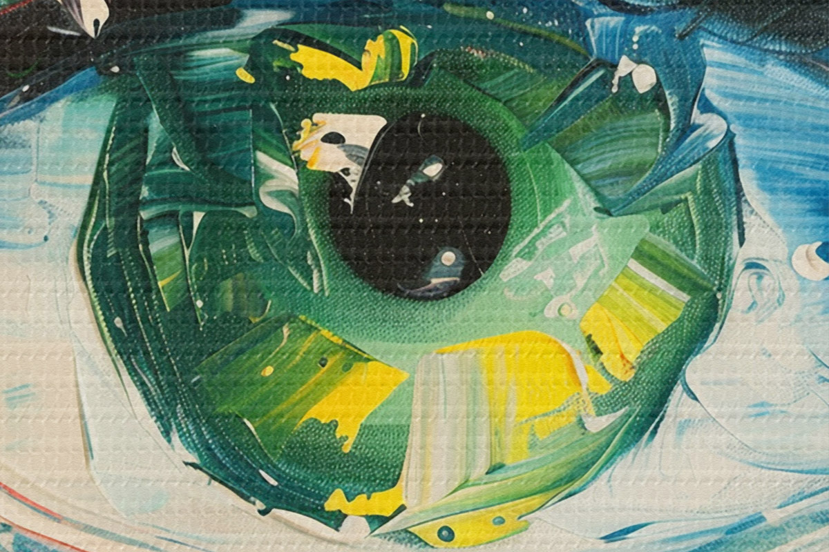 Smalkais diegu pinums uz šī audekla atgādina profesionālu mākslinieku audeklu virsmu.