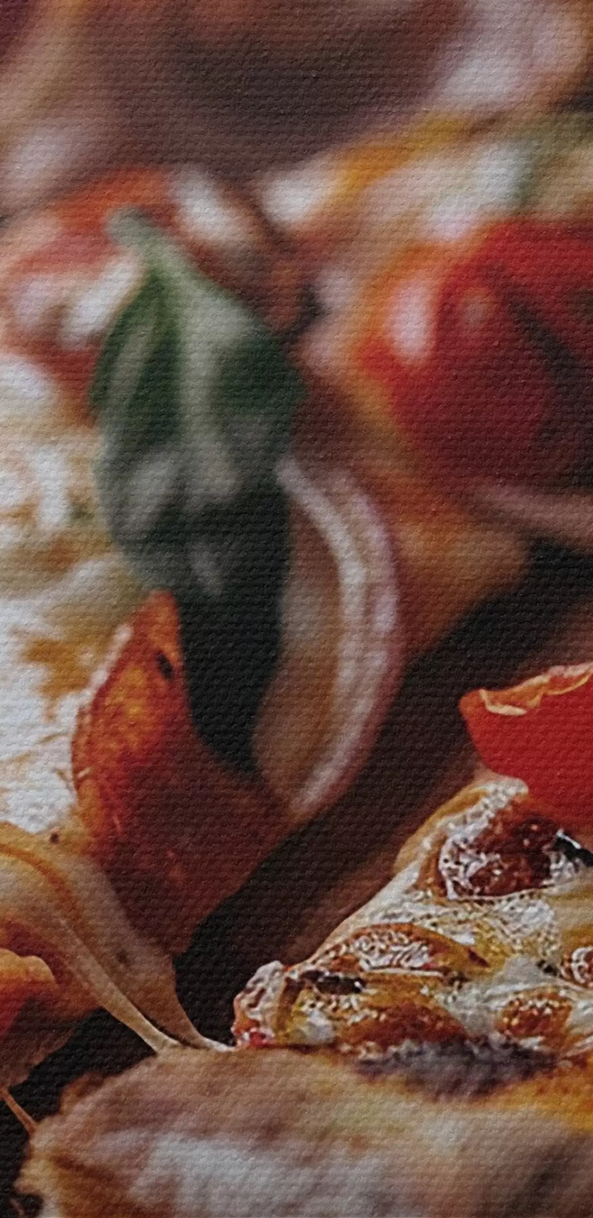 Smalkais diegu pinums uz šī audekla atgādina profesionālu mākslinieku audeklu virsmu.