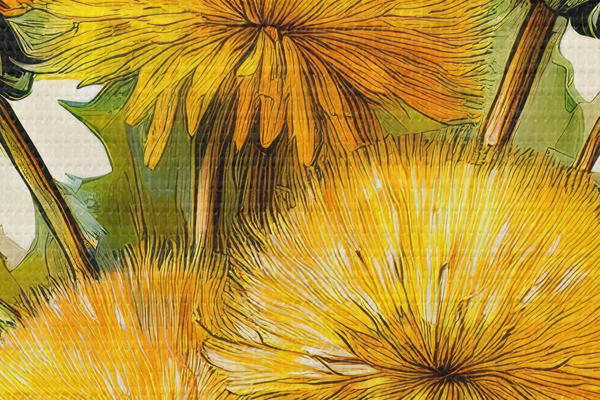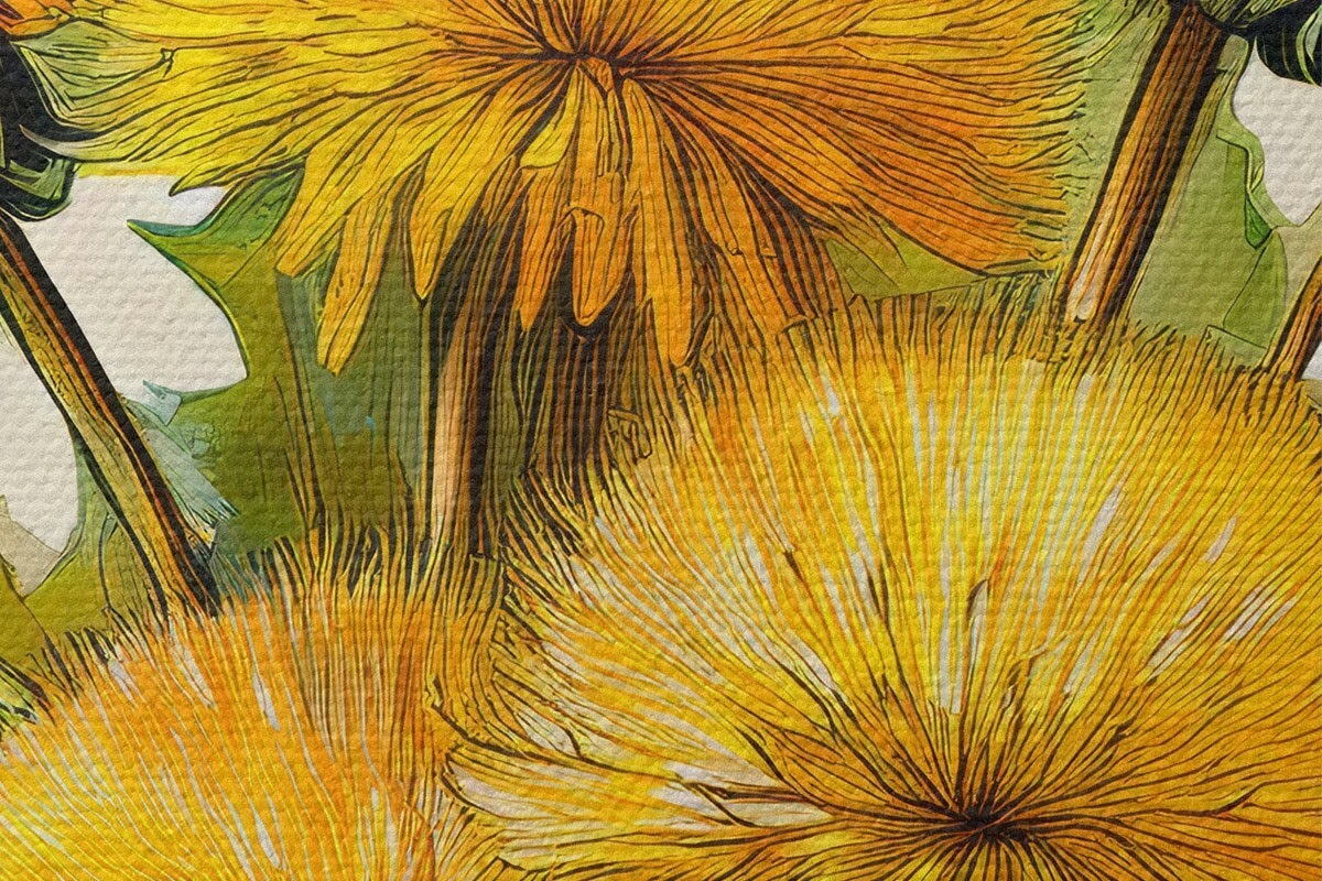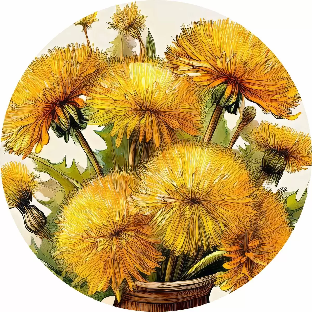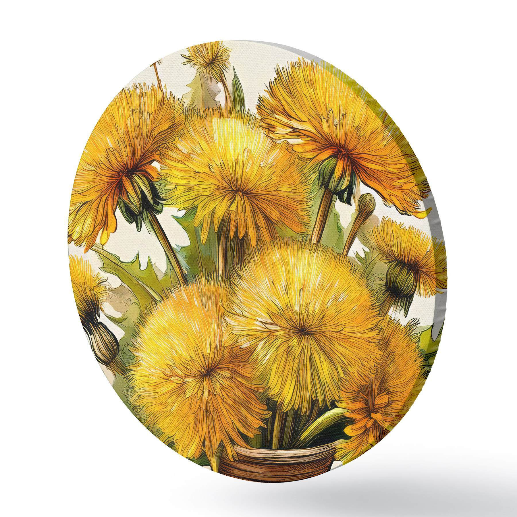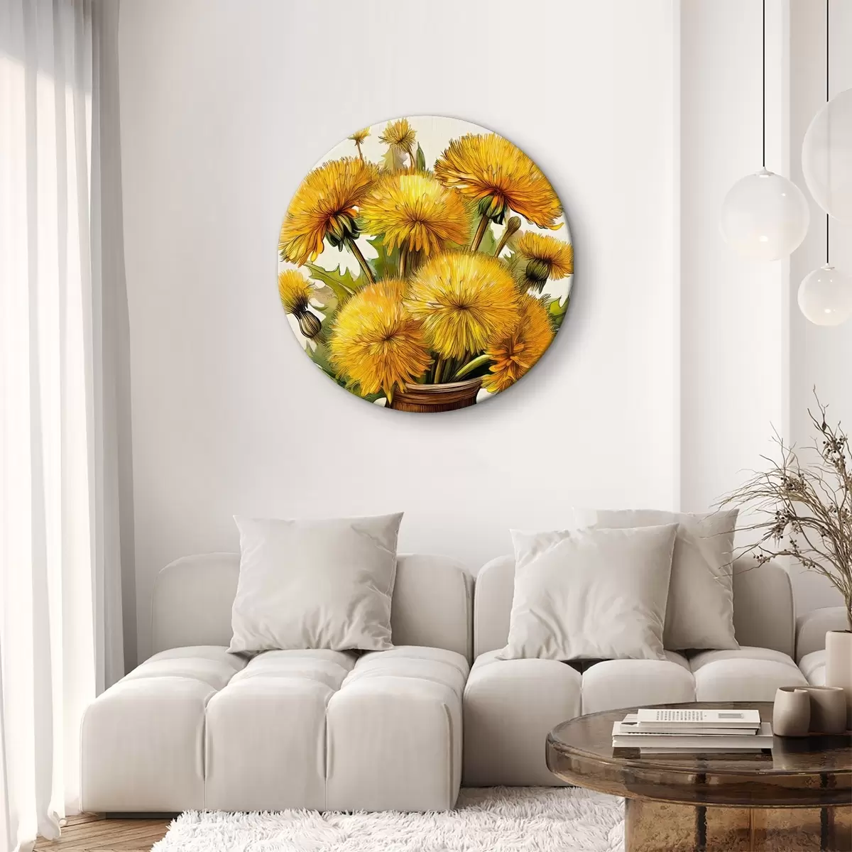 Apaļas gleznas pienenes, pieneņu pušķis vāzē, dzeltenās pienenes r40418
