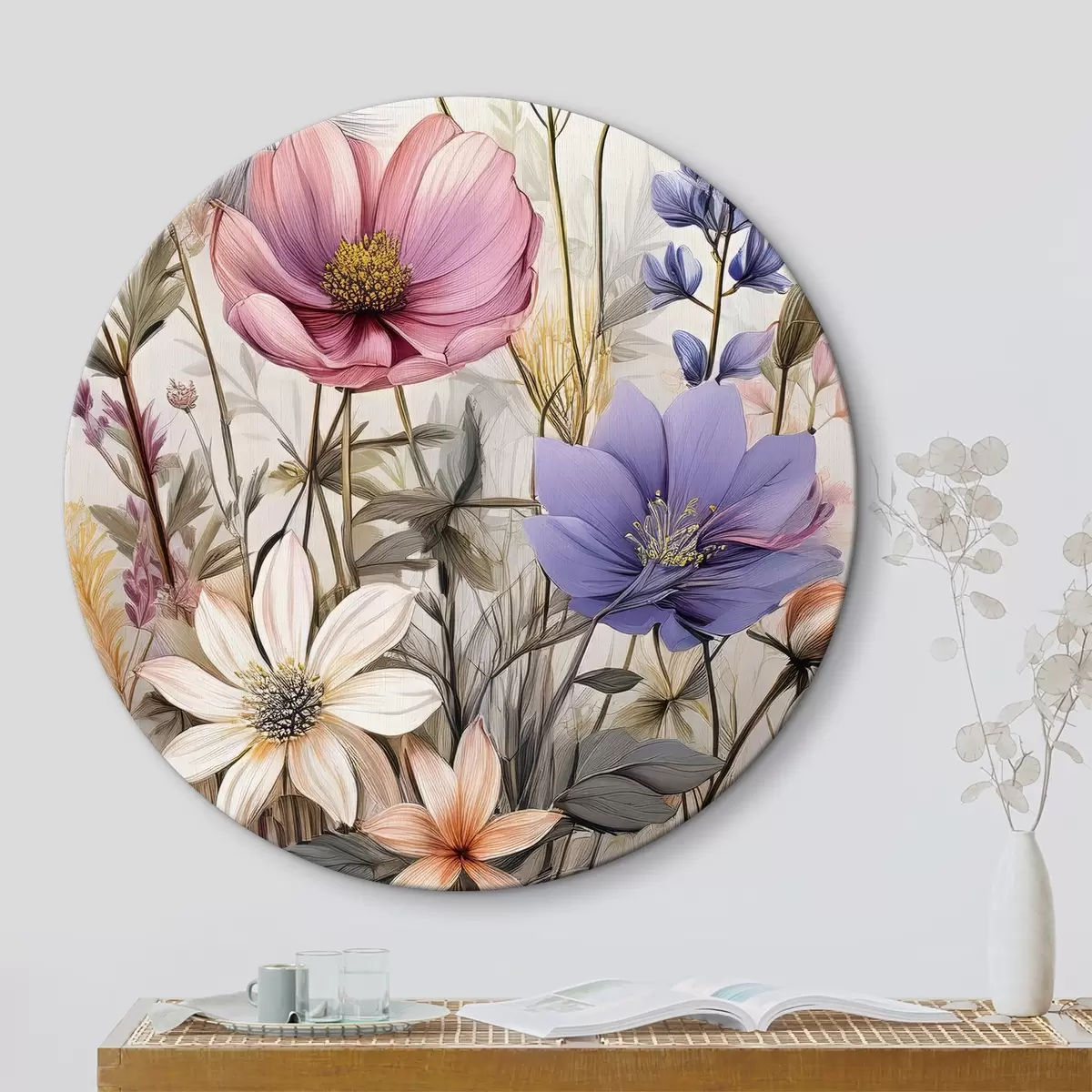 Apaļas gleznas savvaļas ziedi, ziedu kompozīcija r40423