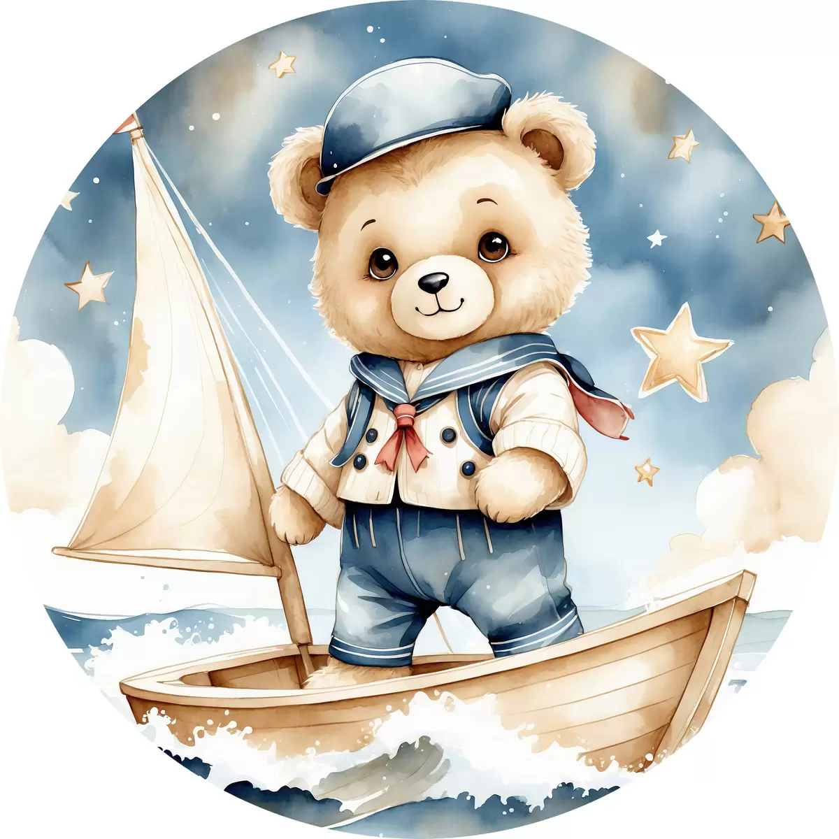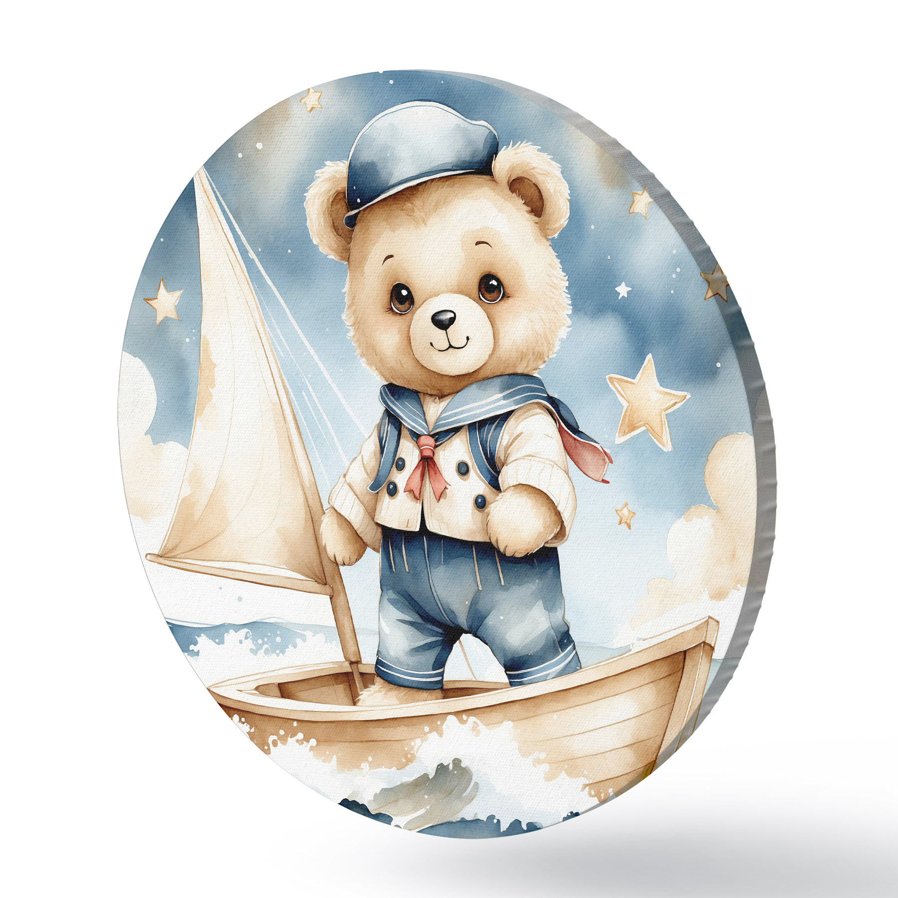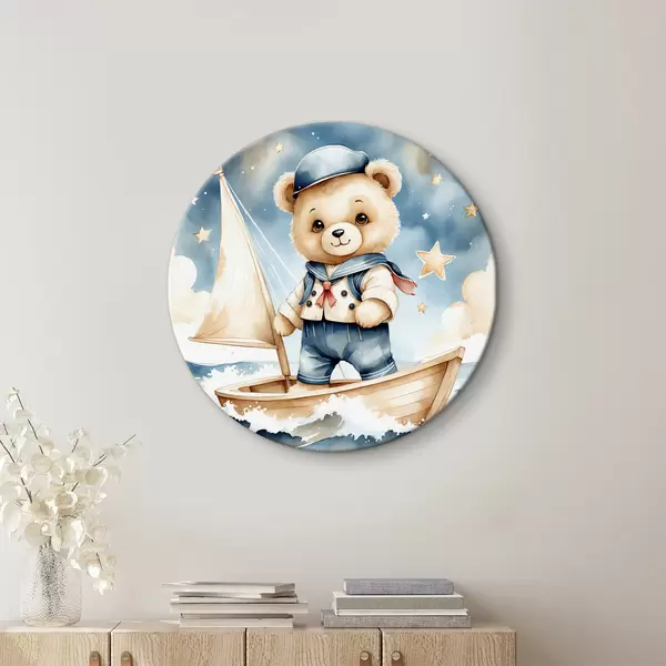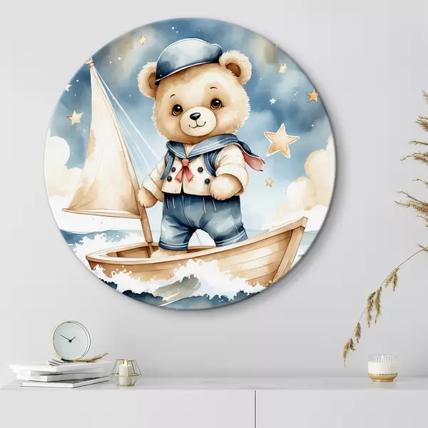 Apaļas gleznas Jauks akvareļu lācis laivā ar zvaigznēm debesīs r40429