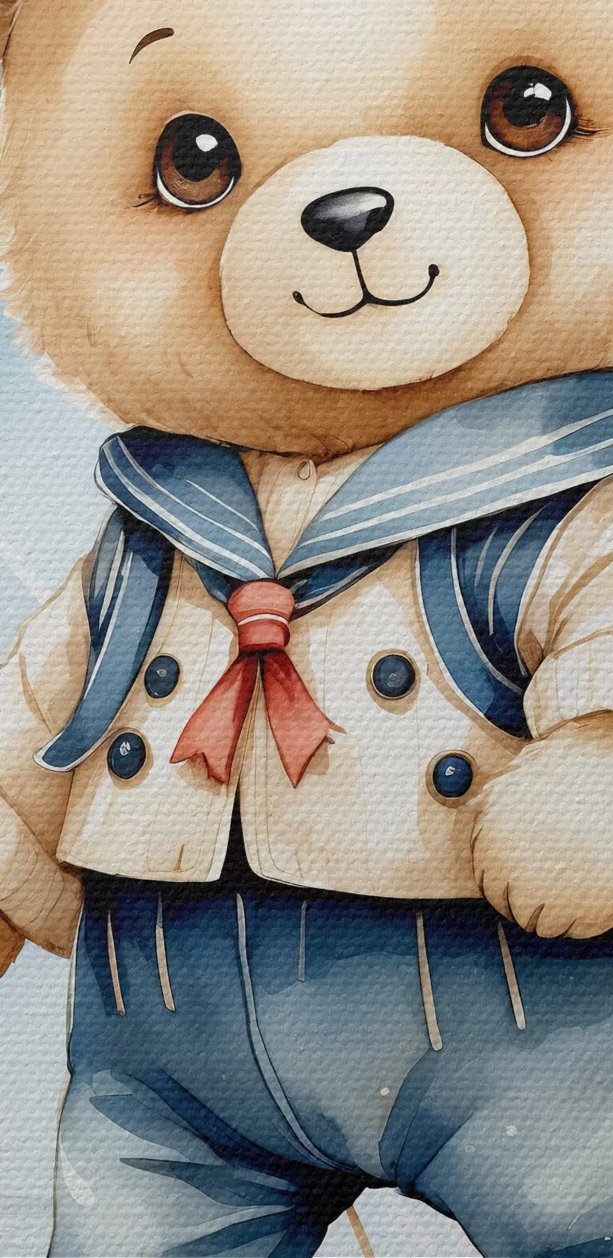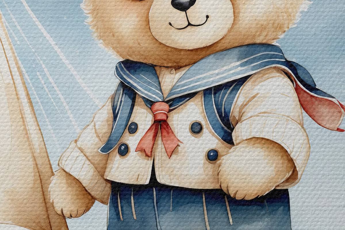 Attēls Jauks akvareļu lācis laivā ar zvaigznēm debesīs Nr r40429