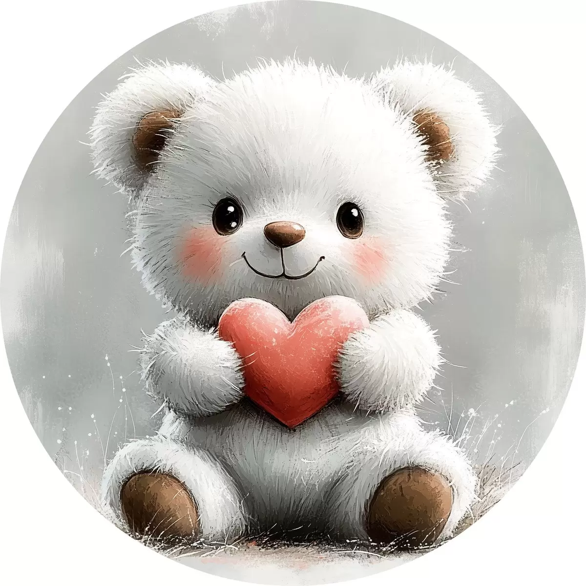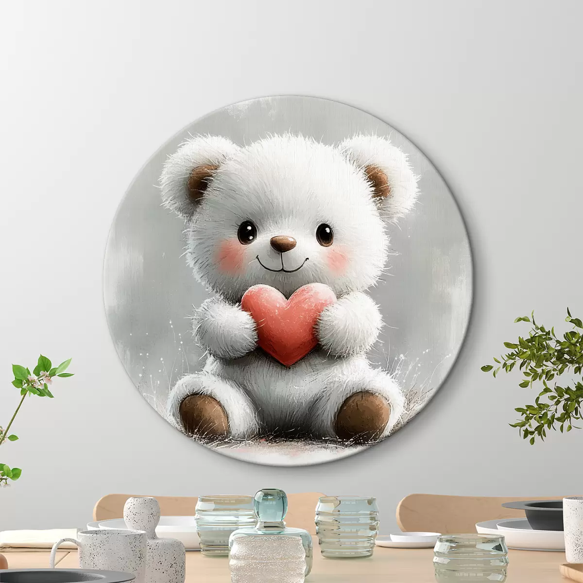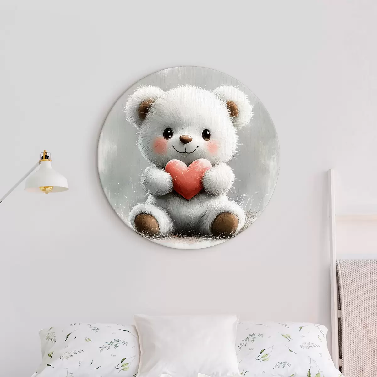 Apaļas gleznas Mīlīgs lācis ar sirdi ķepās r40432
