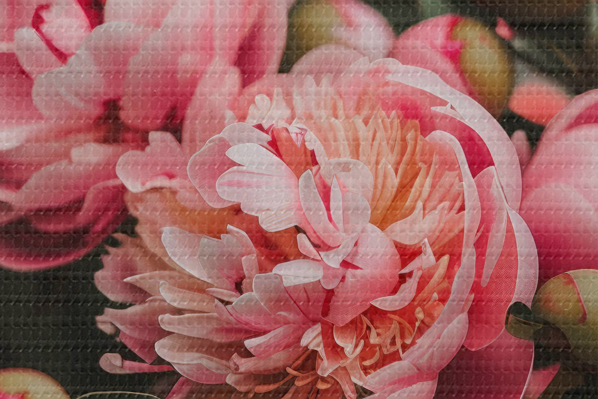 Smalkais diegu pinums uz šī audekla atgādina profesionālu mākslinieku audeklu virsmu.