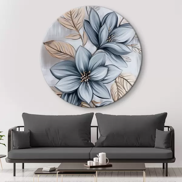 Apaļas gleznas Zili ziedi uz pelēka fona r40453