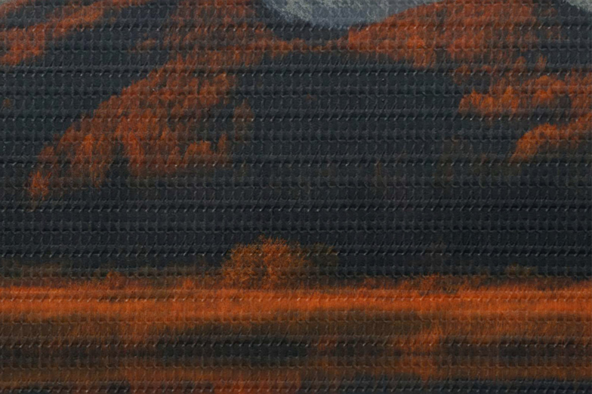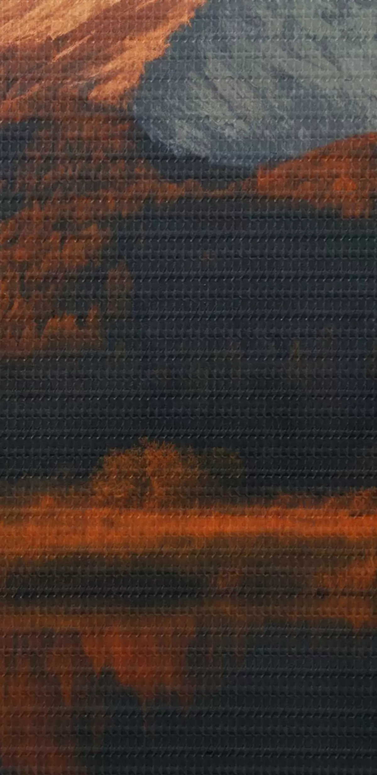 Smalkais diegu pinums uz šī audekla atgādina profesionālu mākslinieku audeklu virsmu.