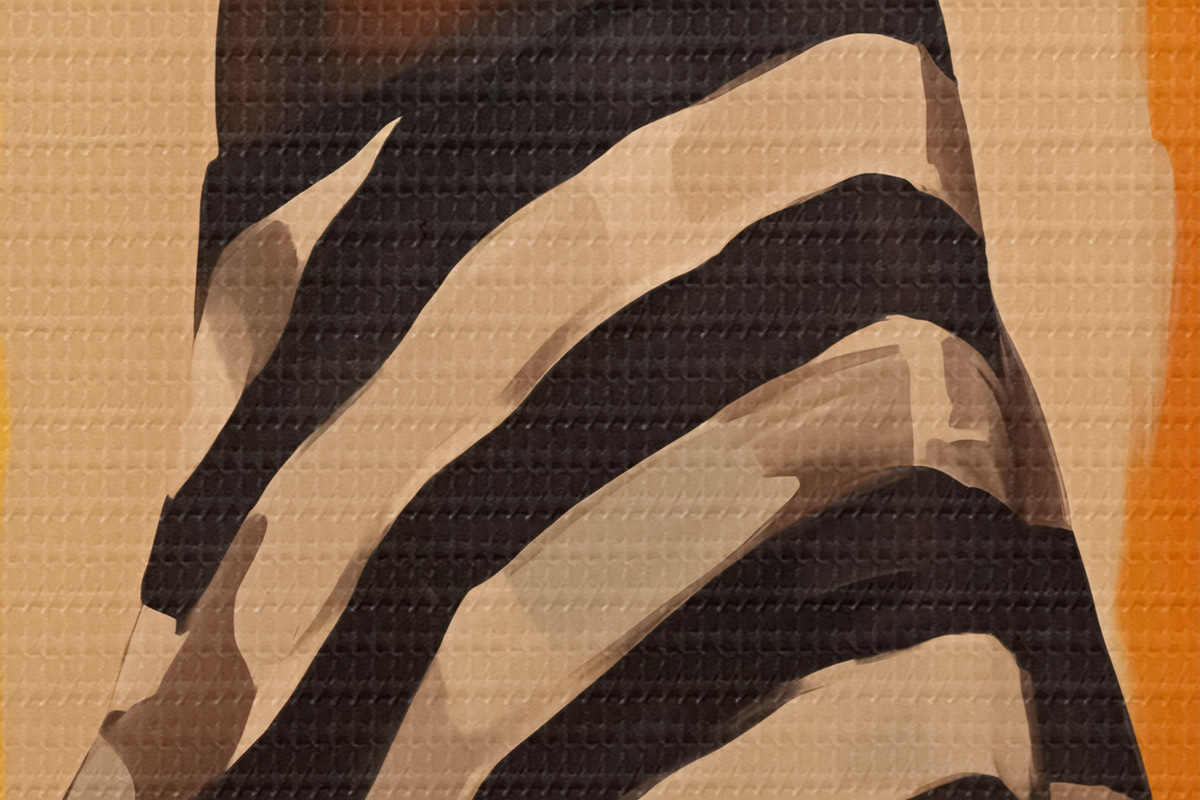Attēls Afroamerikāņu sievietes siluets svītrainā apmetnī uz fona ar vertikālām svītrām, melns, bēšs, dzeltens, sarkans, brūns Nr r40487