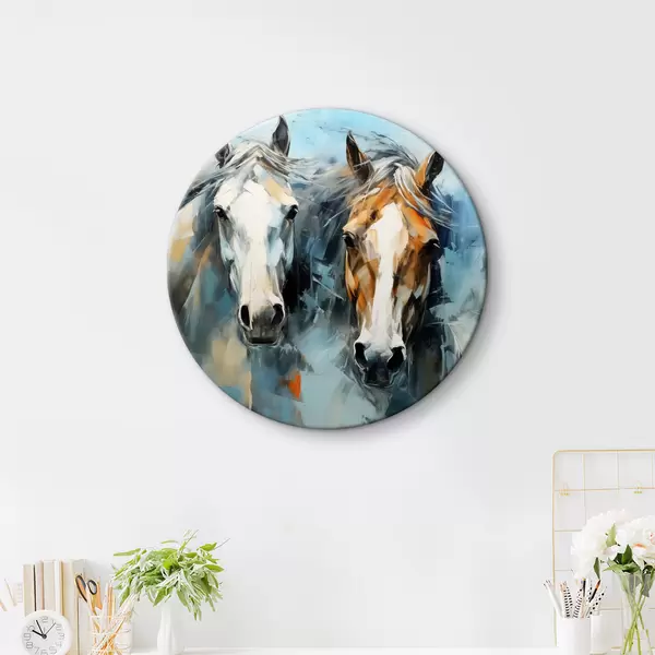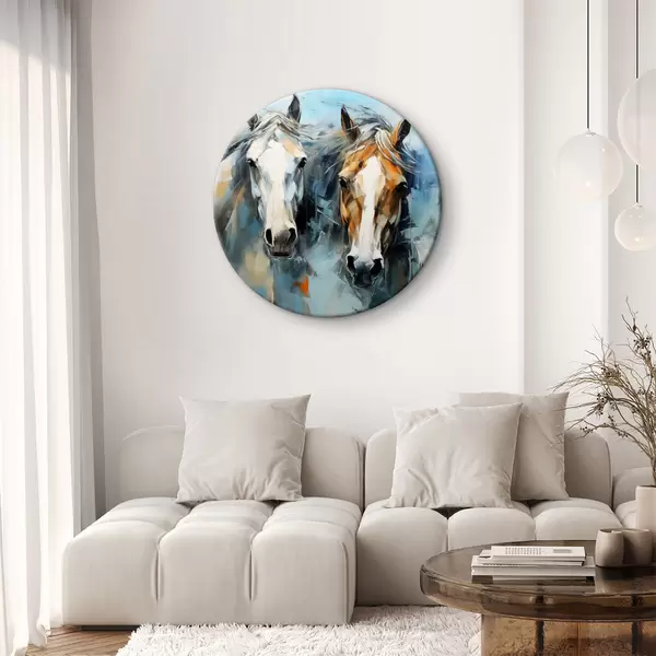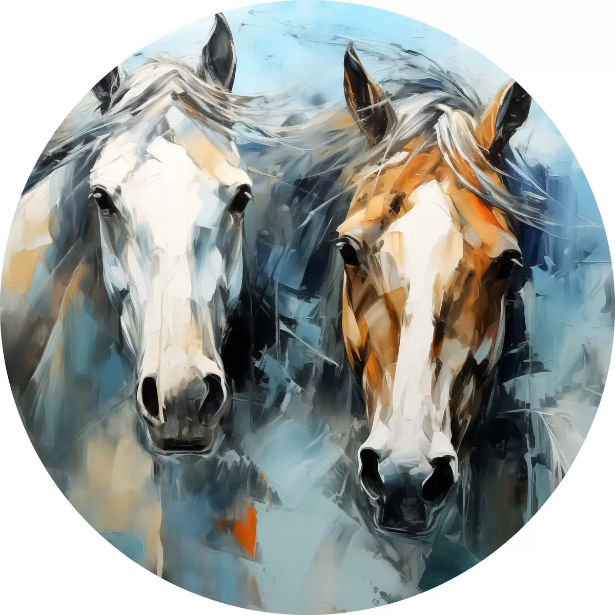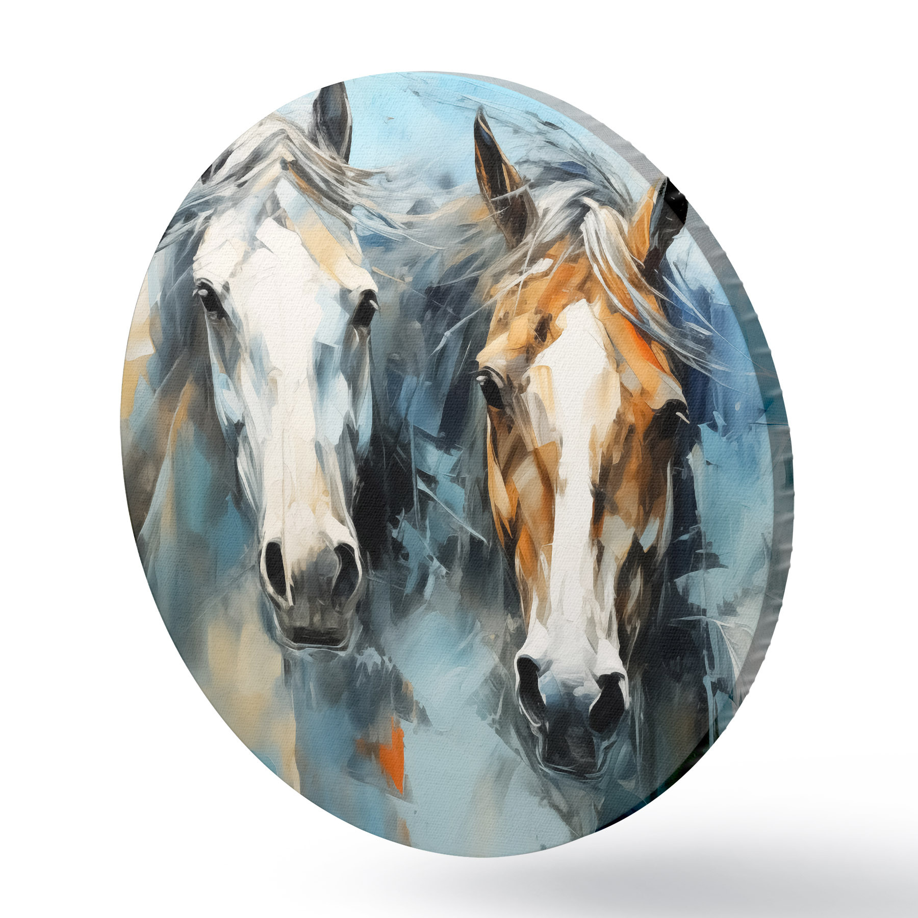Apaļas gleznas Zirgi abstraktā glezna, balta, zila, brūna krāsa r40493