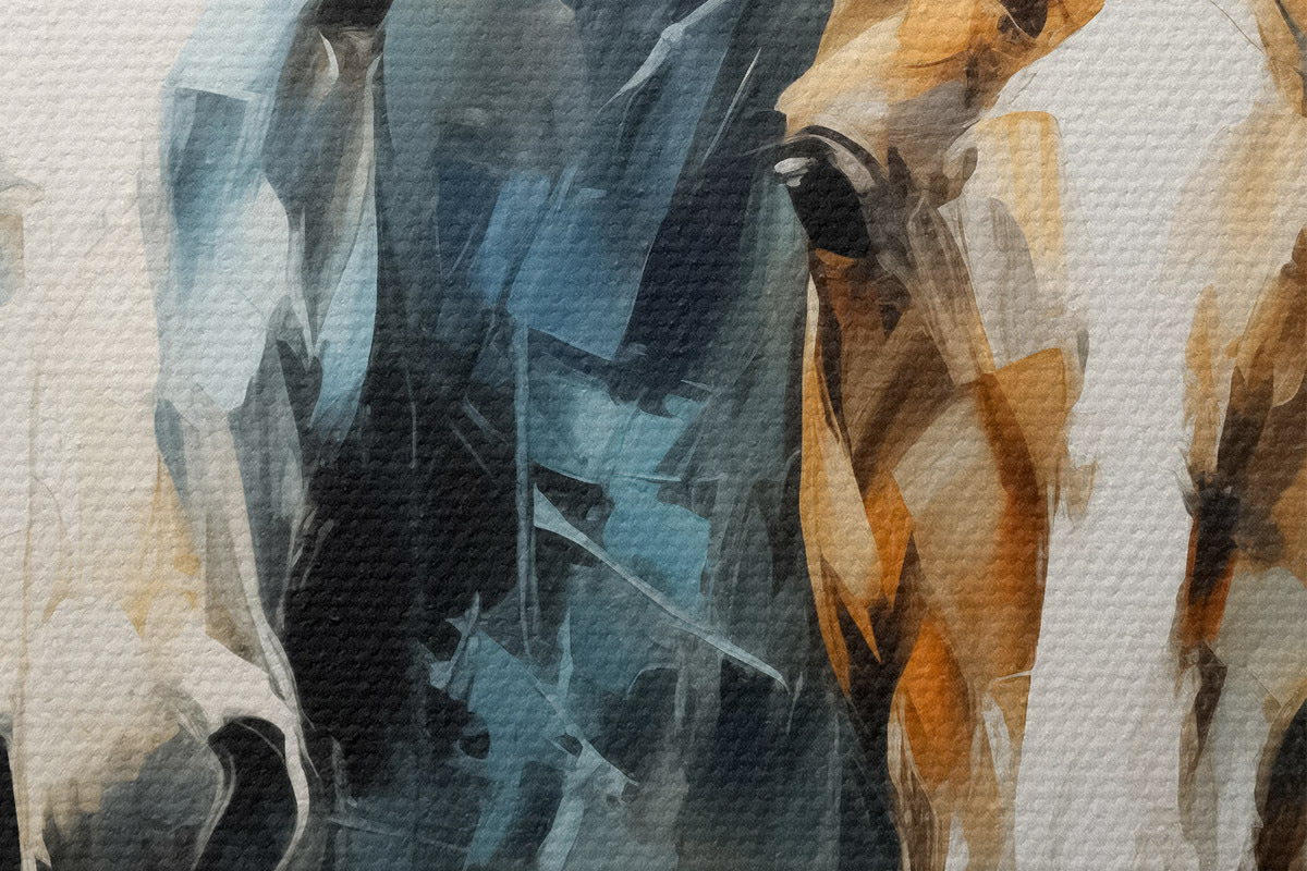 Attēls Zirgi abstraktā glezna, balta, zila, brūna krāsa Nr r40493