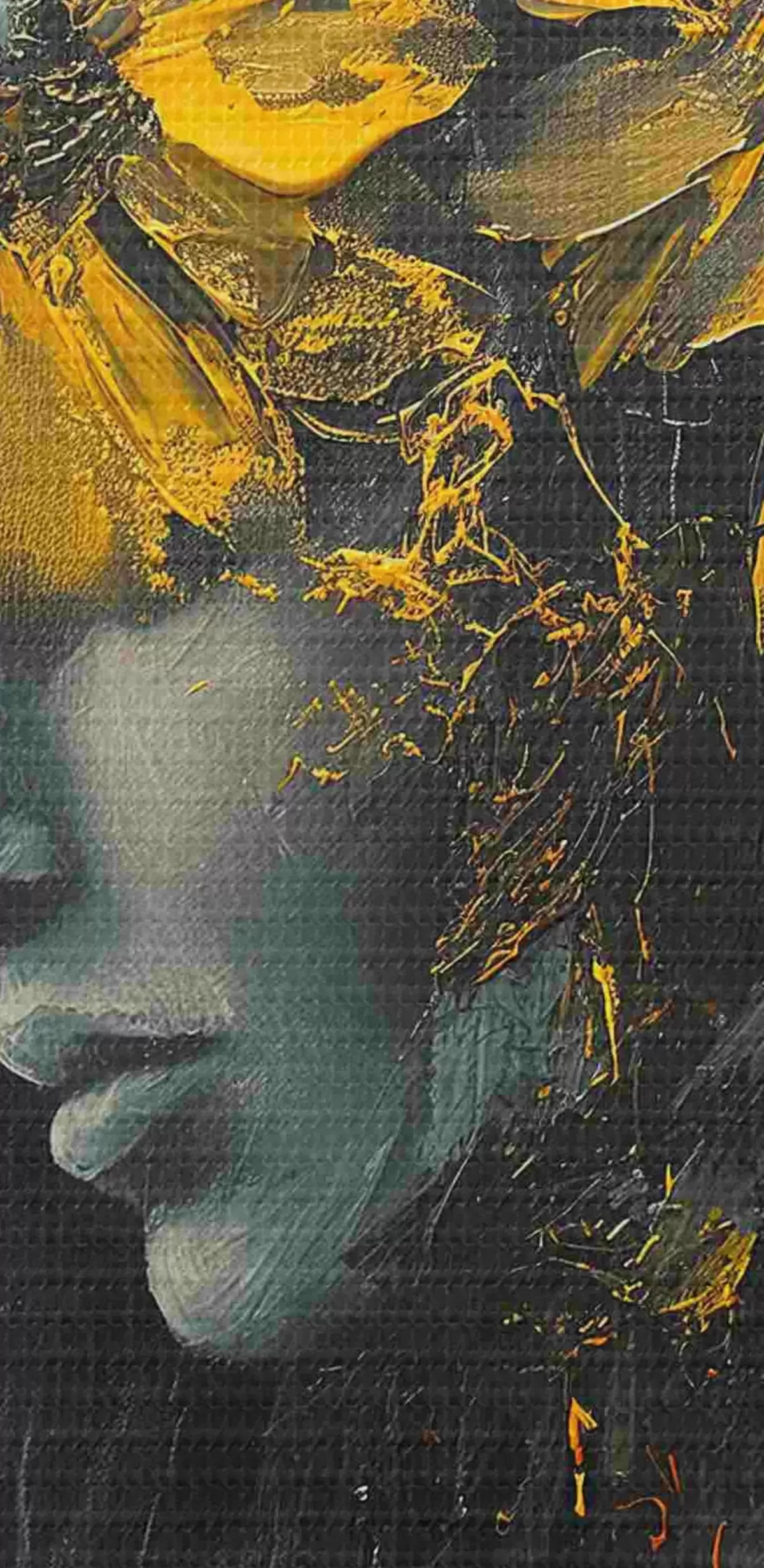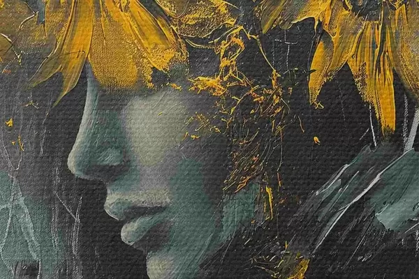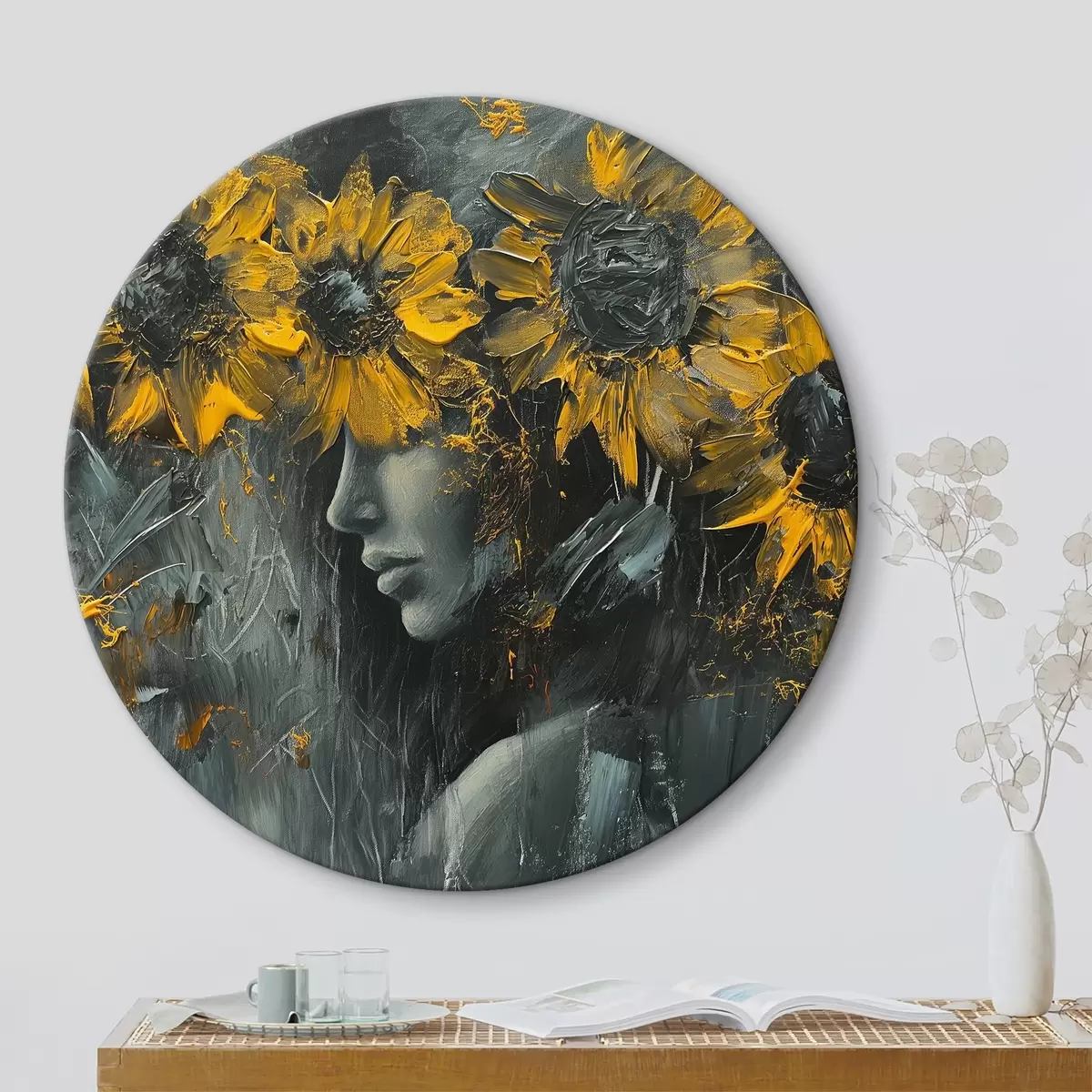 Attēls Abstraktas saulespuķes, kas sedz meitenes seju Nr r40501