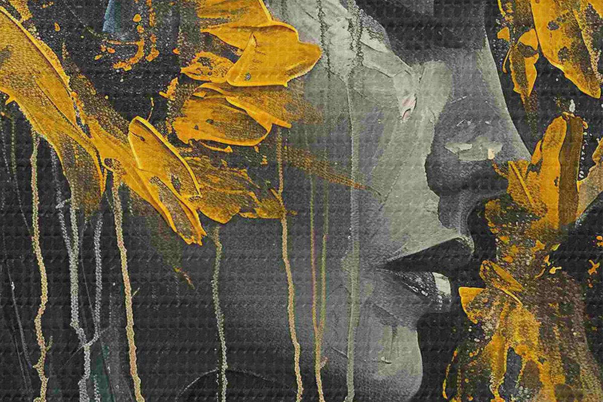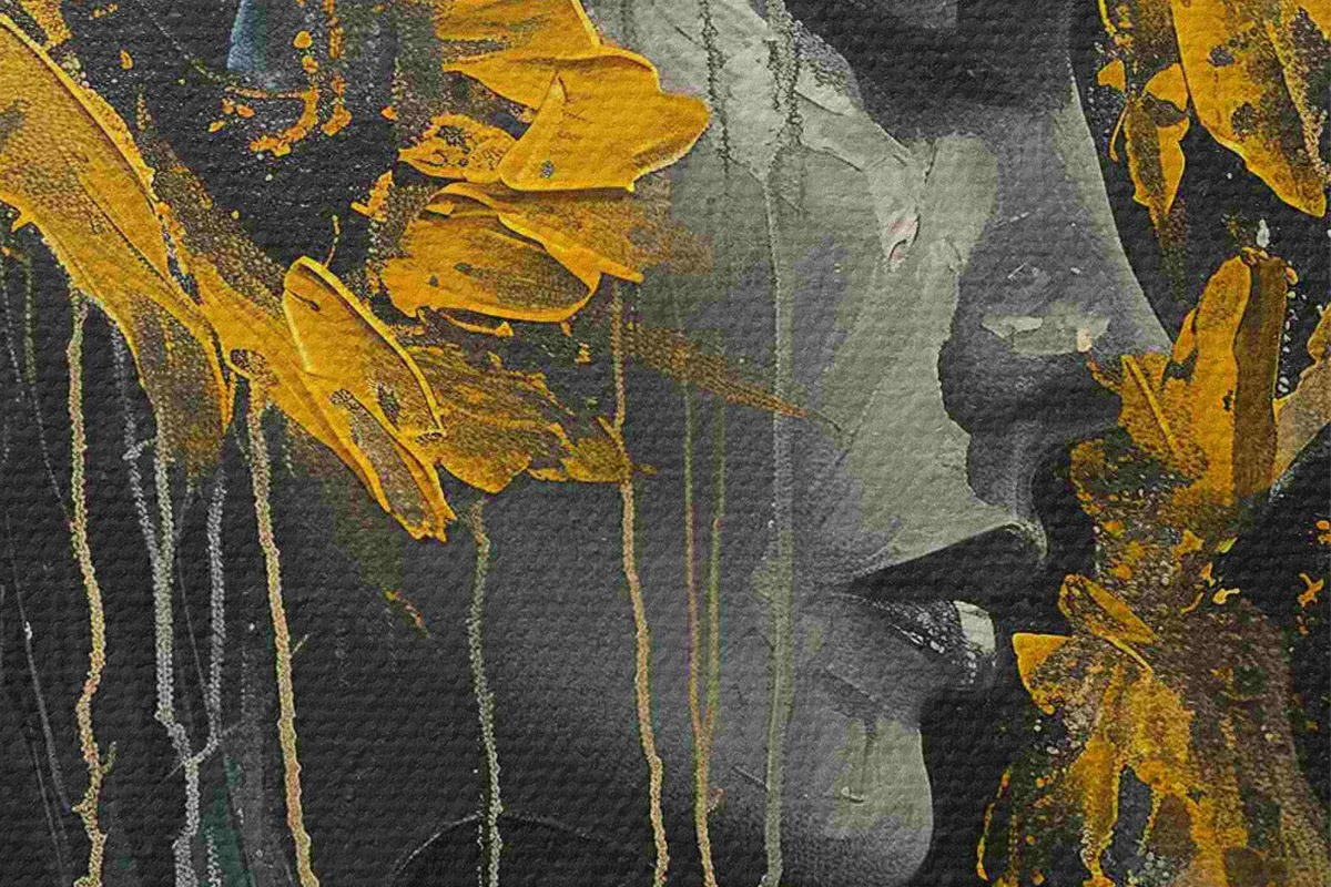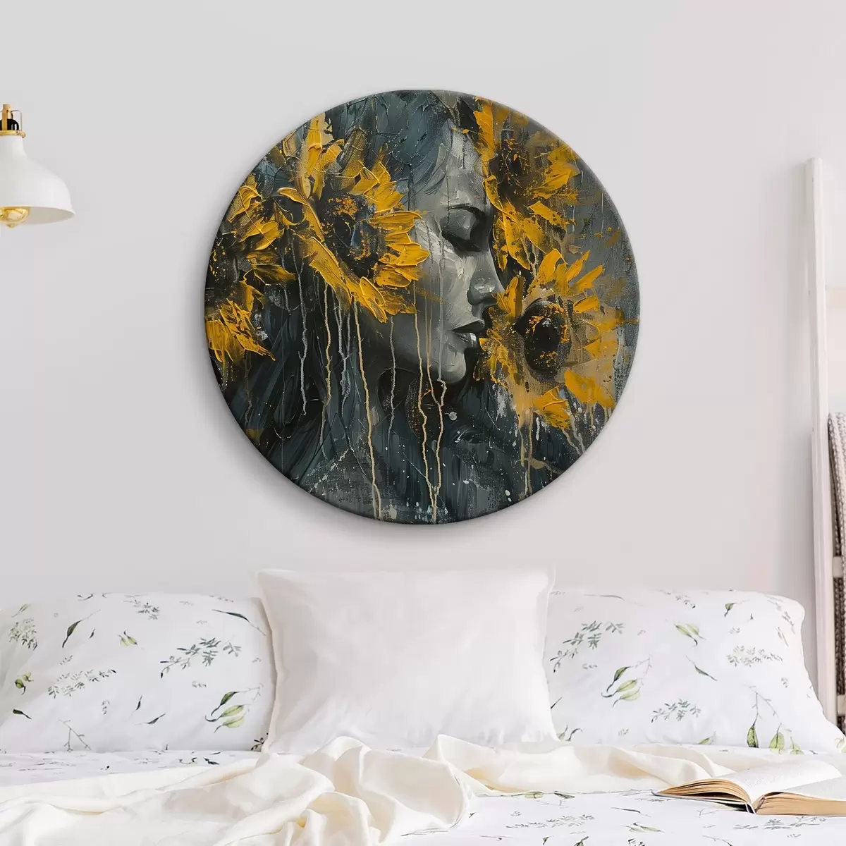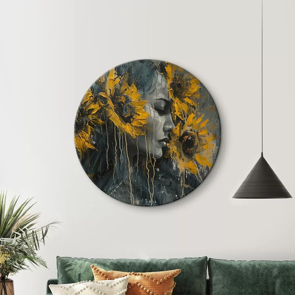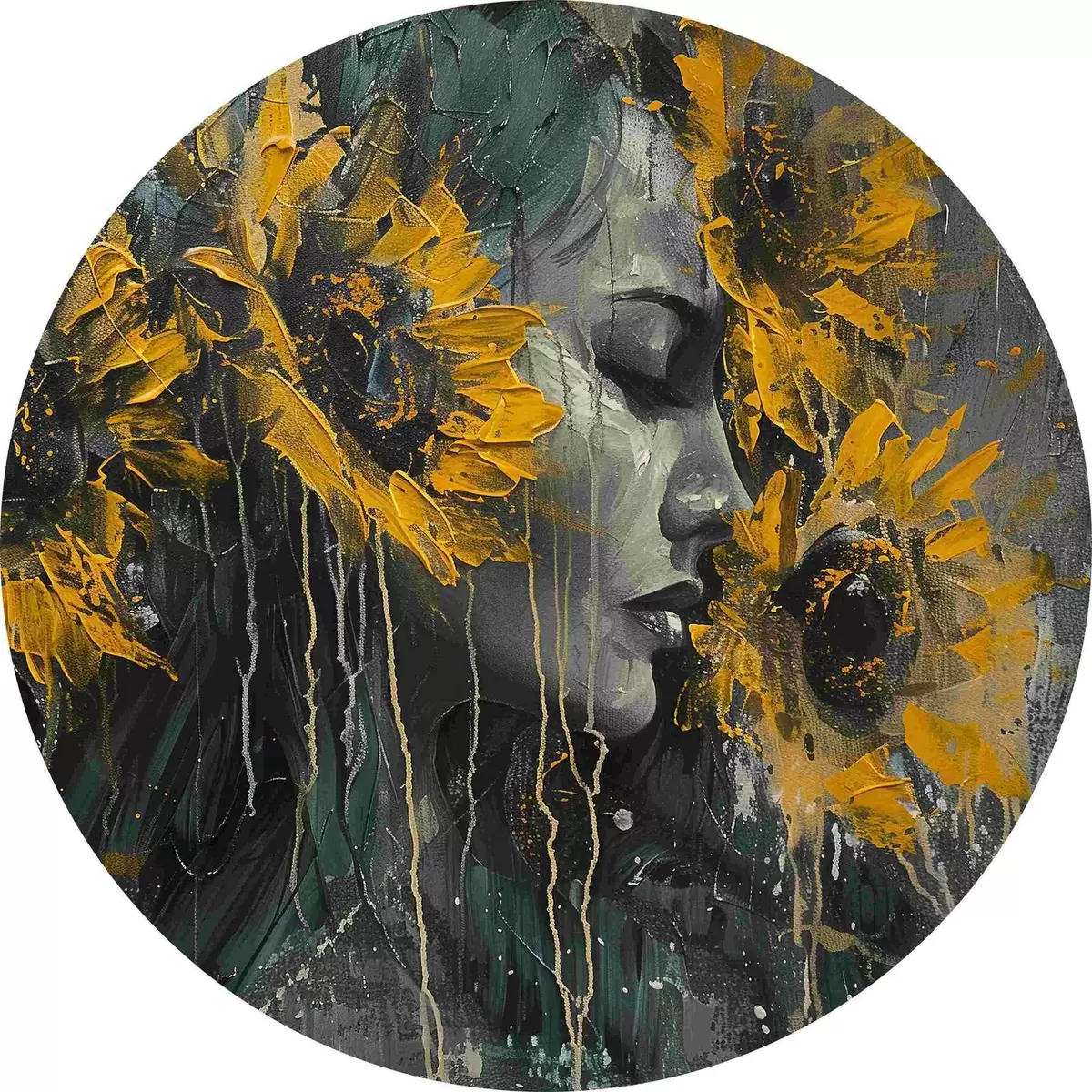 Attēls Meitenes seja ar izplūdušām saulespuķēm Nr r40502