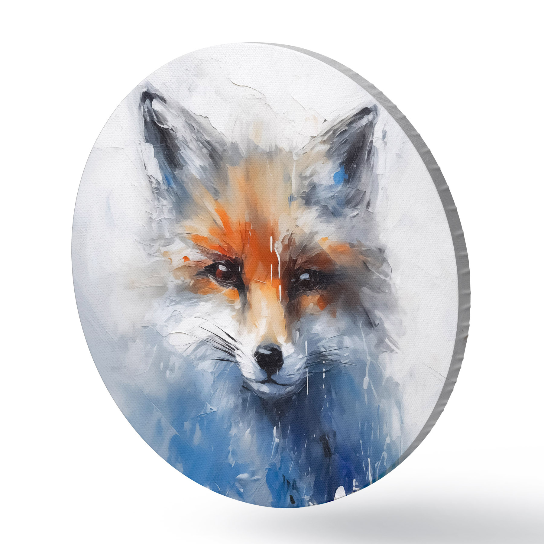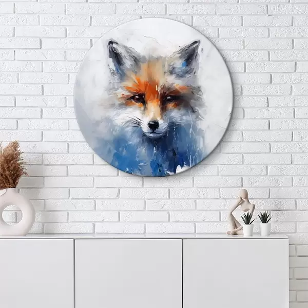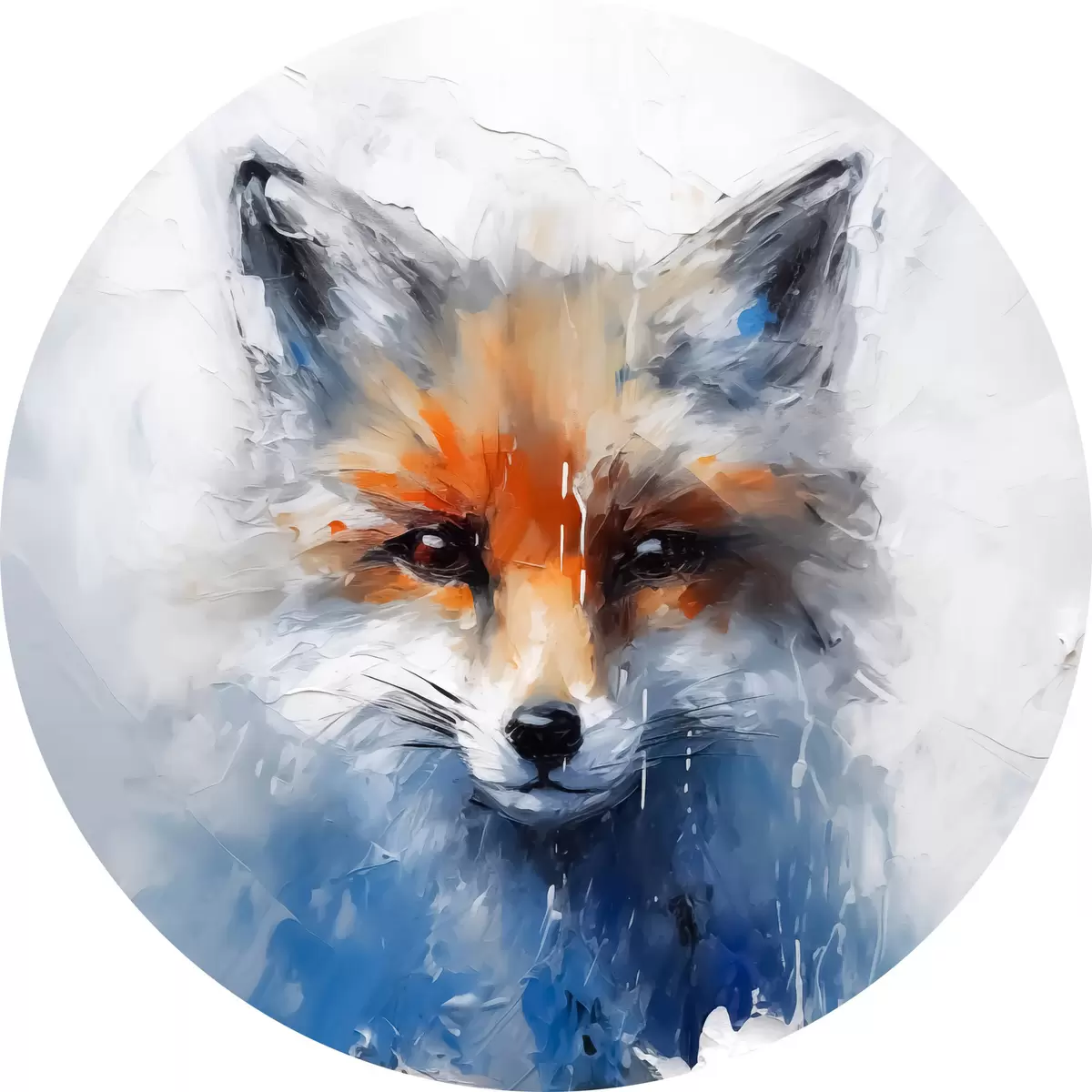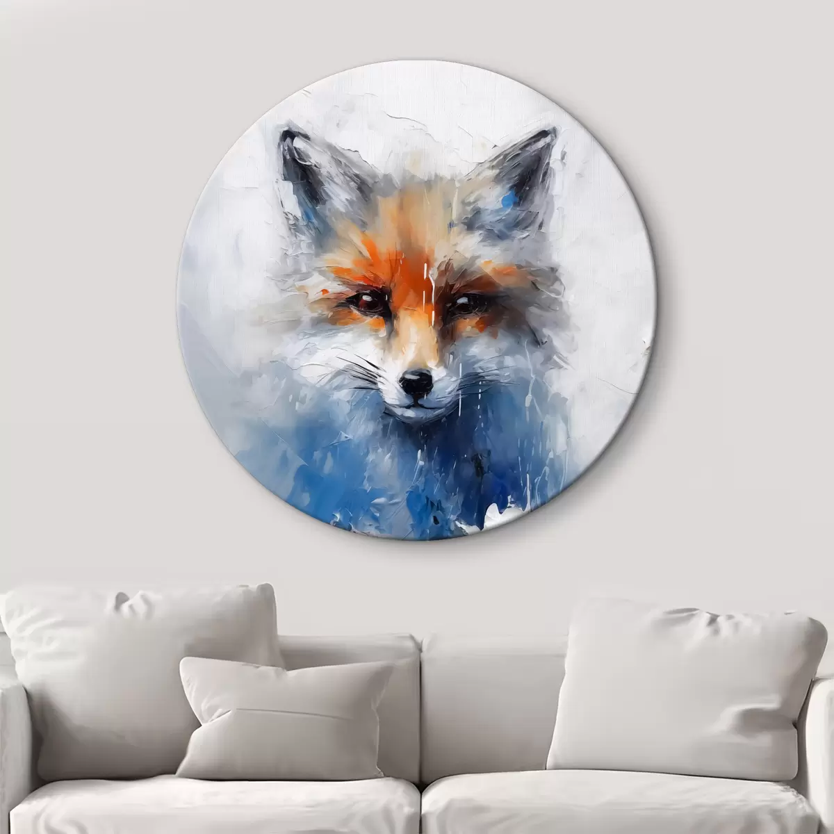 Apaļas gleznas Lapsa abstraktais portrets ar ziliem krāsas šļakatām r40524