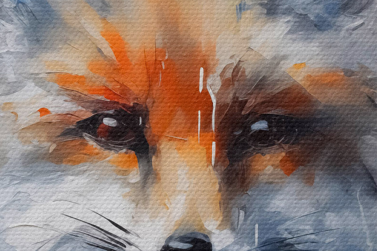 Attēls Lapsa abstraktais portrets ar ziliem krāsas šļakatām Nr r40524