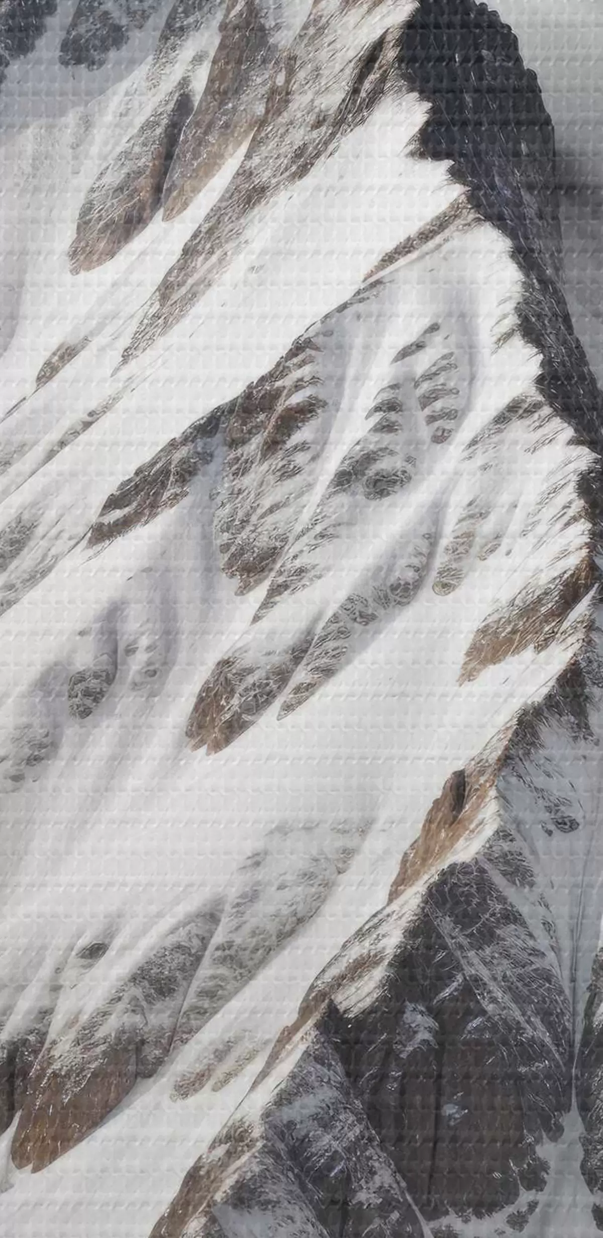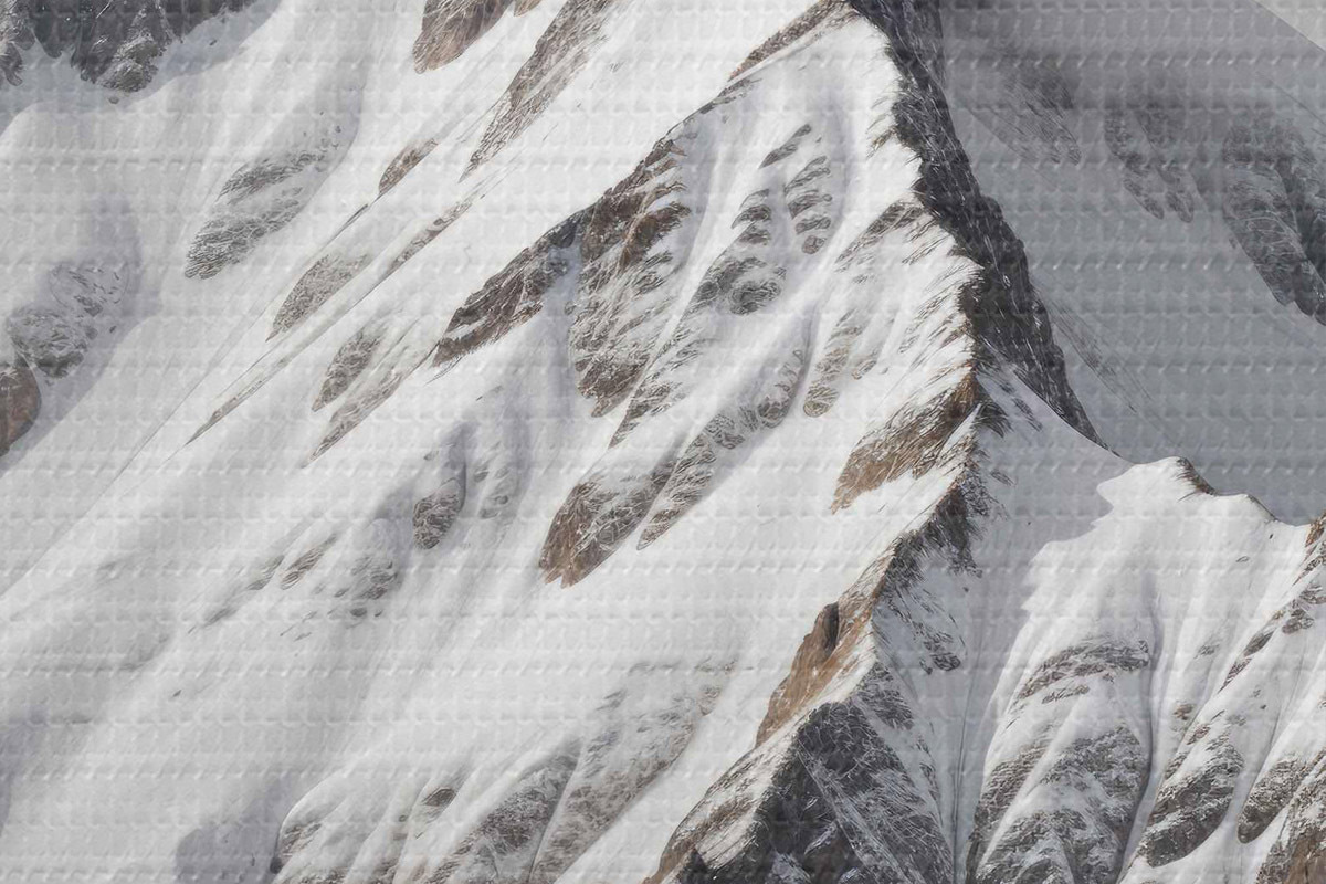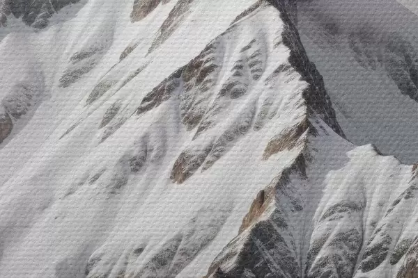 Attēls Sniegotas melnbaltas kalnu virsotnes mākoņainā, dramatiskā ainavā Nr r40553