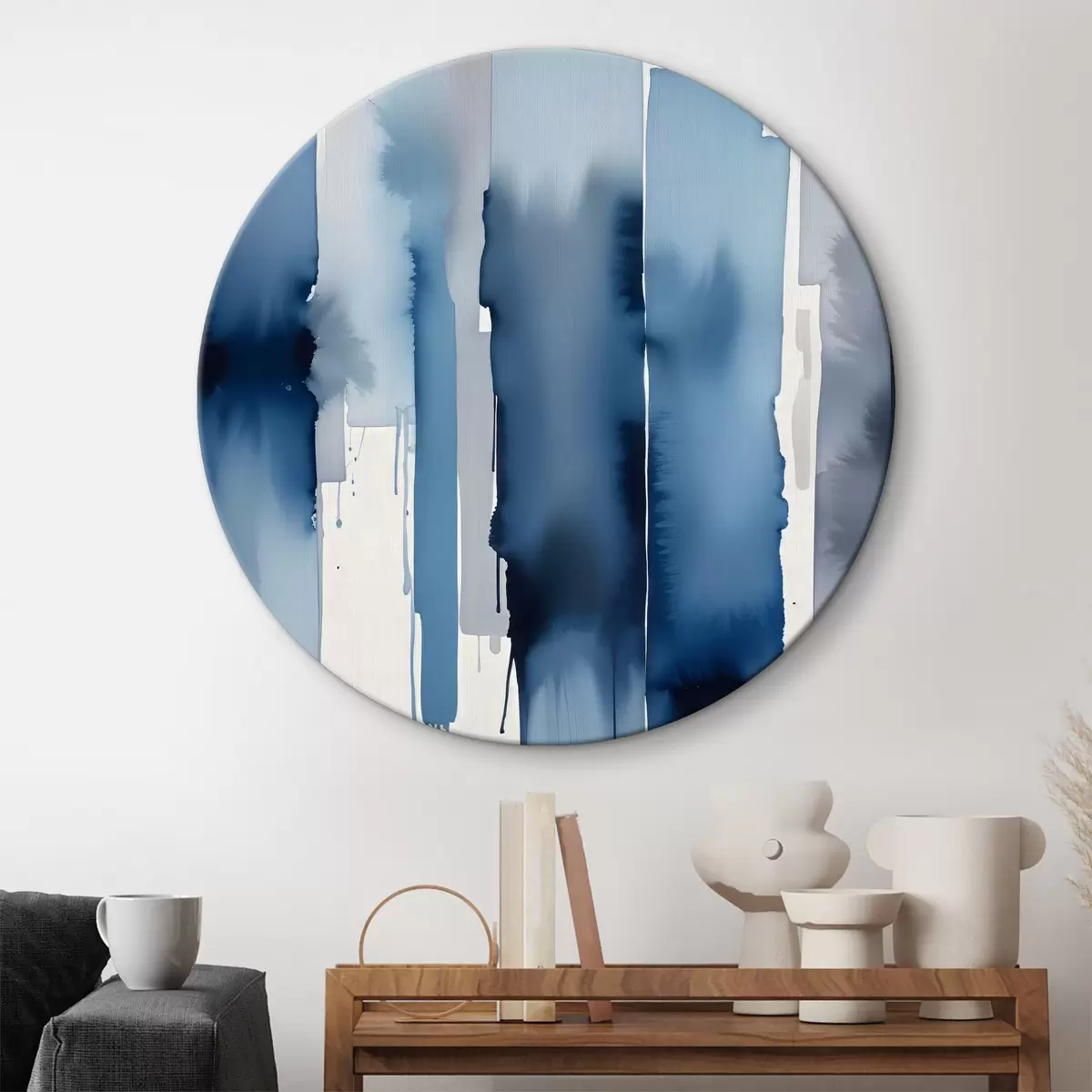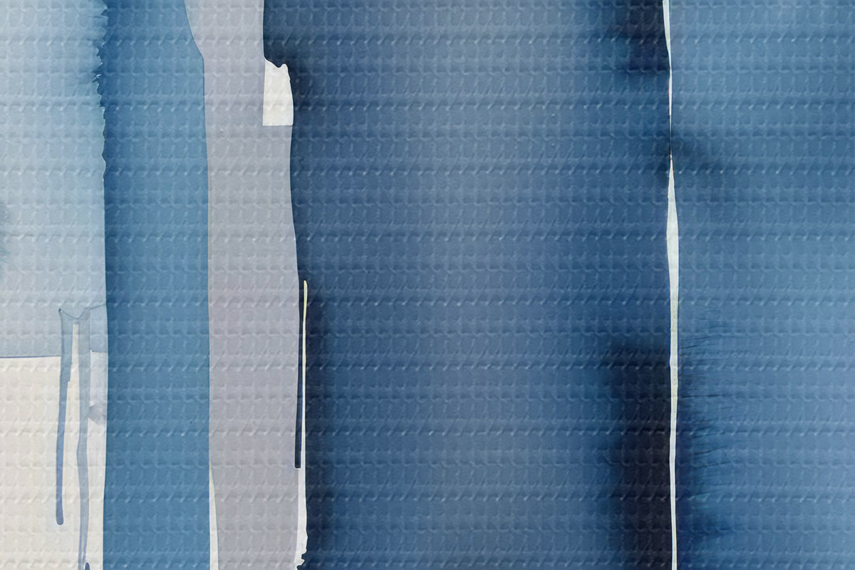 Attēls Augsti, abstrakti akvareļa triepieni miglainā, zilgana kompozīcijā Nr r40564