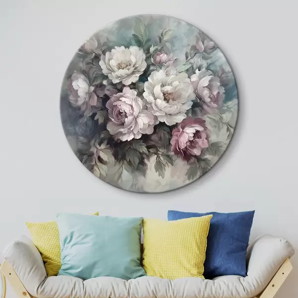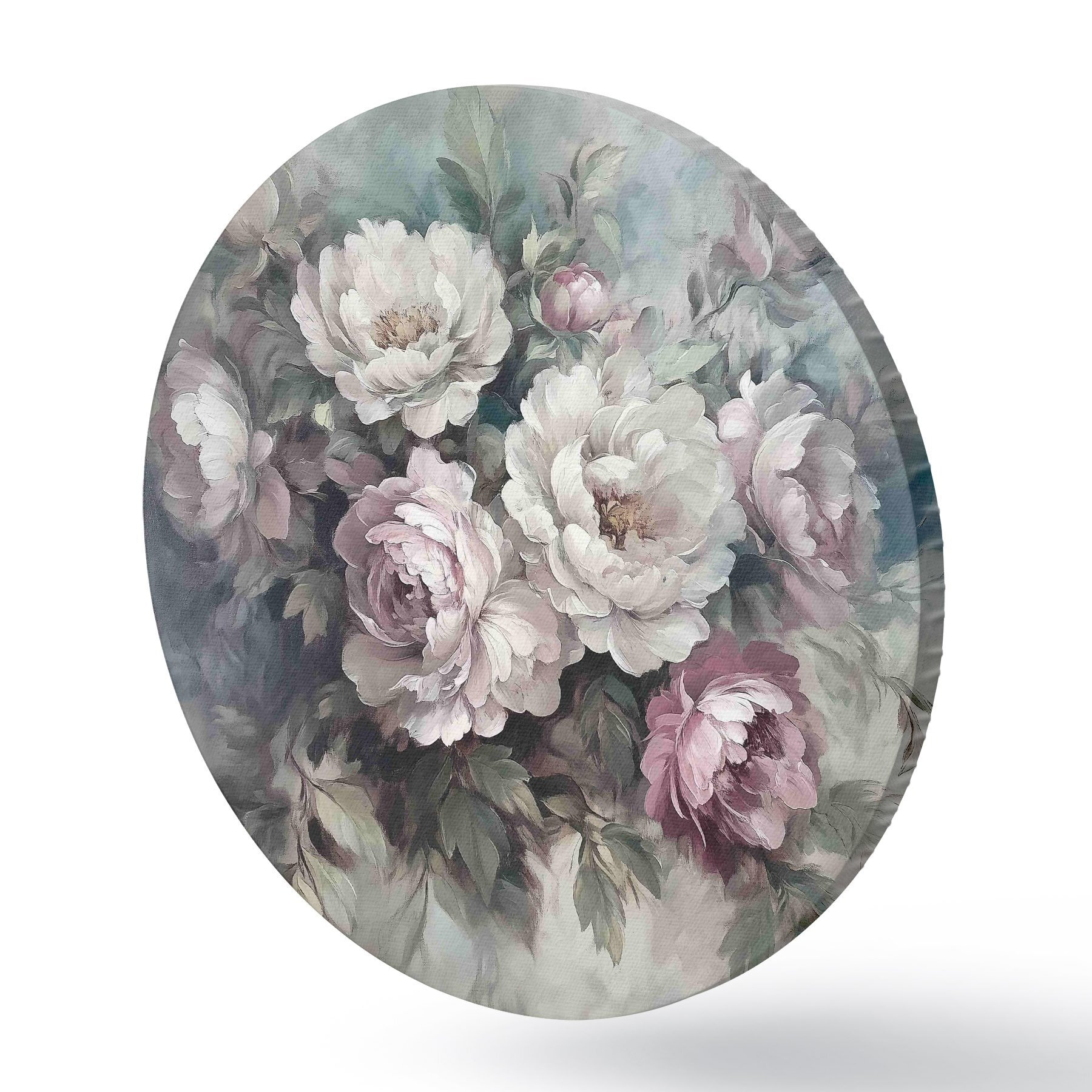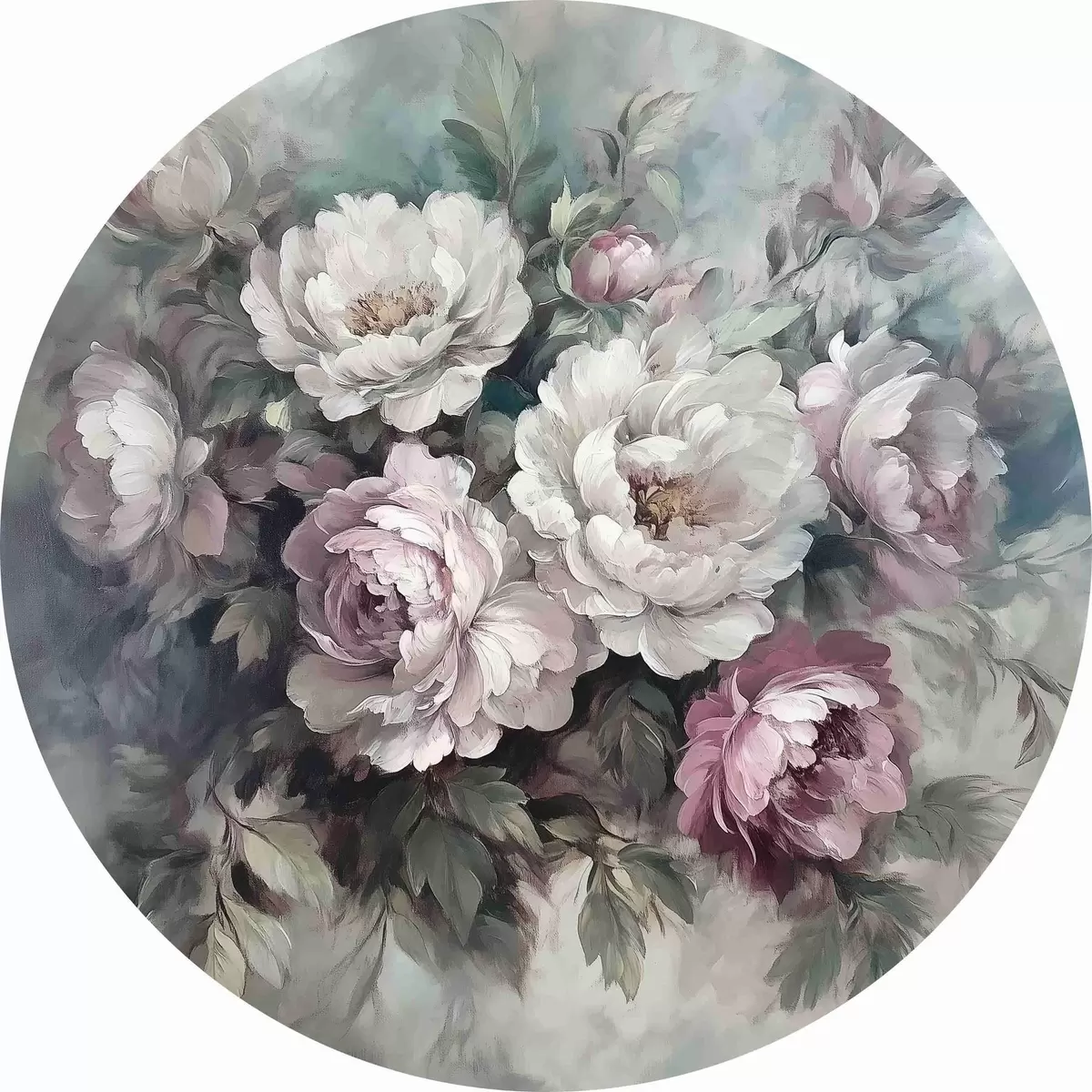 Apaļas gleznas Rozā un balto peoniju pušķis uz eļļas gleznas r40582